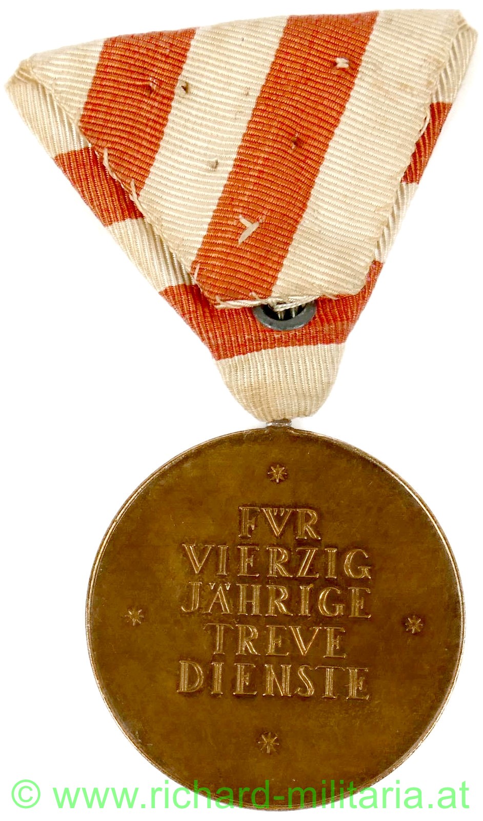 Medaille Österreich 1. Republik - Für vierzigjährige Treue Dienste, 1. Modell mit Randschrift "Republik Österreich", Buntmetall, am originalem Band,