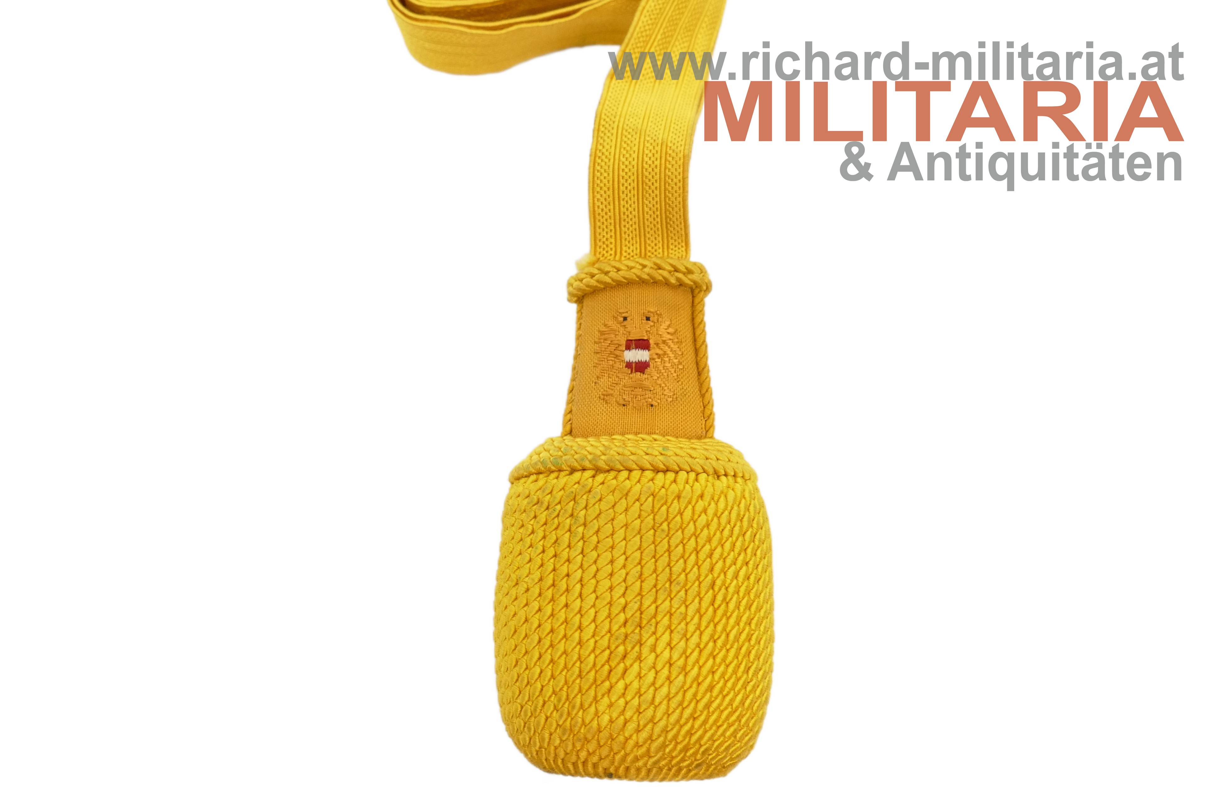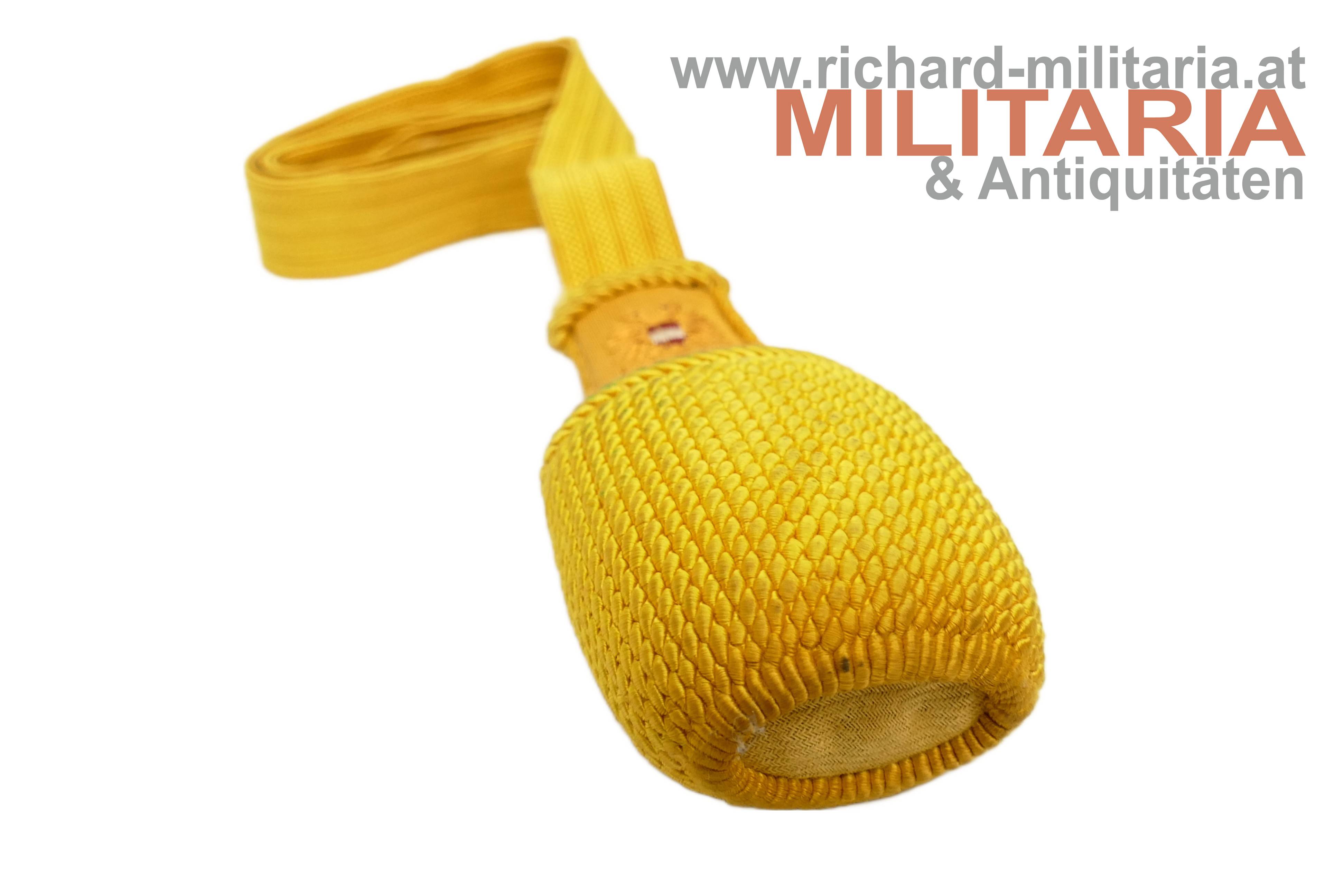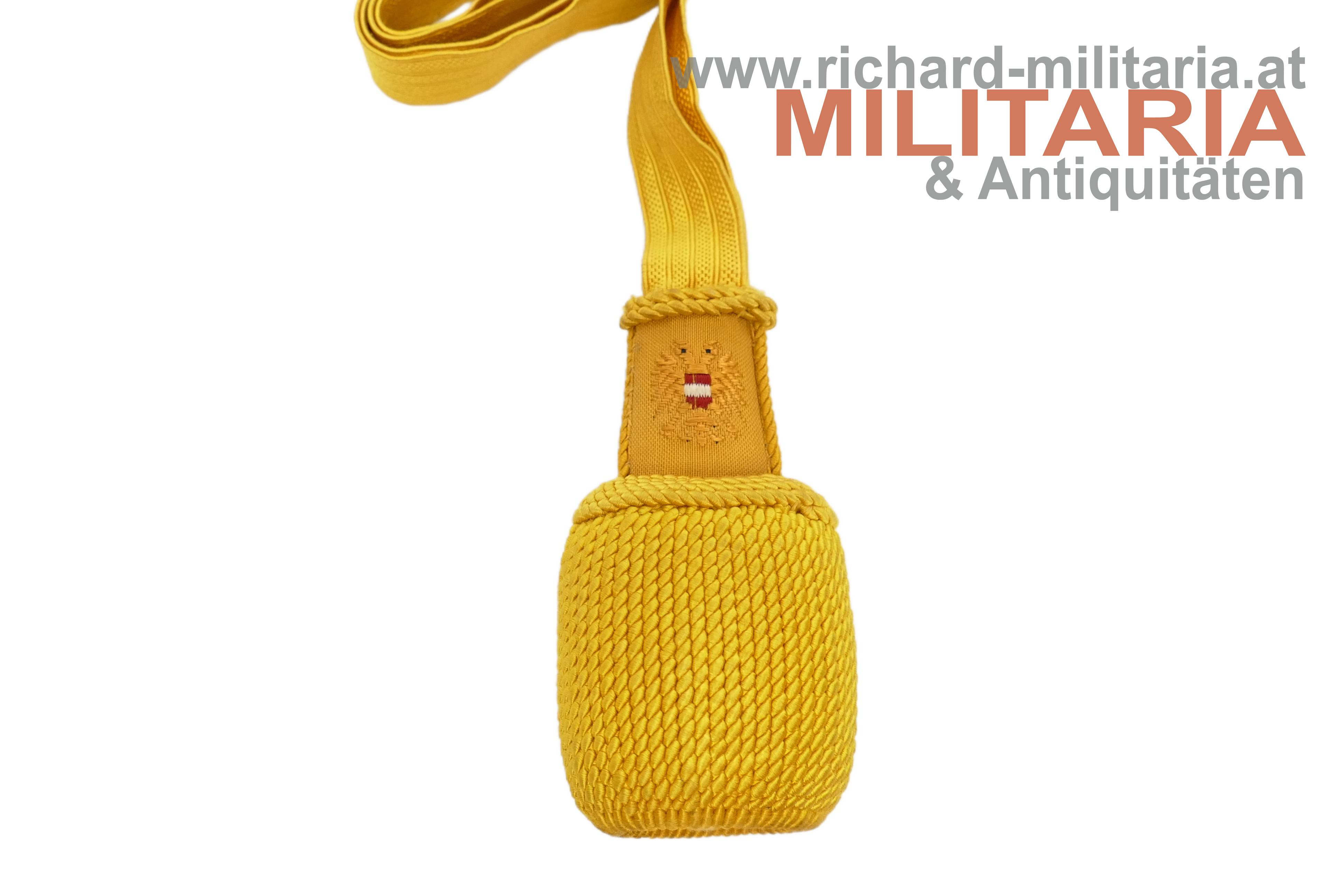 1. Republik - Bajonett-Portepee für Unteroffiziere; Band, Quastenkopf und geschlossene Quasten aus gelber Wolle; am Quastenkopf der gestickte Bundesadler; sehr farbfrisch (!) - ungetragen!;