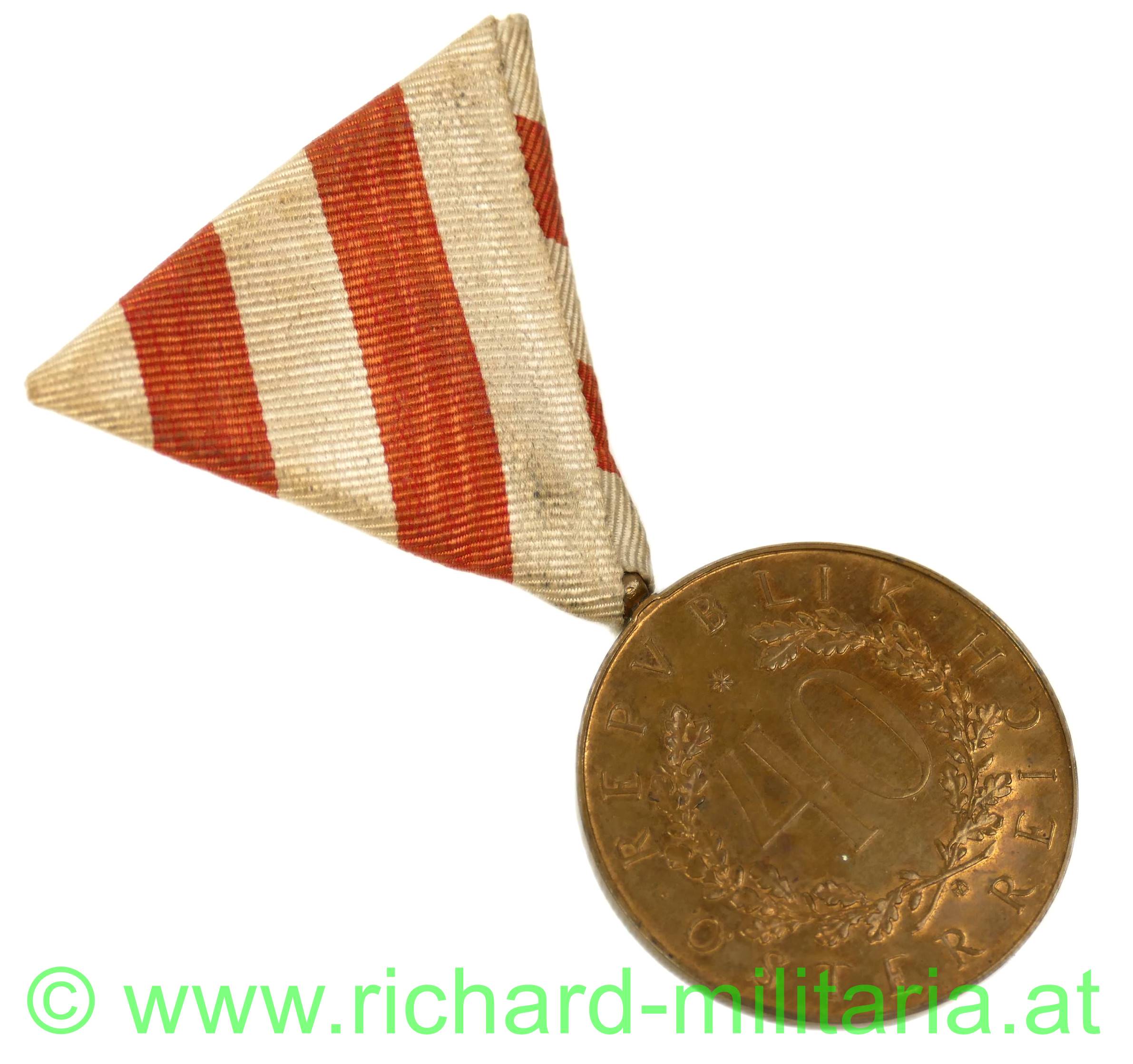 Medaille Österreich 1. Republik - Für vierzigjährige Treue Dienste, 1. Modell mit Randschrift "Republik Österreich", Buntmetall, am originalem Band,