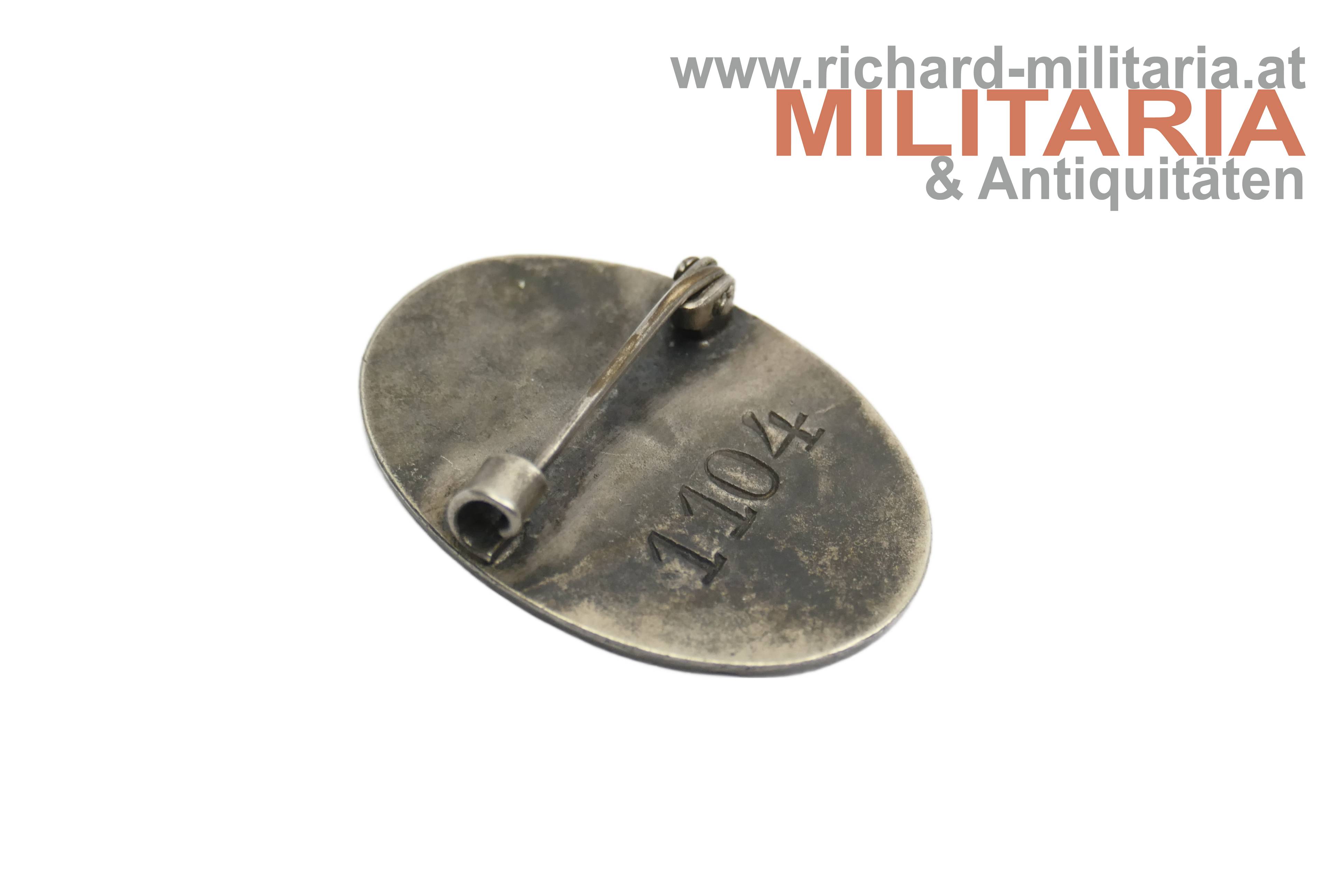 1. Republik - Schwesternabzeichen; Bronze versilbert; mit eingeschlagener Matrikelnummer "1104" revers; originales Nadelsystem;