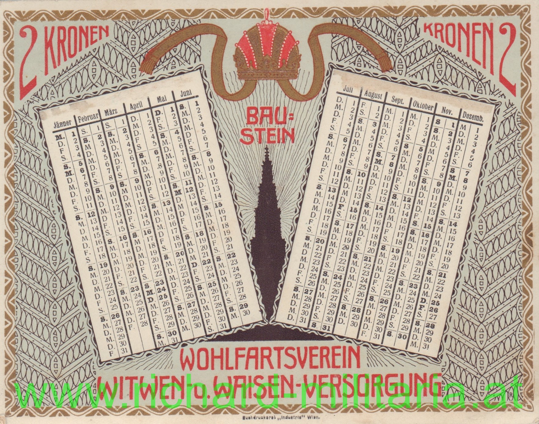 2 Kronen Baustein - Wohlfartsverein Witwen- u.Waisen-Versorgung Wien