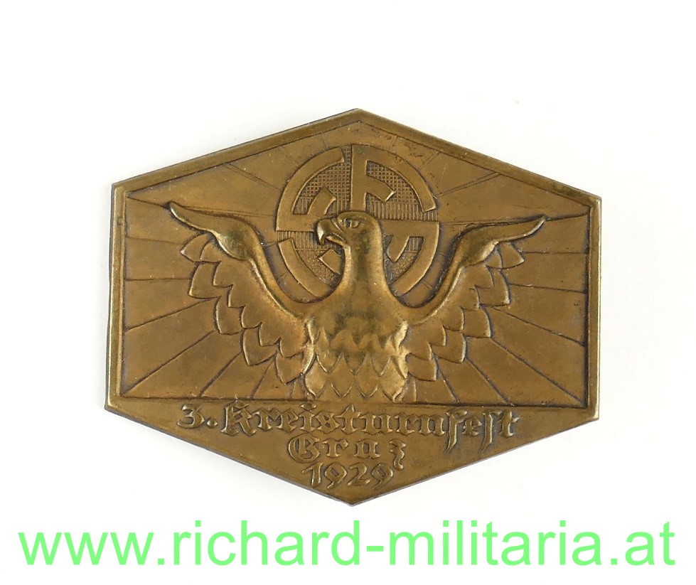 3. Kreisturnfest Graz, Tombak hohl geprägt, originales Nadelsystem mit Hersteller: "Schwertner, Graz";