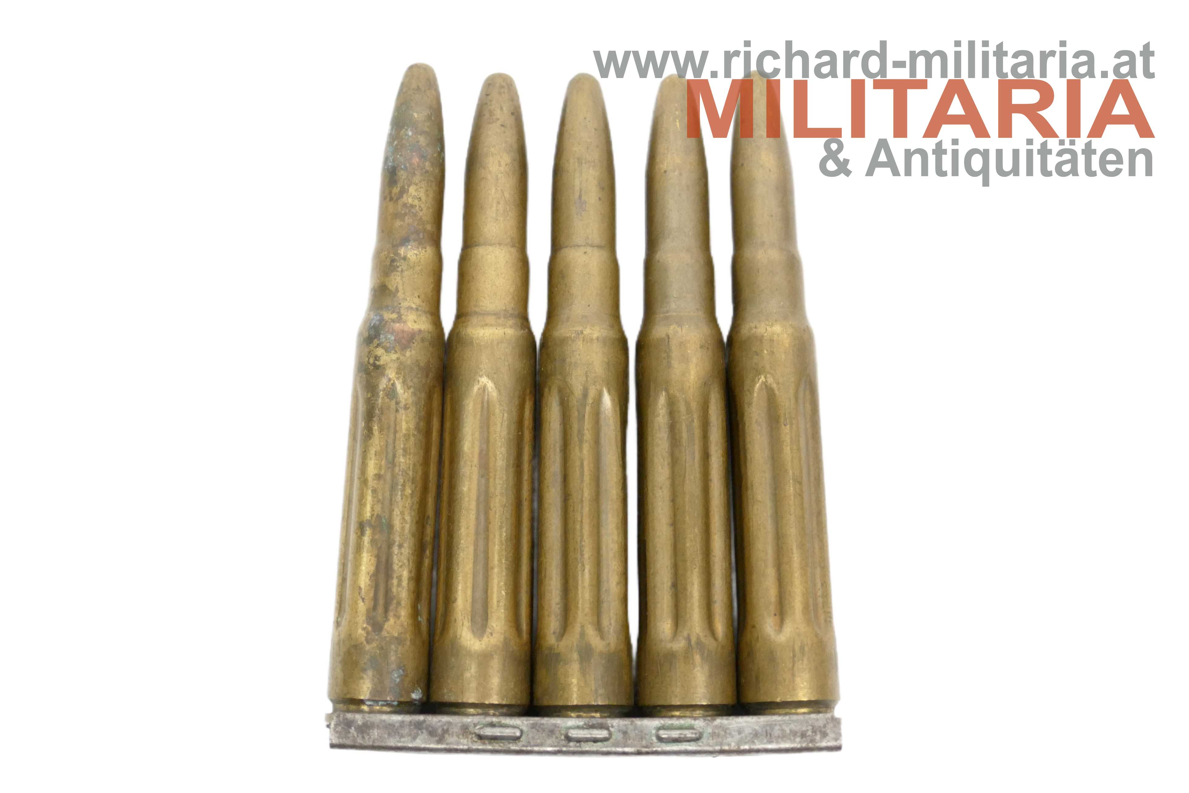5 Exerzierpatronen auf Ladestreifen für das Gewehr K98