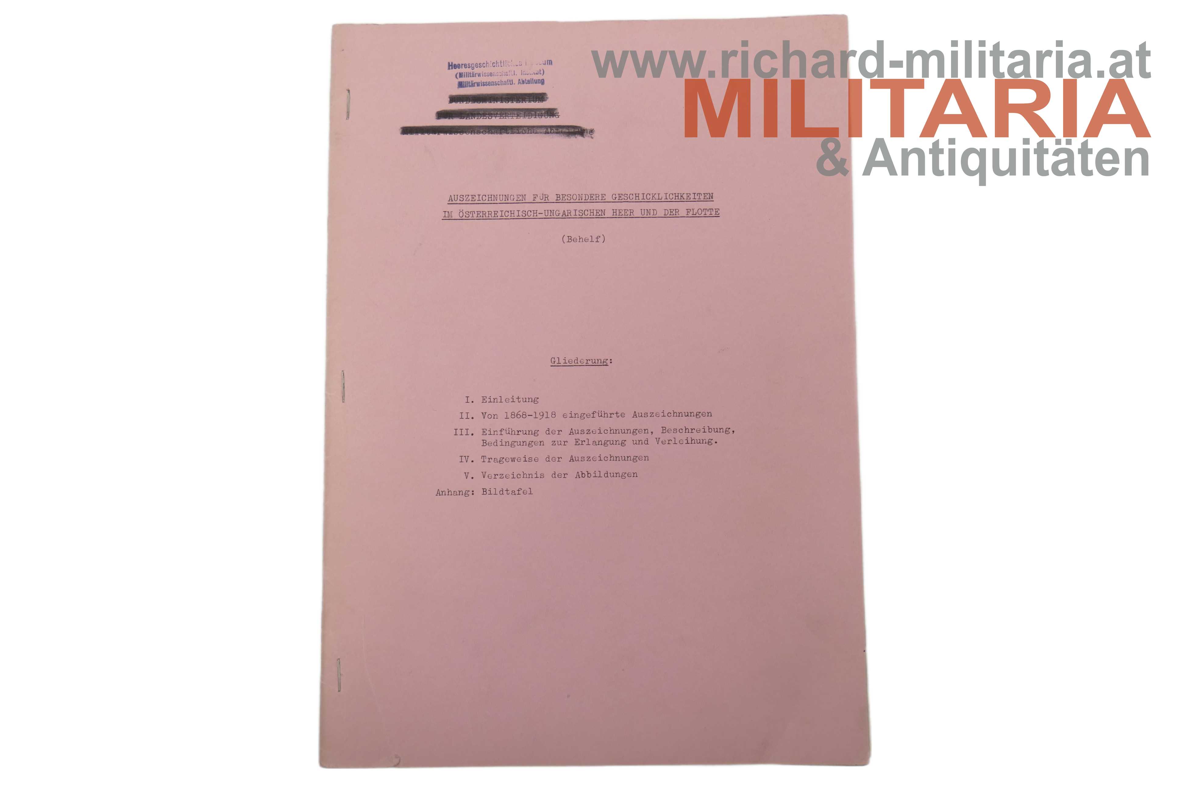 1) Auszeichnungen für besondere Geschicklichkeiten im österreichisch-ungarischen Heer und der Flotte (Behelf)
