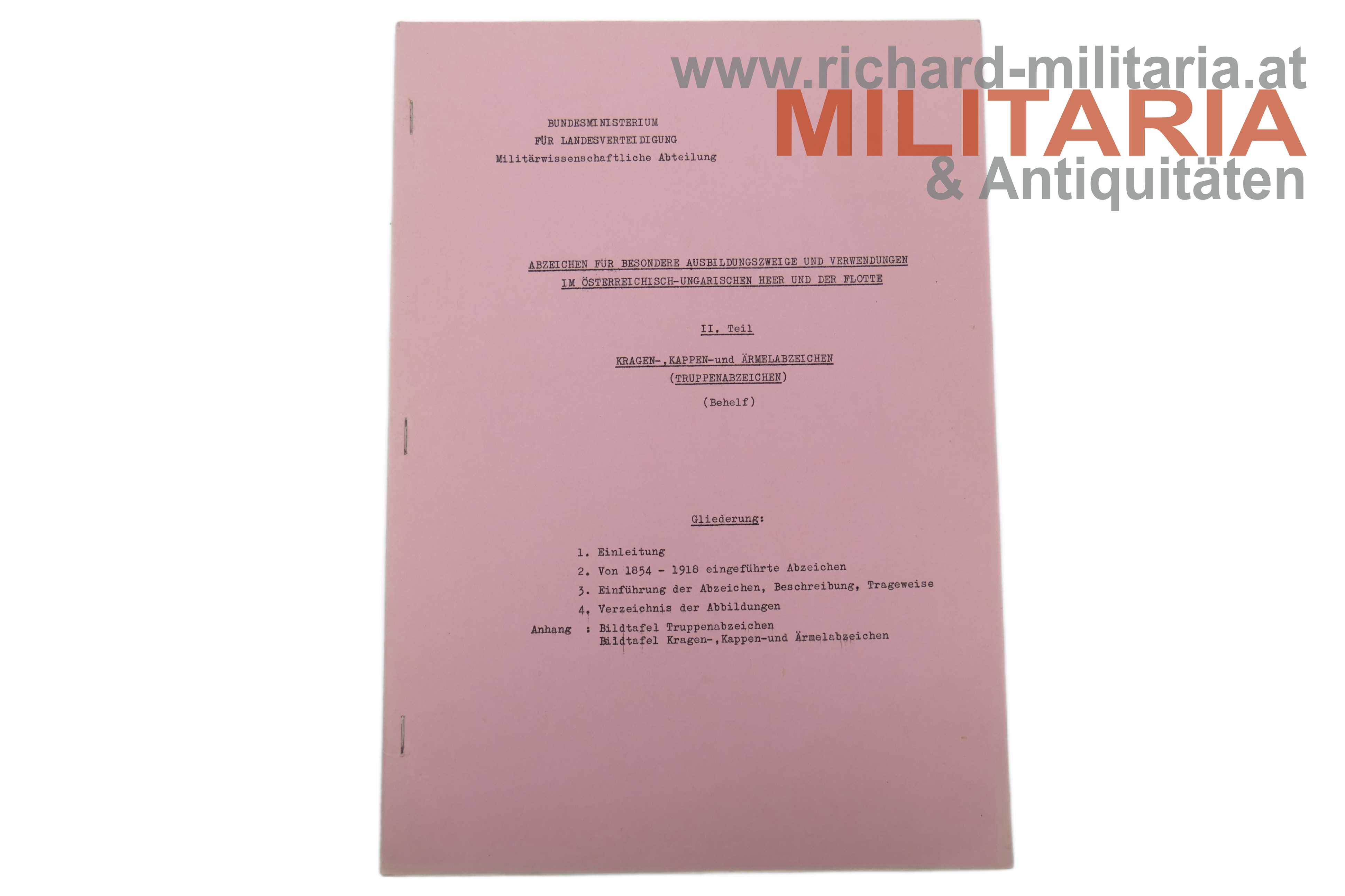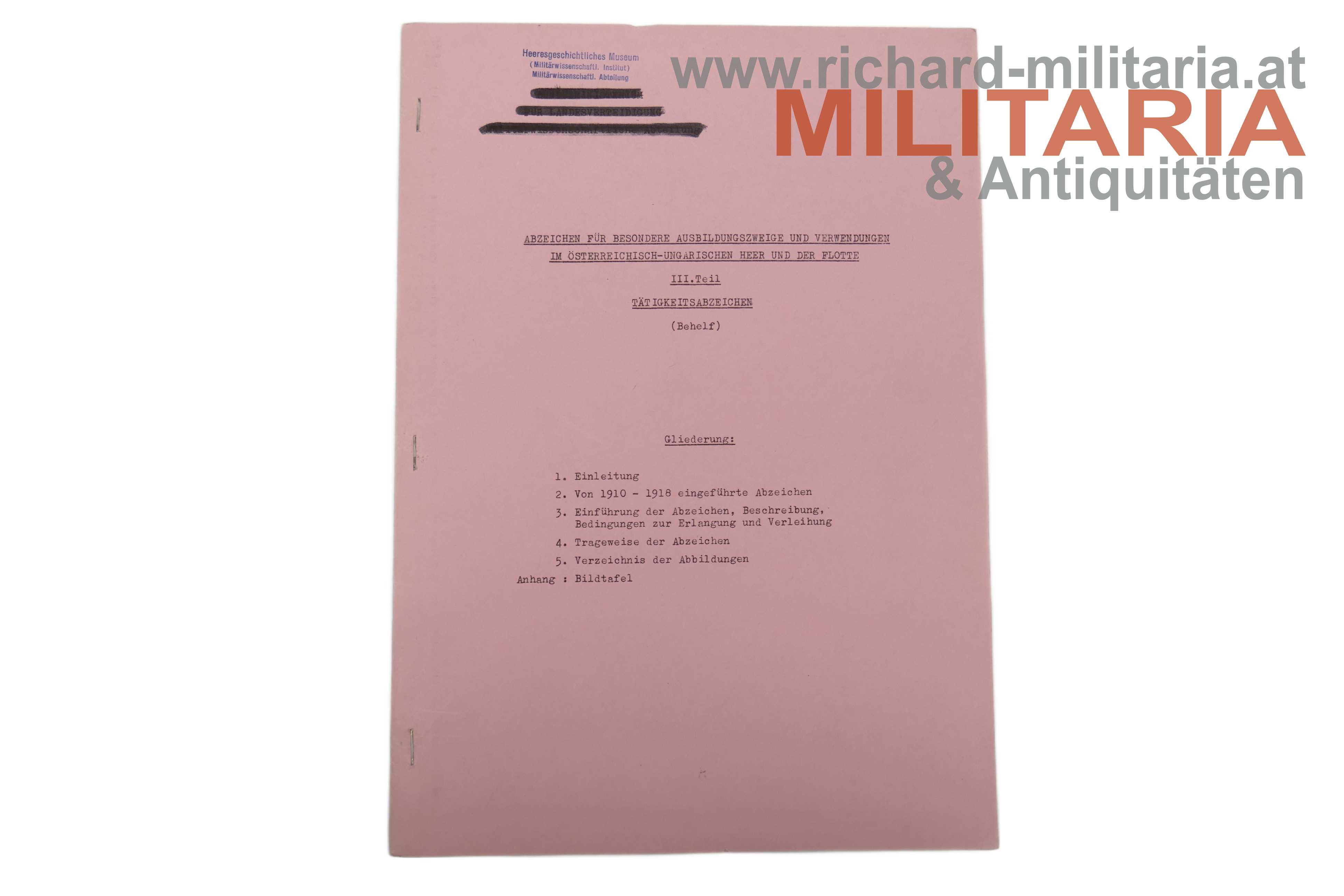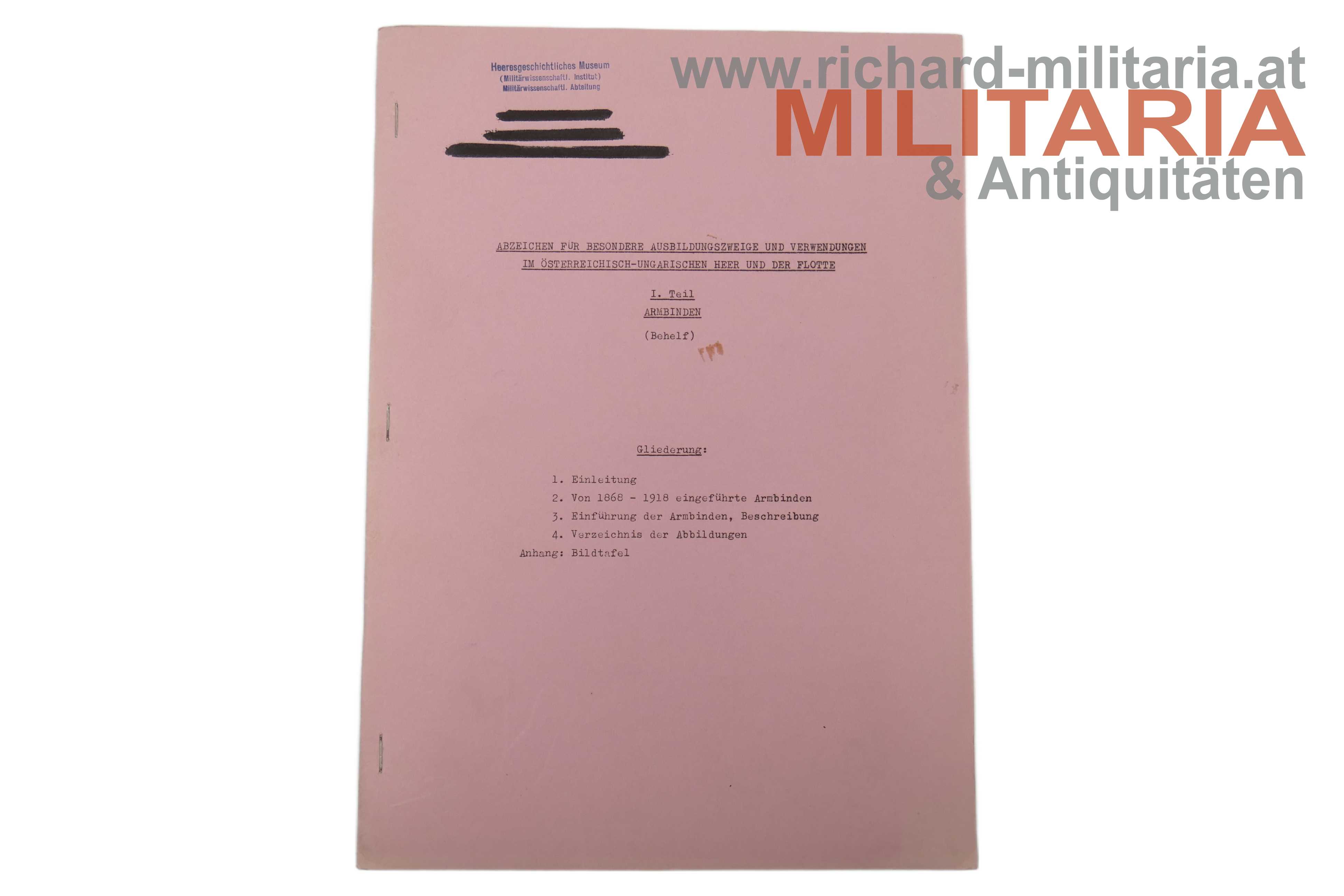 2) Abzeichen für besondere Ausbildungszweige und Verwendungen im österreichisch-ungarischen Heer und der Flotte - I. Teil: ARMBINDEN