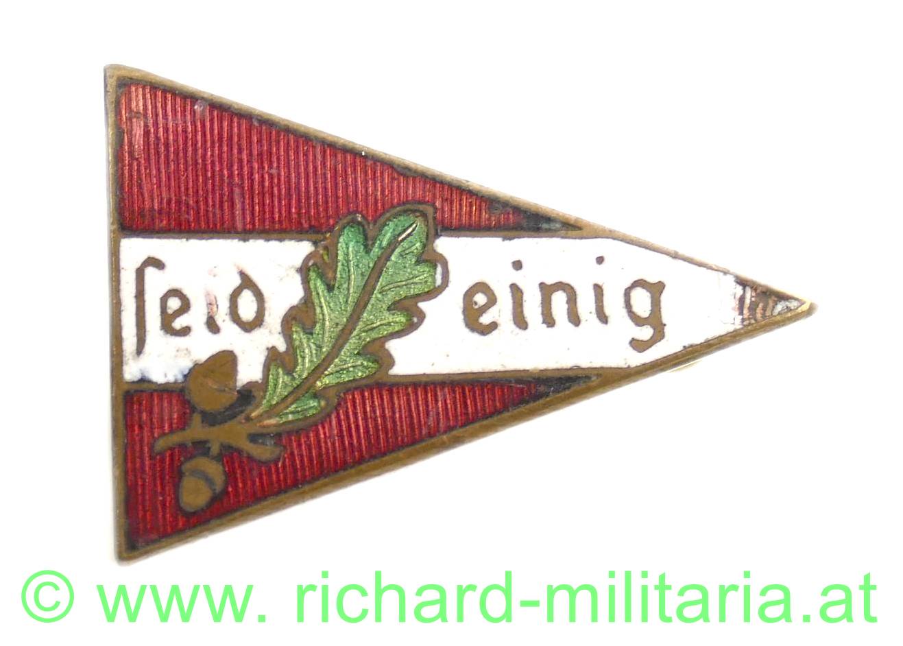 Abzeichen "seid einig!", Tombak emailliert - leicht beschädigt, mit originaler Nadel
