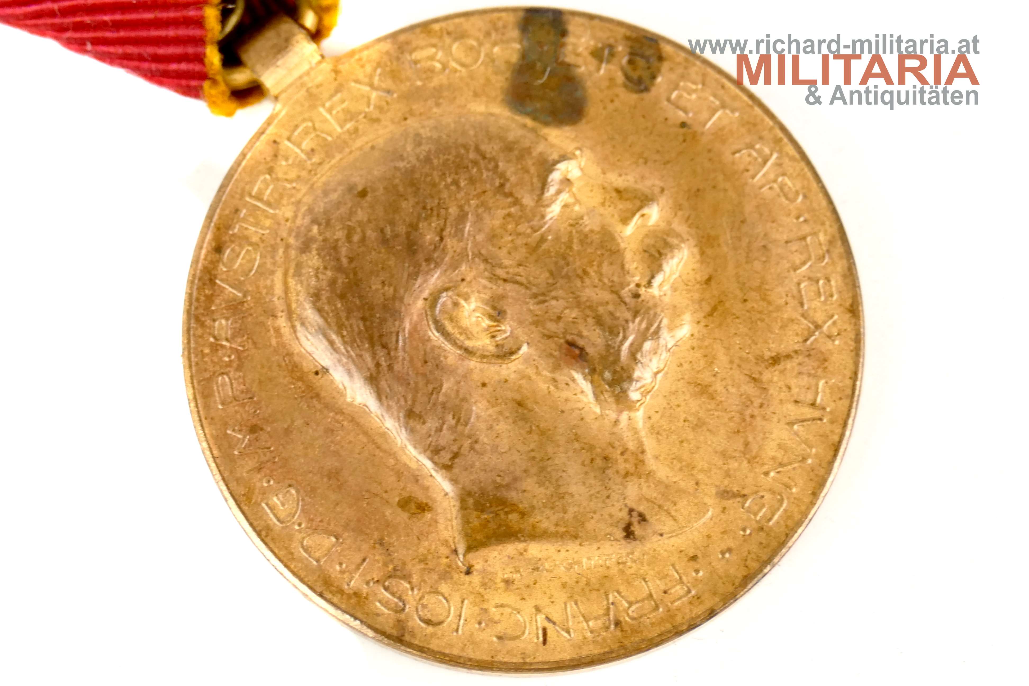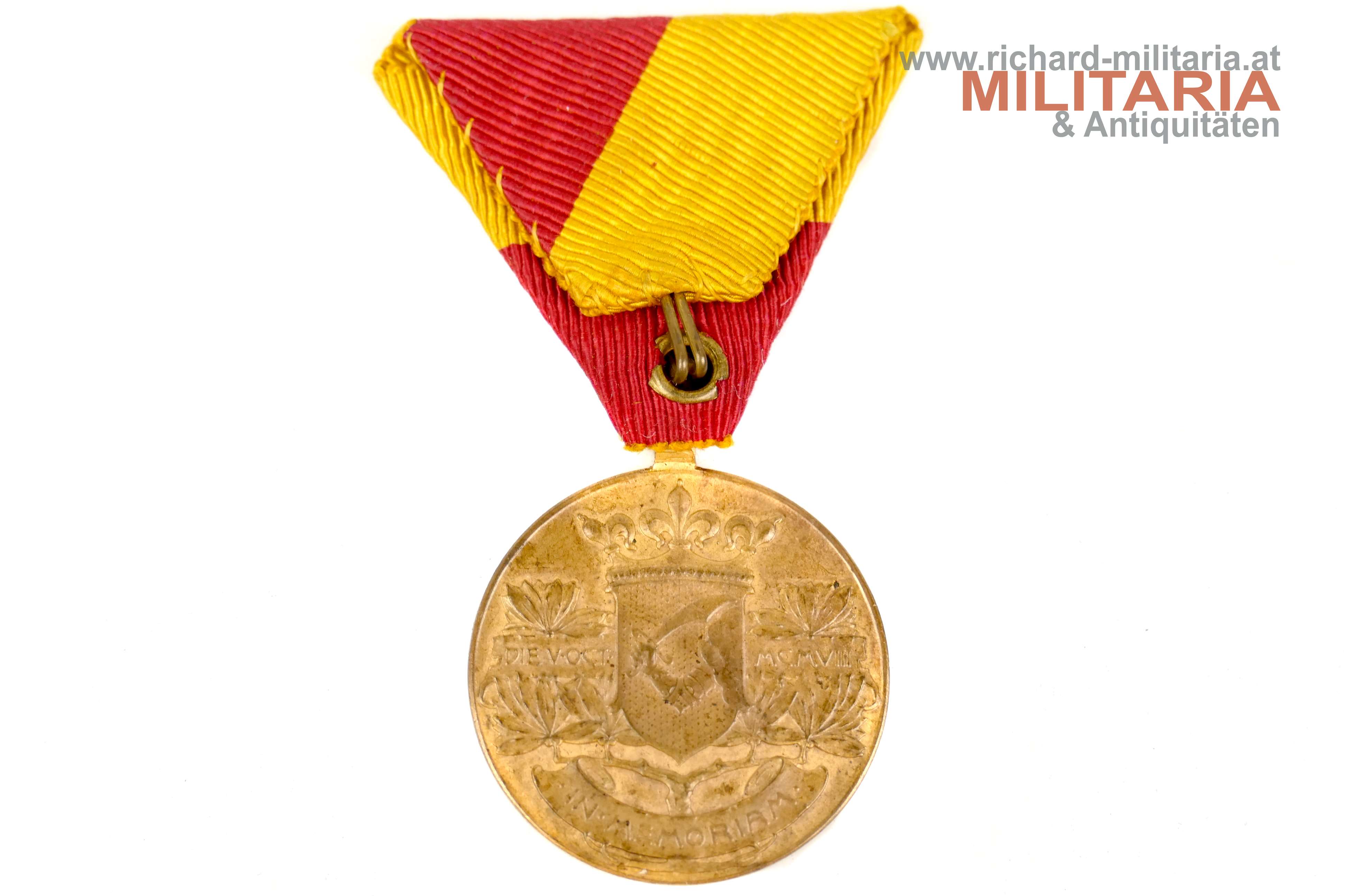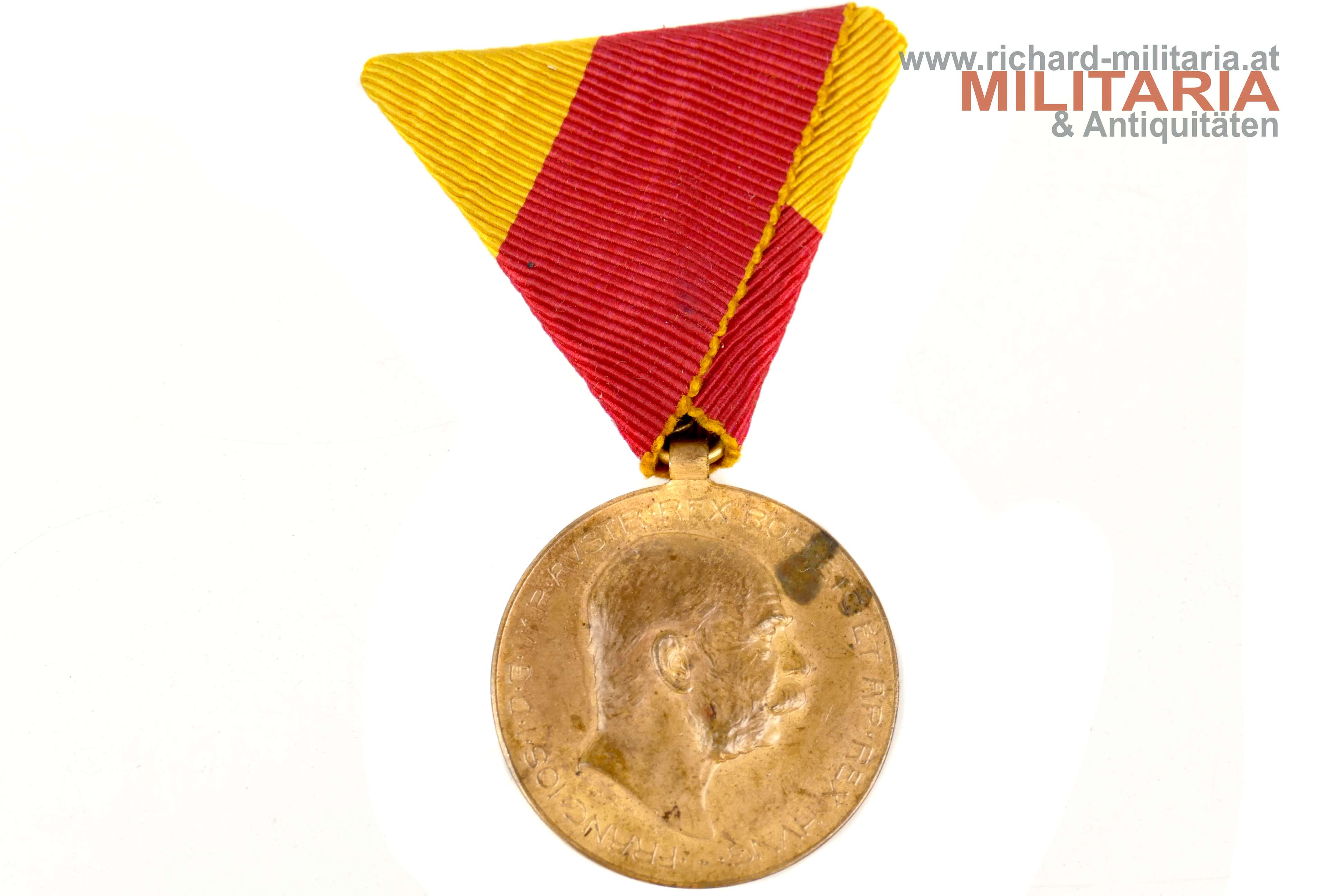 Bosnisch-Herzegowinische Erinnerungsmedaille 1909 - Bosnien-Medaille; Bronze; etwas angeschmutzt; am originalen gut erhaltenen Band;