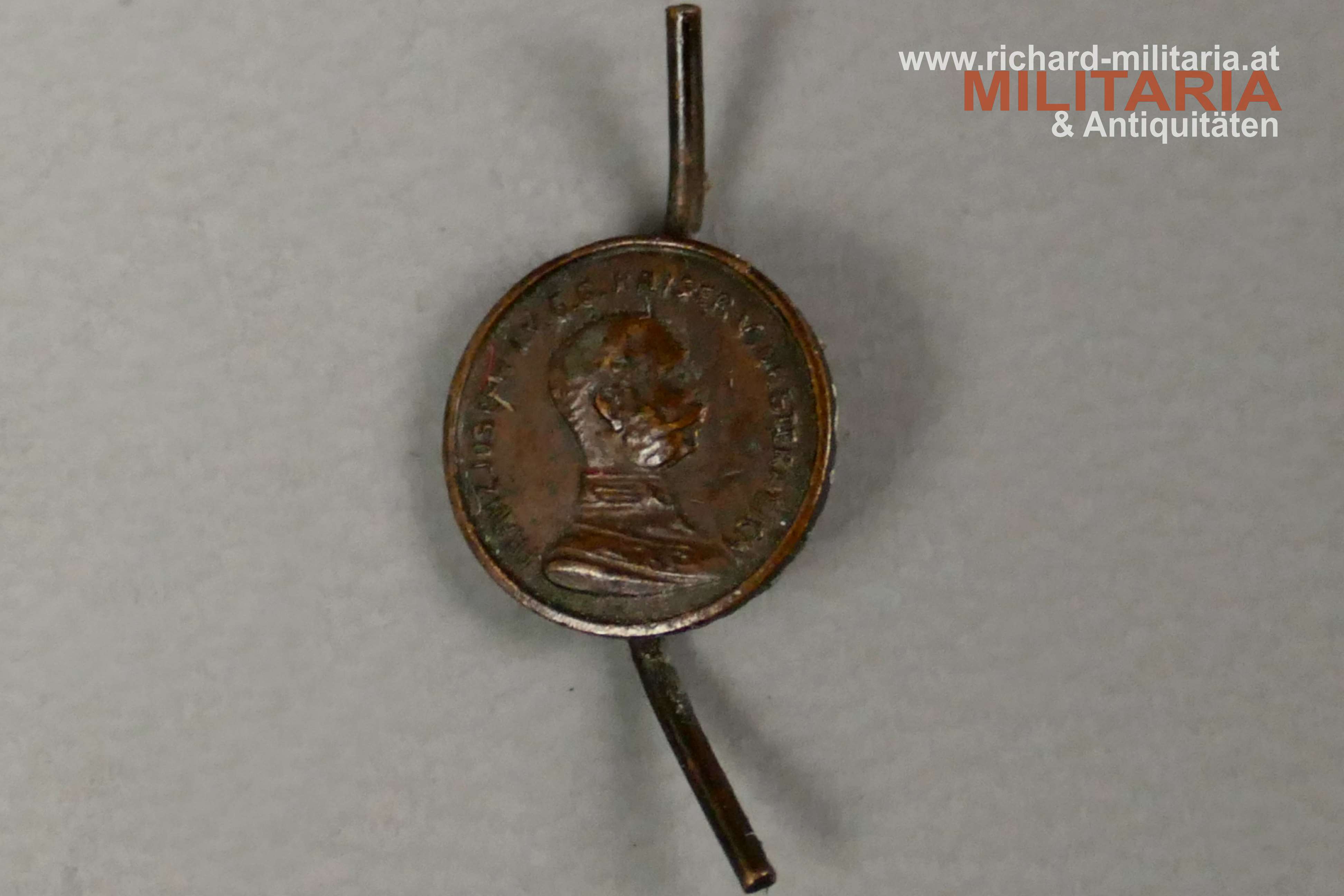Bronzene Tapferkeitsmedaille Kaiser Franz Josef - Auflage für die Feldspange, Tombak bronziert auf der Rückseite 2 Befestigungssplinte, DM ca.: 9mm