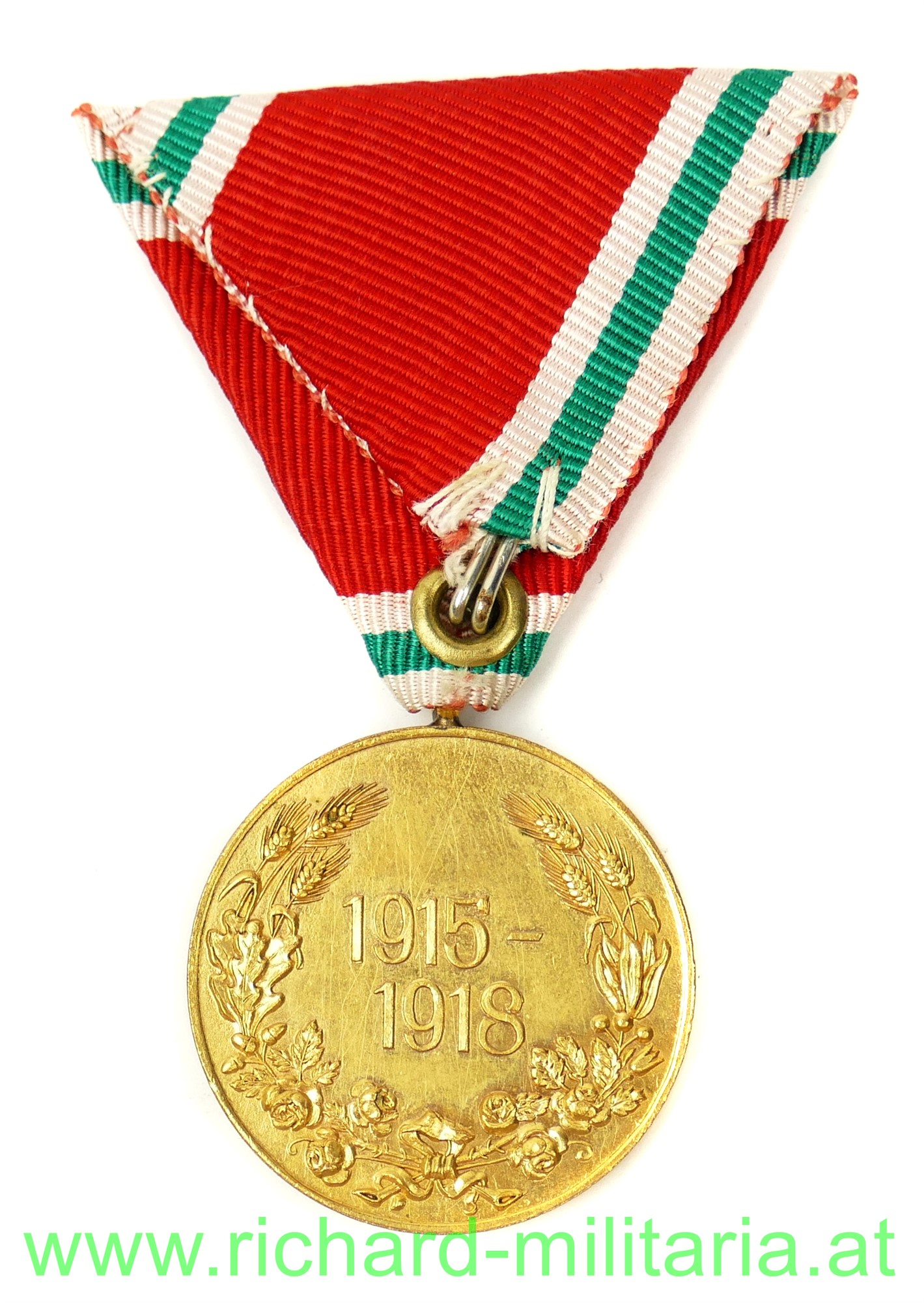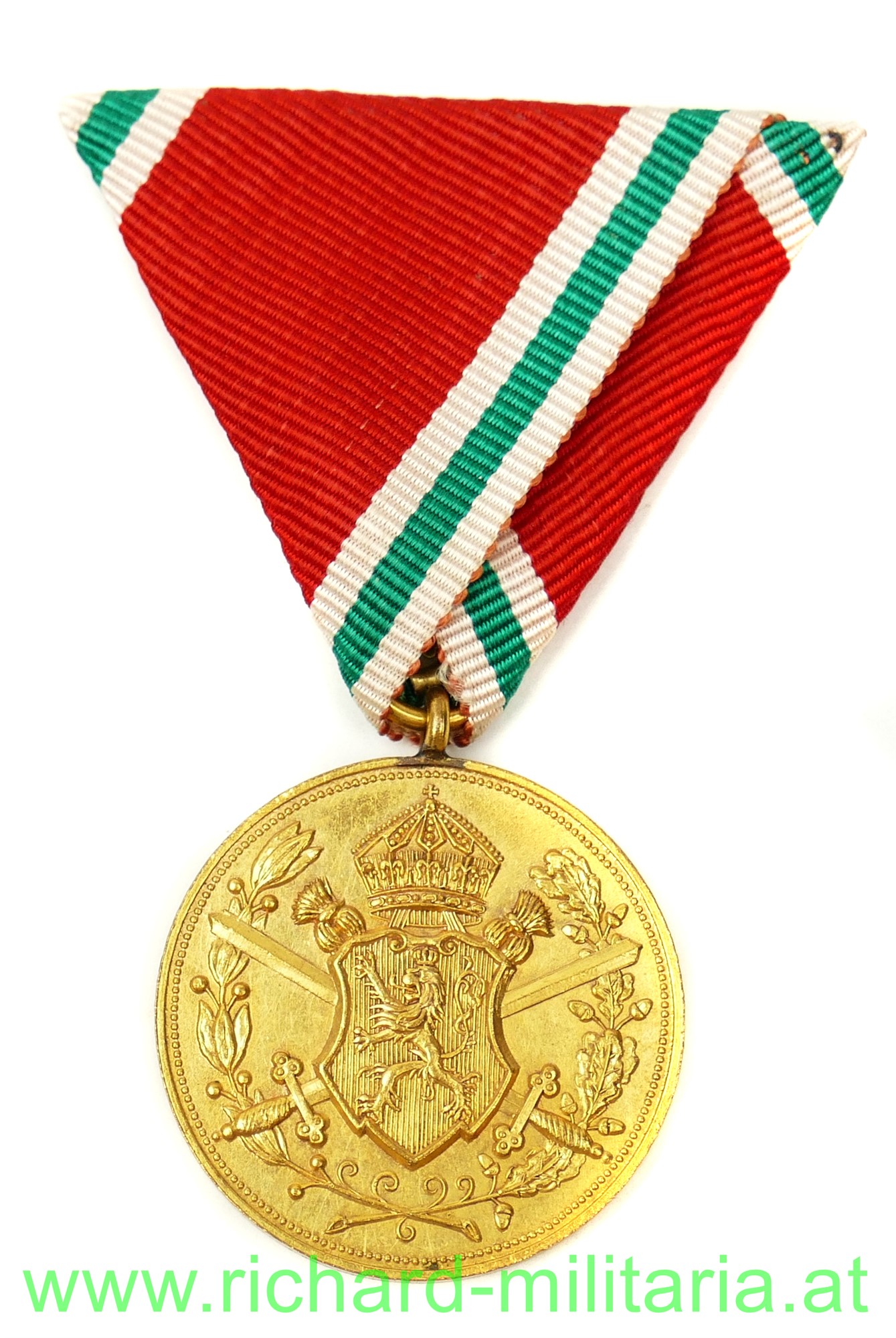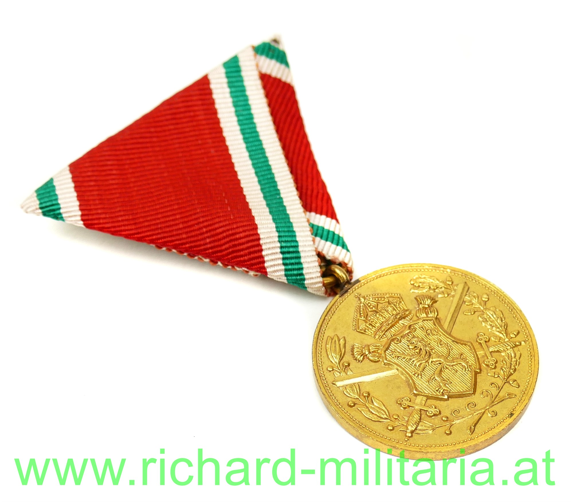 Bulgarien Weltkriegserinnerungsmedaille 1915-1918, Tombak feuervergoldet, originales Band - sehr schön
