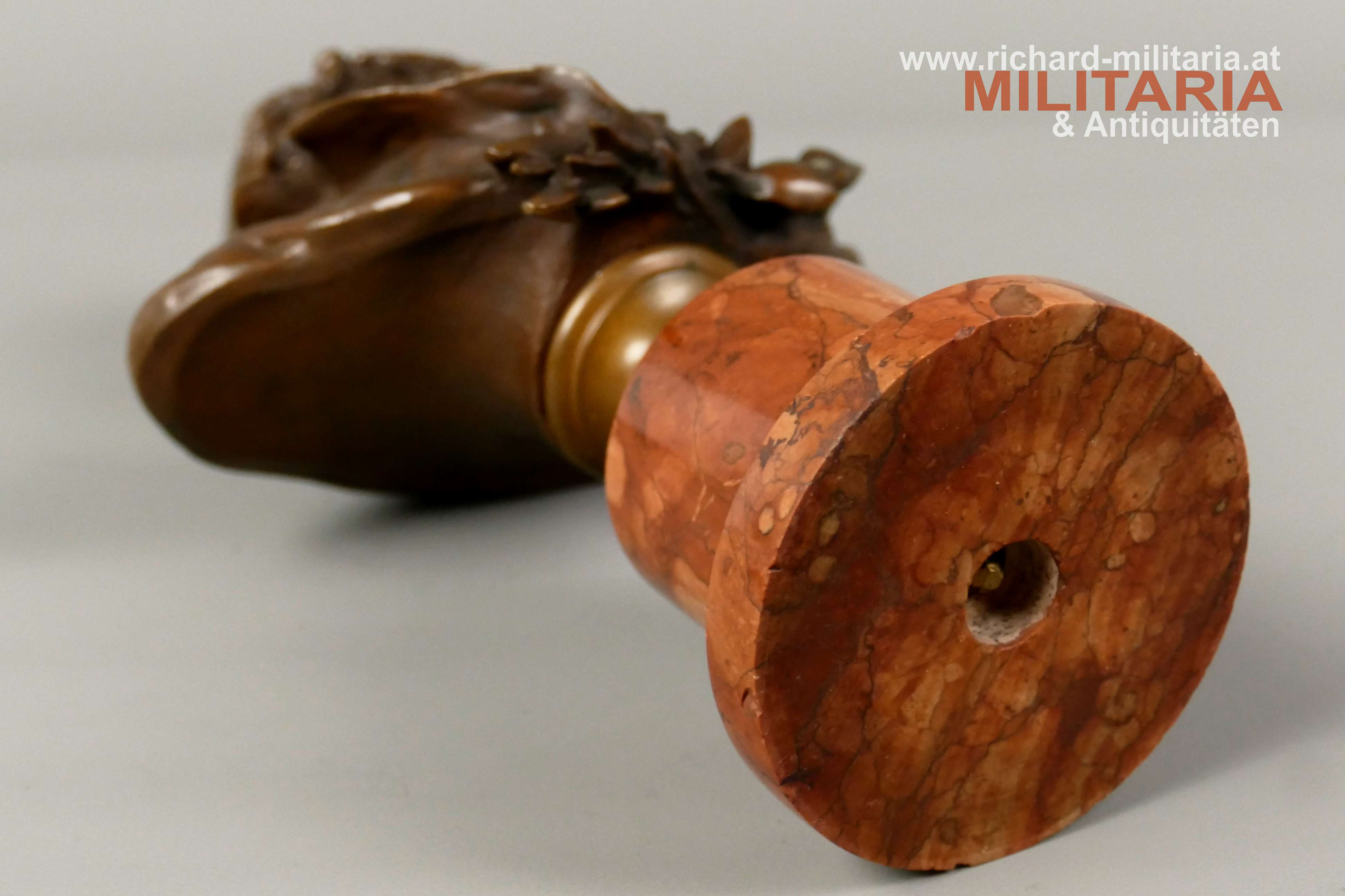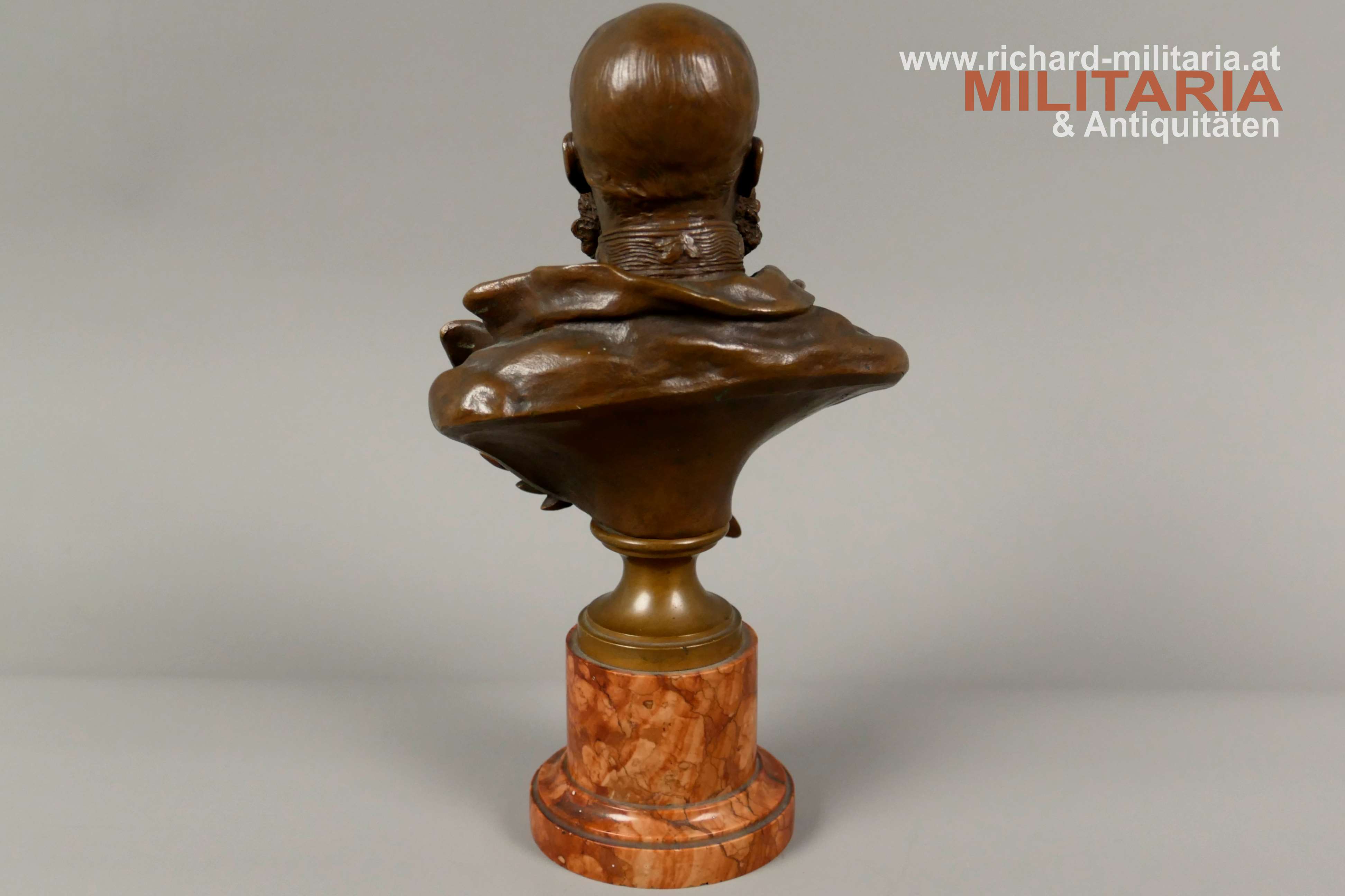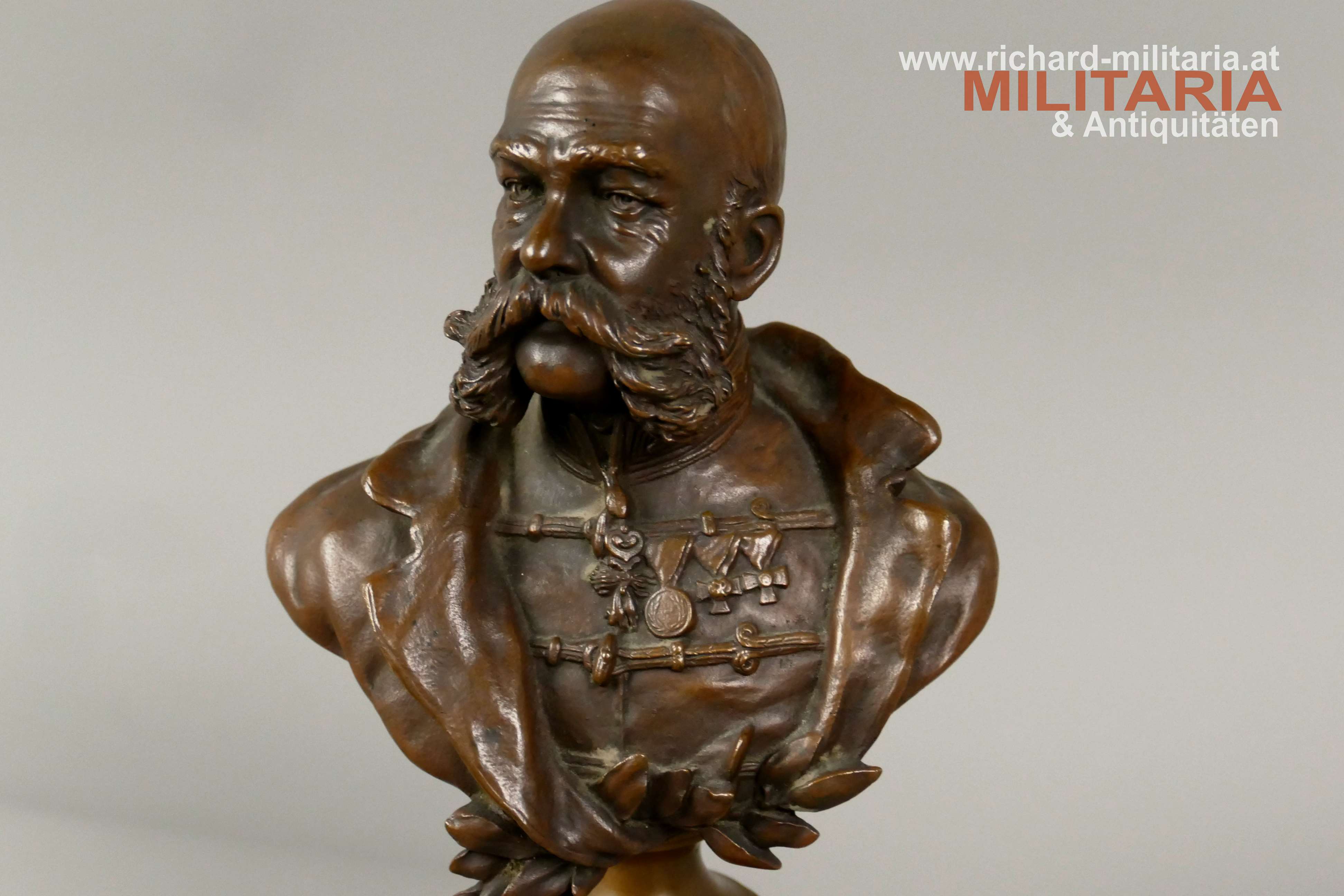 prachtvolle Bronzebüste mit Darstellung von Kaiser Franz Josef in Uniform mit Orden, Büste aus Bronze feinst gearbeitet; auf rundem originalem Marmorsockel montiert,