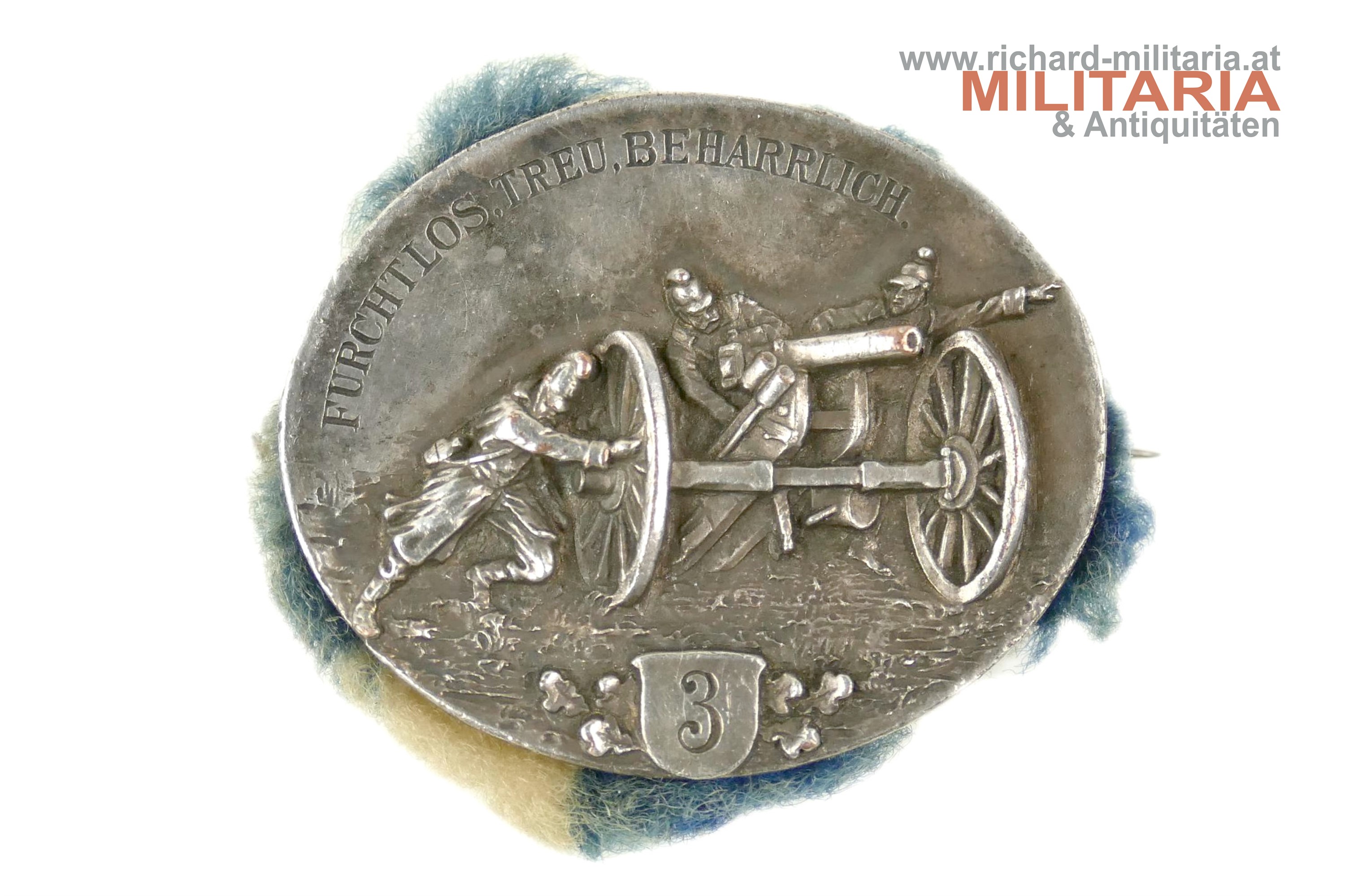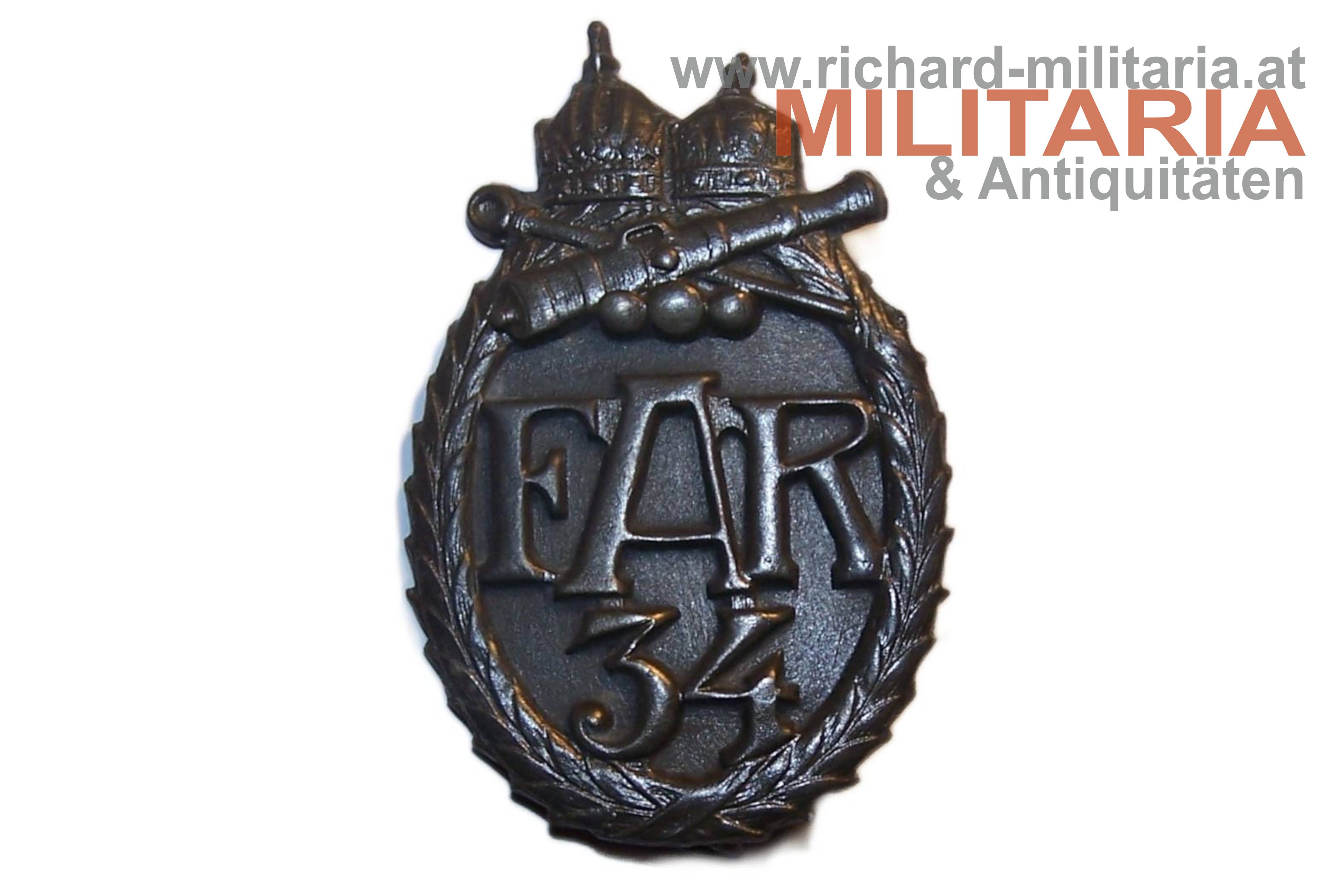 k.u.k. Kappenabzeichen - Rudolf Batterie; Tombakblech; originales Nadelsystem; Zustand 2+ Florian Dawkins - Richard Militaria ℹ️