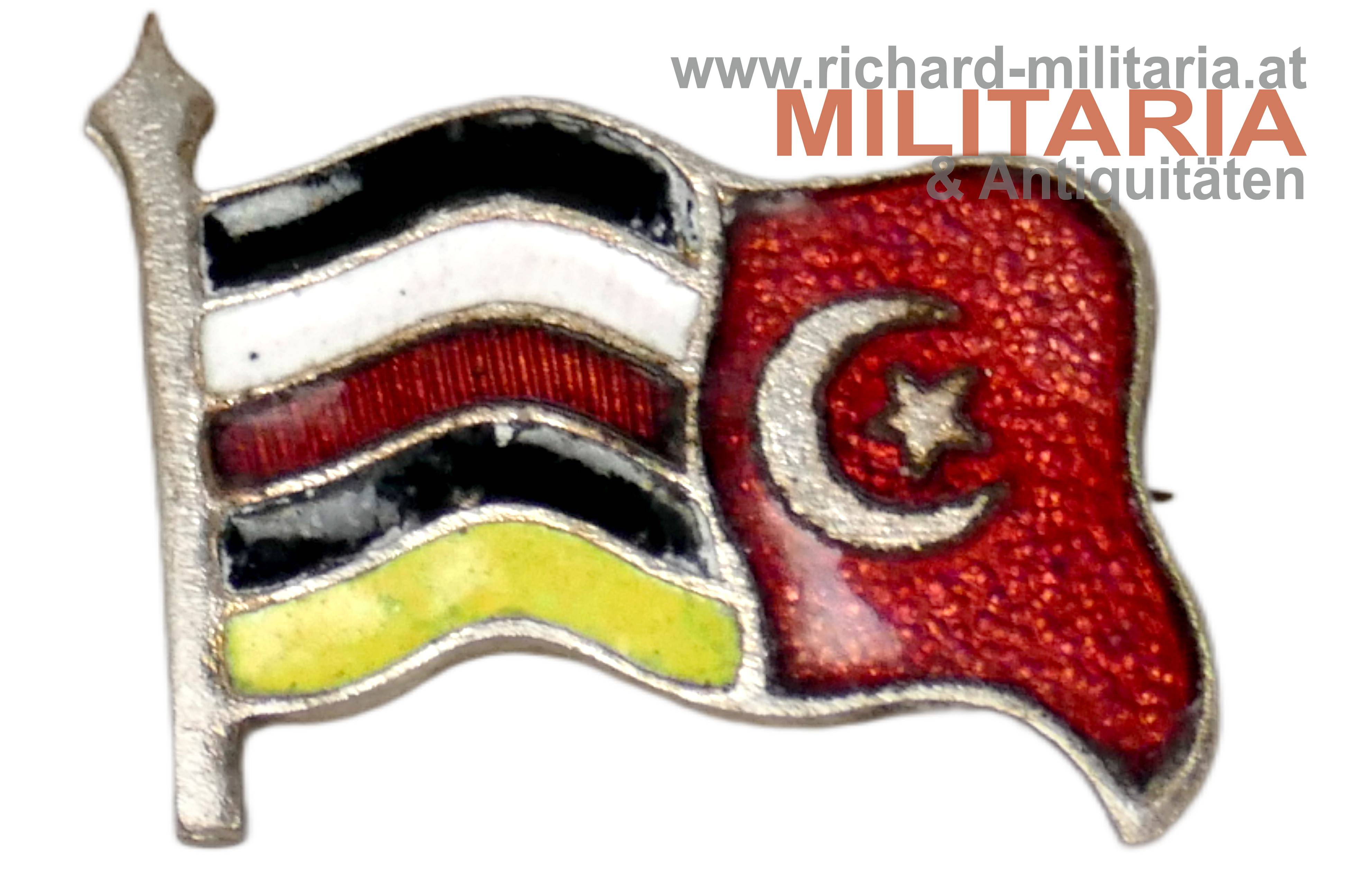 k.u.k. patriotisches Abzeichen - 4 Wappen 1914-1915; versilbert und das ungarische und türkische Wappen emailliert; originales Nadelsystem; Nadel leicht verbogen;Zustand 2- Florian Dawkins - Richard Militaria ℹ️