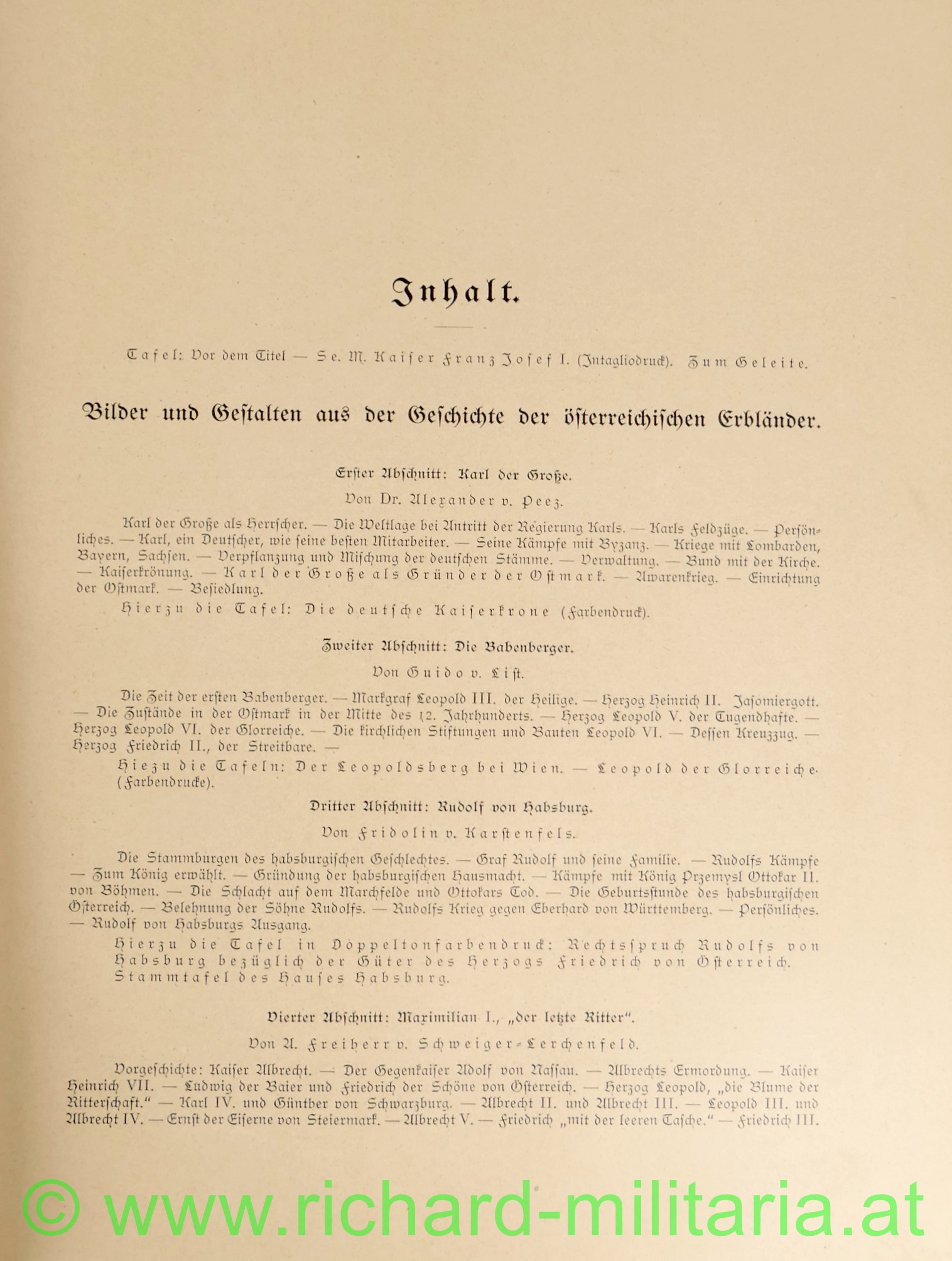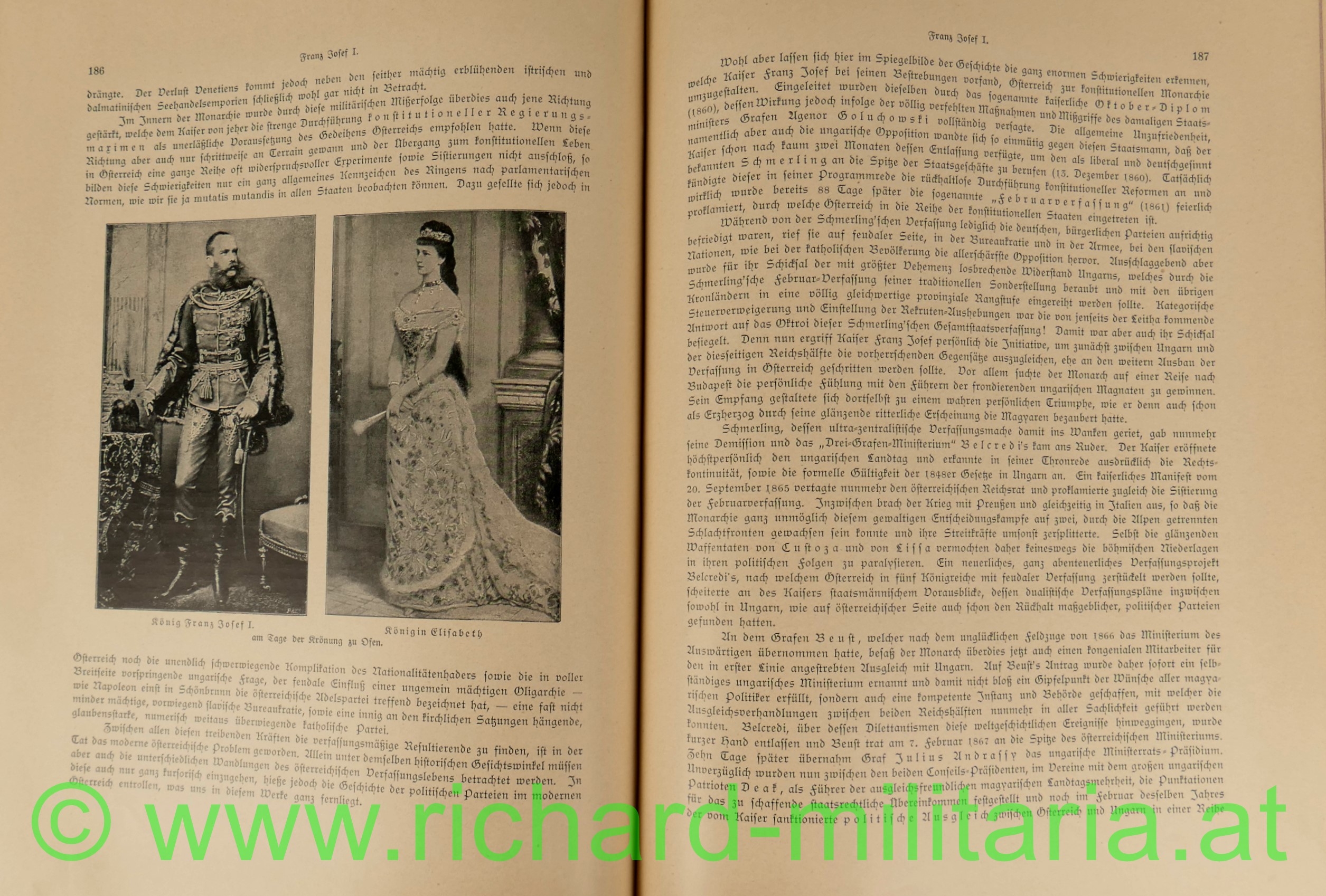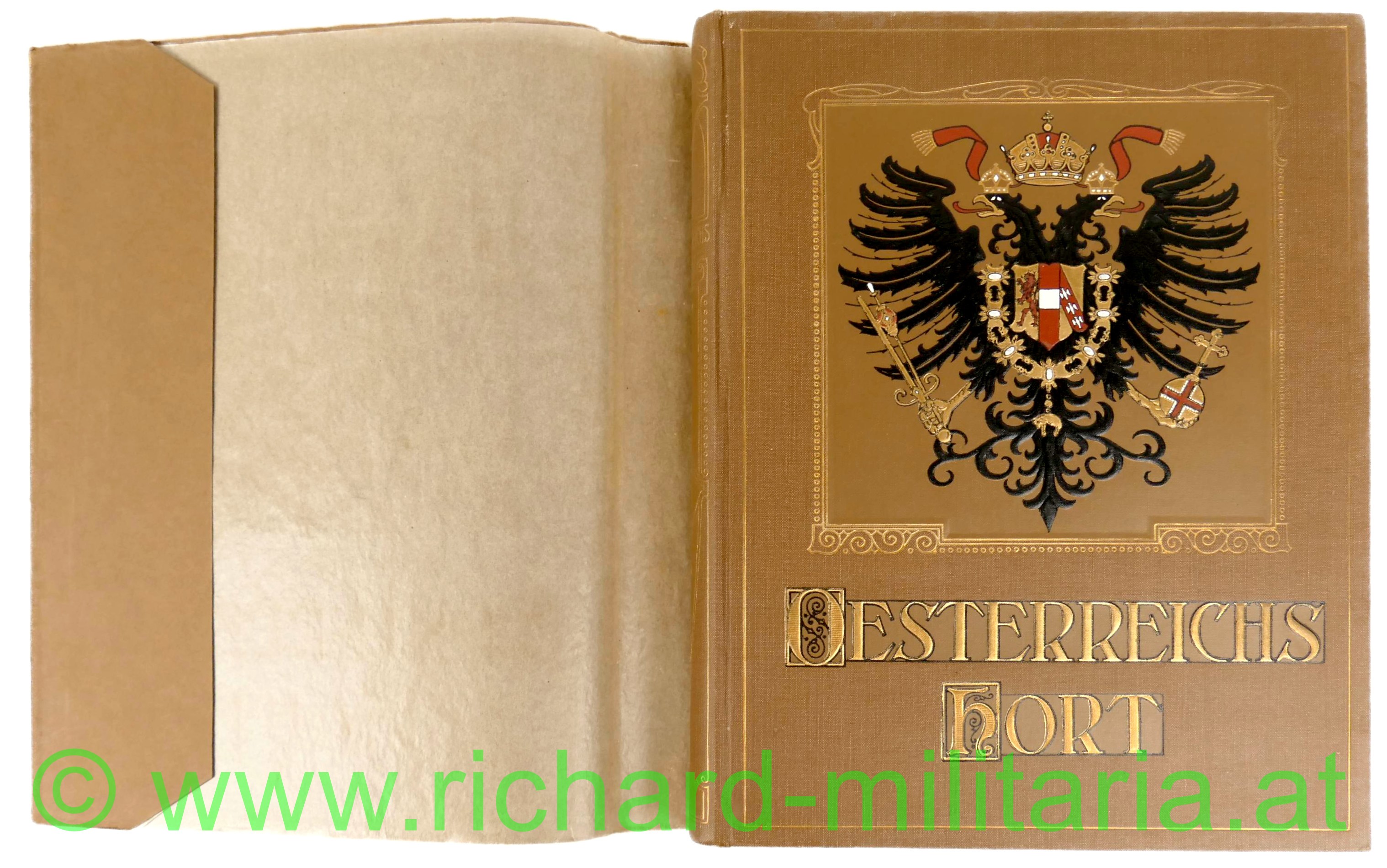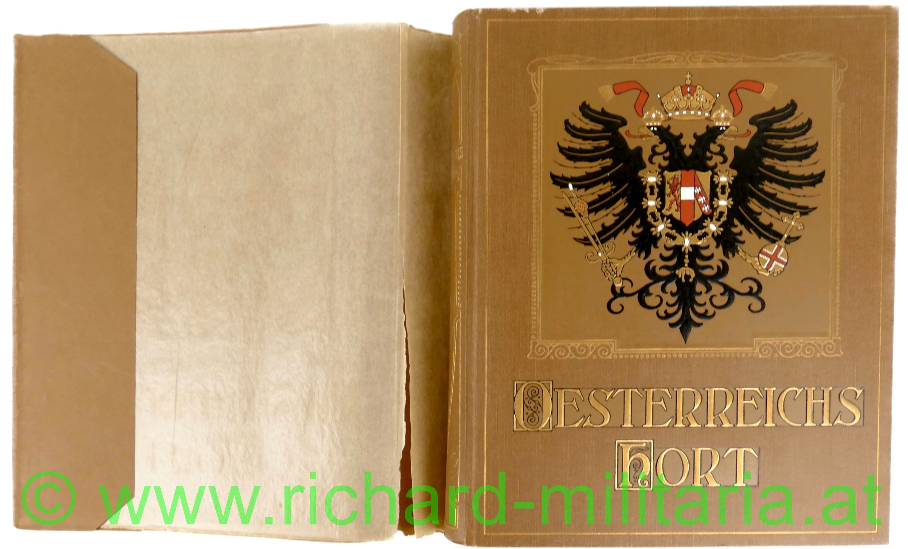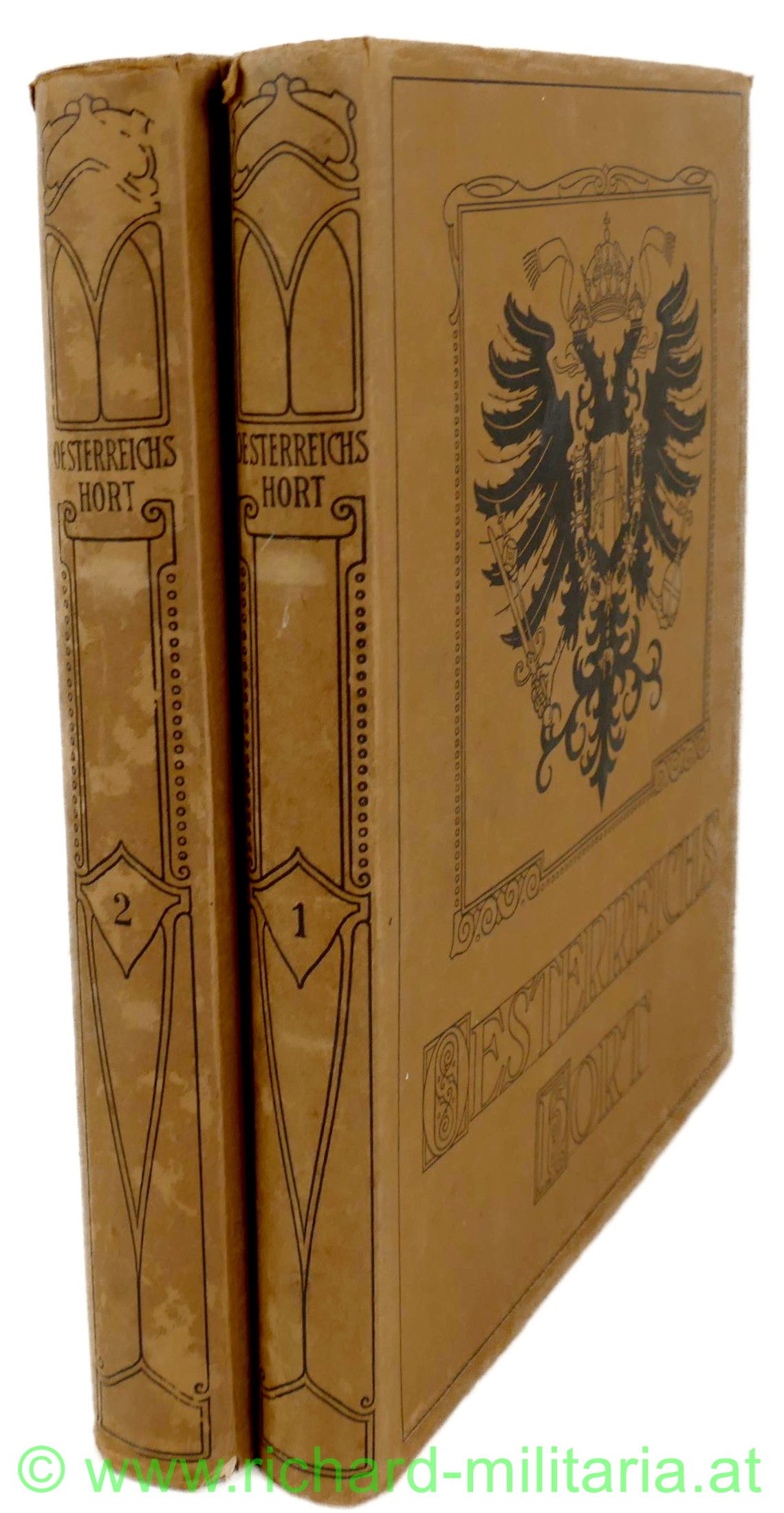 Österreichs Hort - 2 Bände, Geschichts- und Kulturbilder aus den Habsburgischen Erbländern, eine Festausgabe an das österreichische Volk zur Jubelfeier des Kaisers Franz Josef I., hrsg. v. einem Kreise vaterländischer Schriftsteller; Verlag Wien patriotische Volksbuchhandlung 1908, 2 vermehrte Auflage, vollständig alle Seiten vorhanden, farbig bedruckter brauner Glanzleineneinband mit Schutzumschlag;