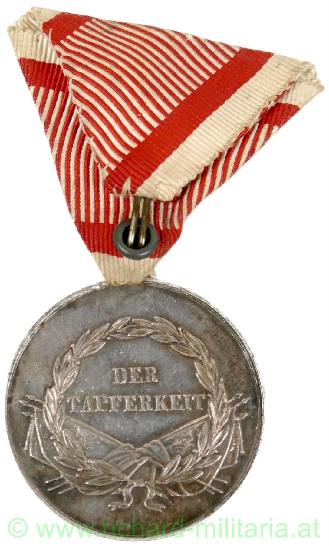 Silberne Tapferkeitsmedaille 1. Klasse Kaiser Franz Josef, Silber mit Randpunzierung "A", originales Band