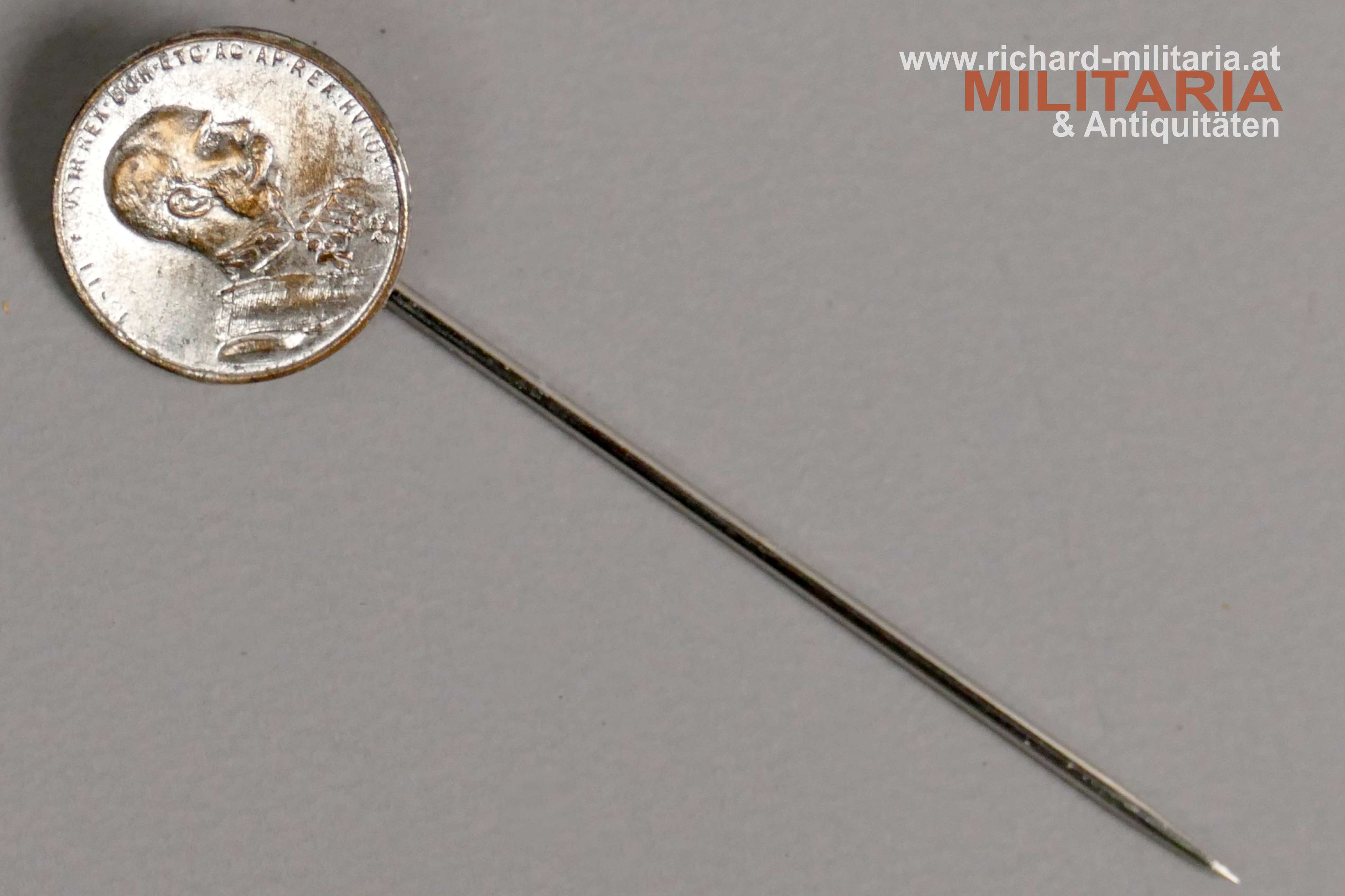 Silberne Tapferkeitsmedaille - Kaiser Franz Josef - Miniatur, Tombak versilbert, lange Anstecknadel angeklebt, DM ca.: 14 mm