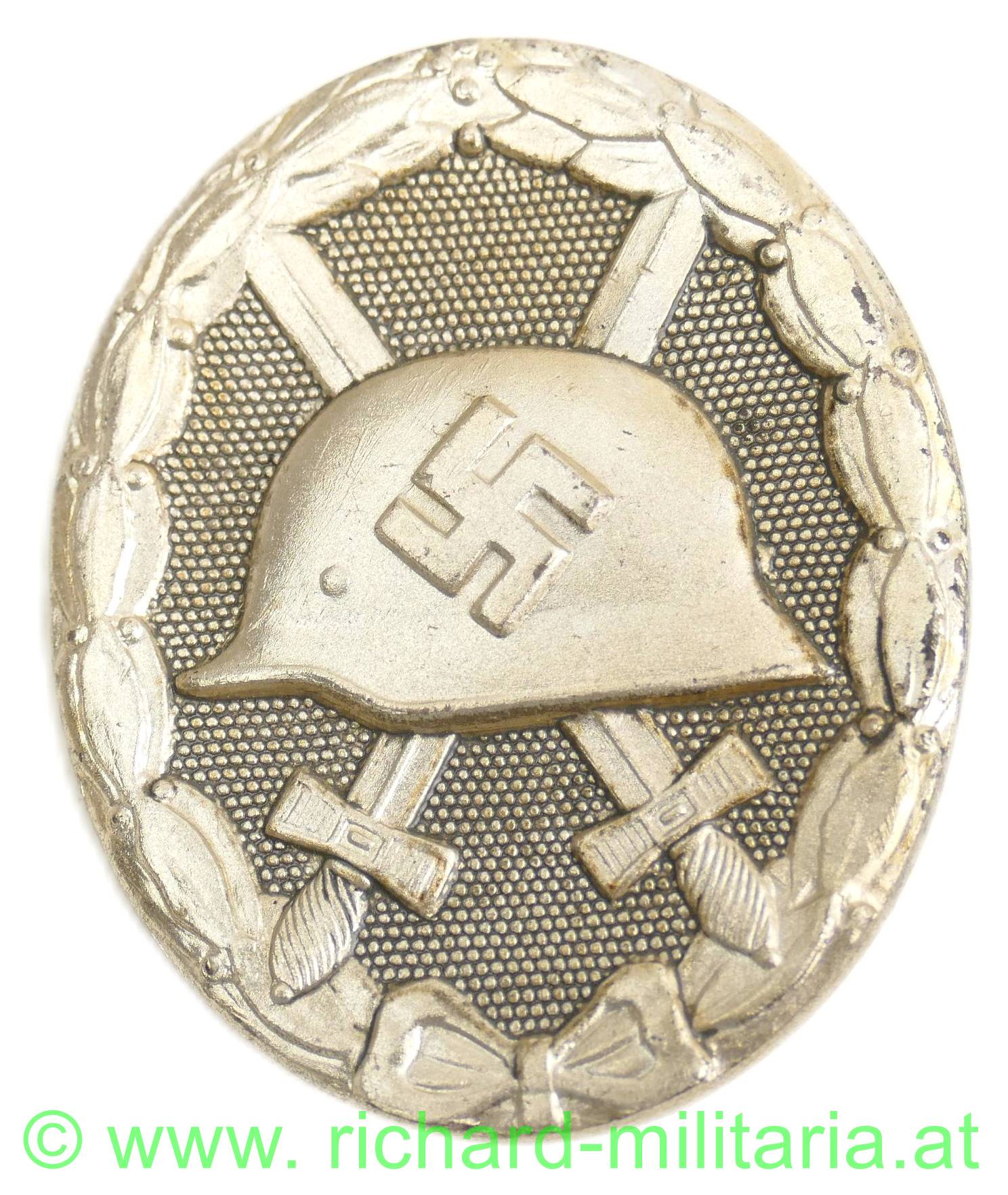 Verwundetenabzeichen in Silber, Feinzink versilbert, originale Tragenadel;
