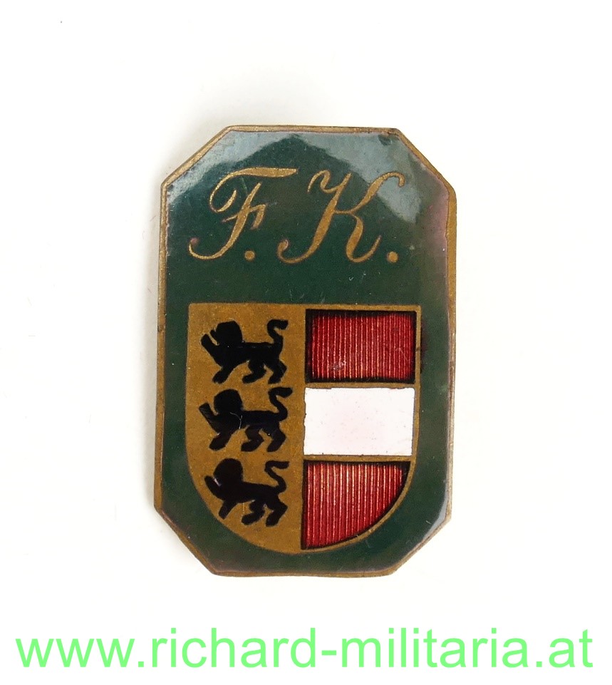 Abzeichen - FK - Kärntner Wappen, Tombak emailliert, originales Nadelsystem; 1. Drittel 20. Jahrhundert