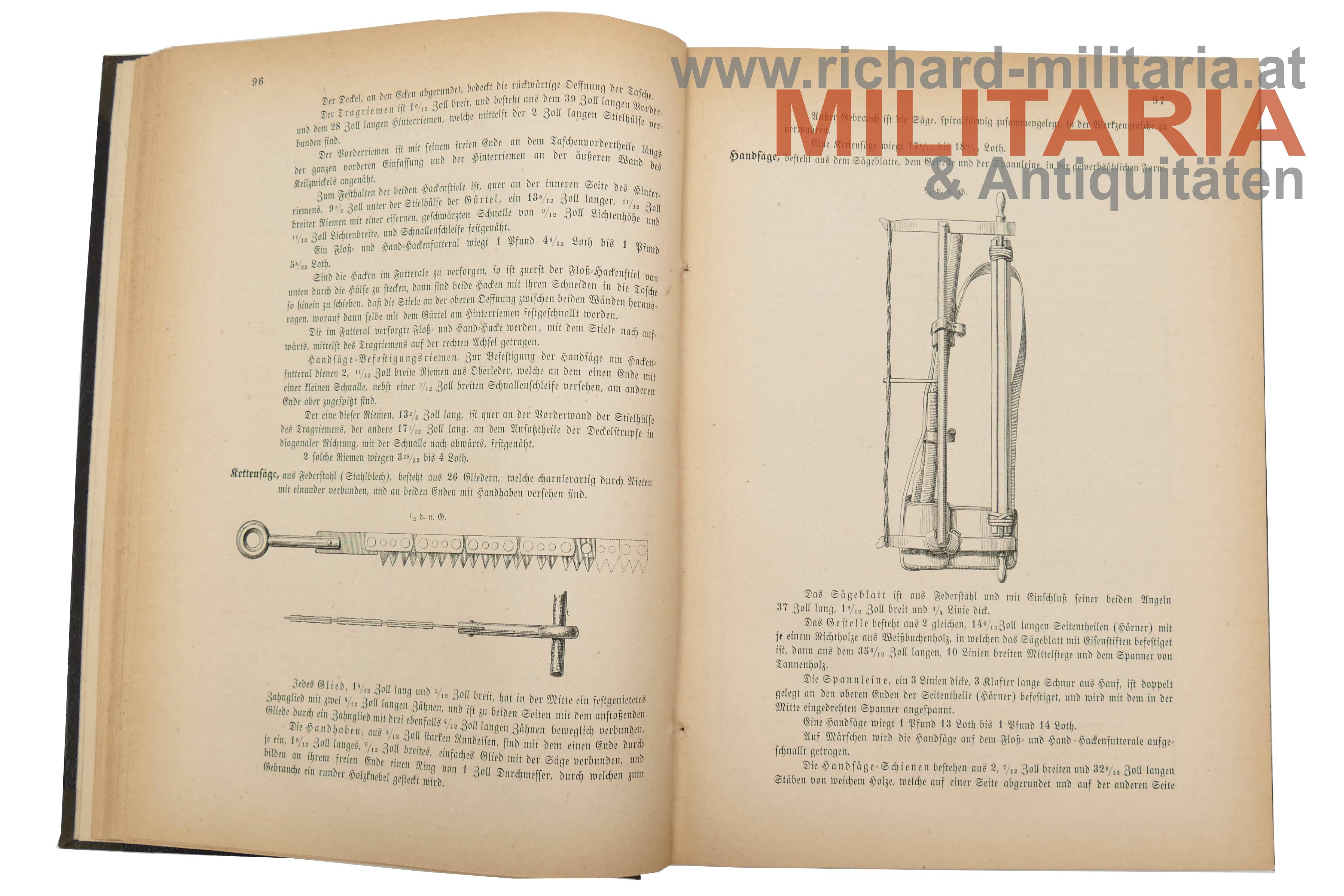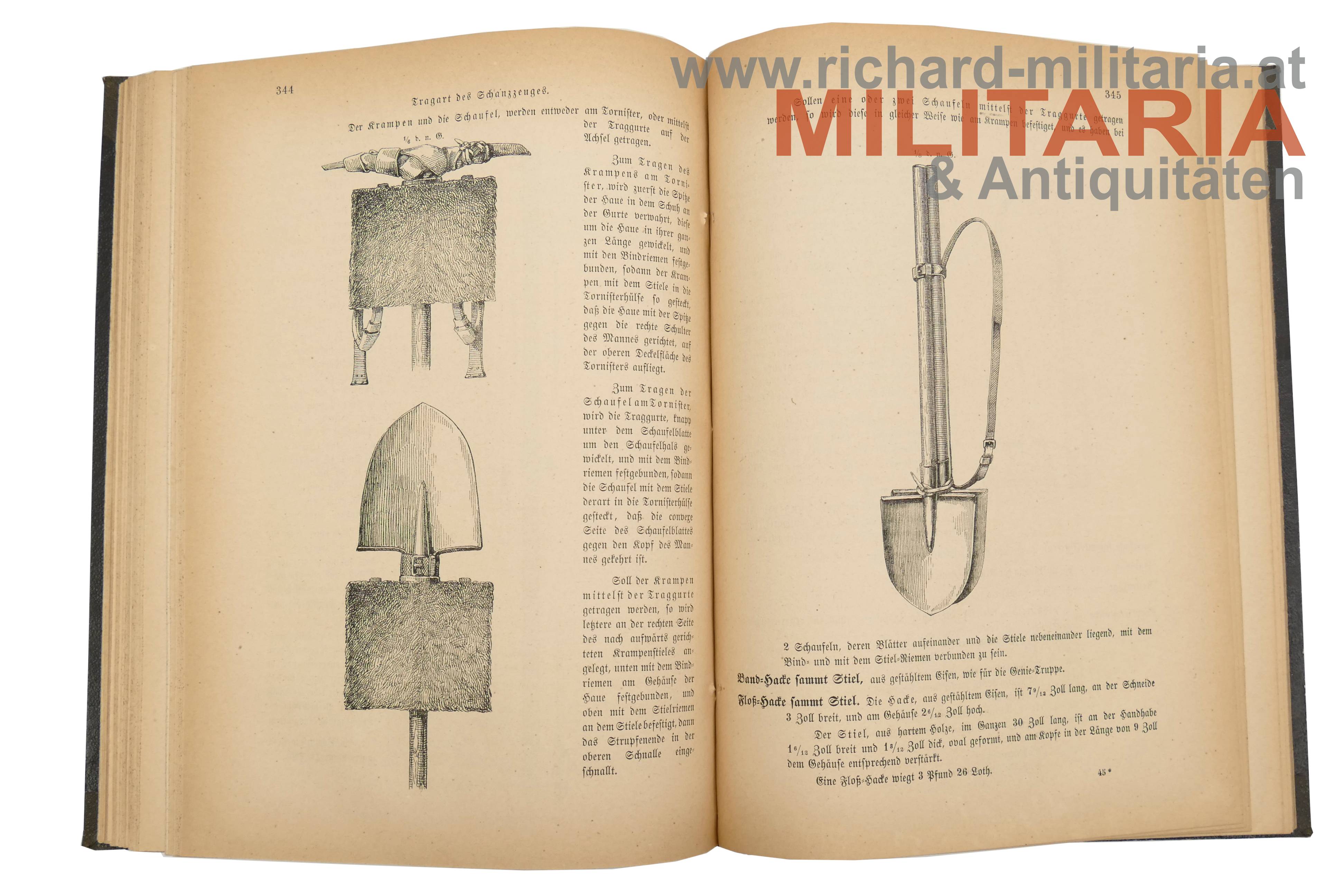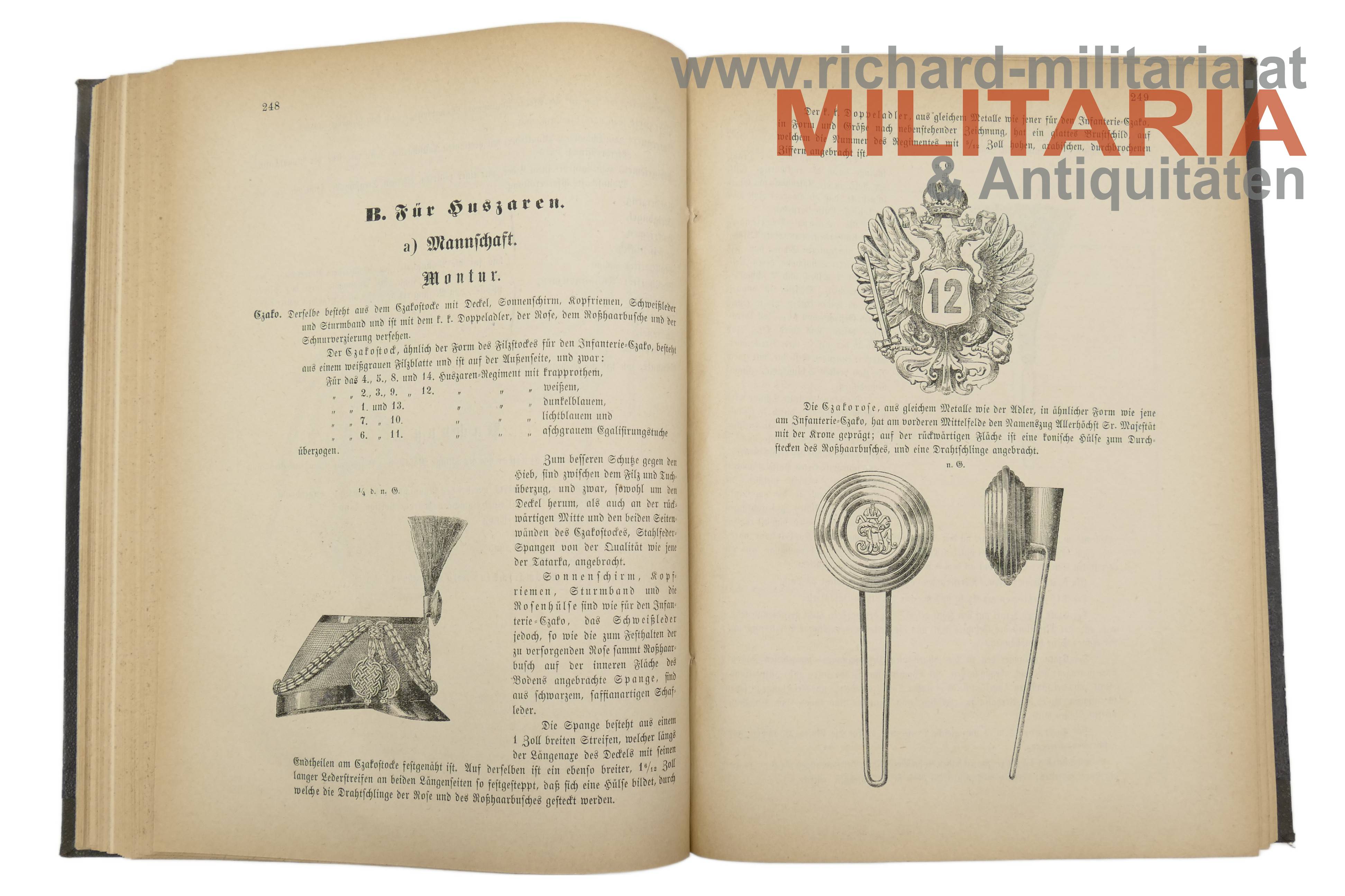 Adjustierungsvorschrift für das k.k. Heer - 1871; gebundene Originalausgabe; 508 Seiten + Anhang; Leinenbindung mit Lederrücken; Goldprägung am Rücken "Adjustierungsvorschriften für das k.k. Heer"; sehr guter vollständiger Zustand