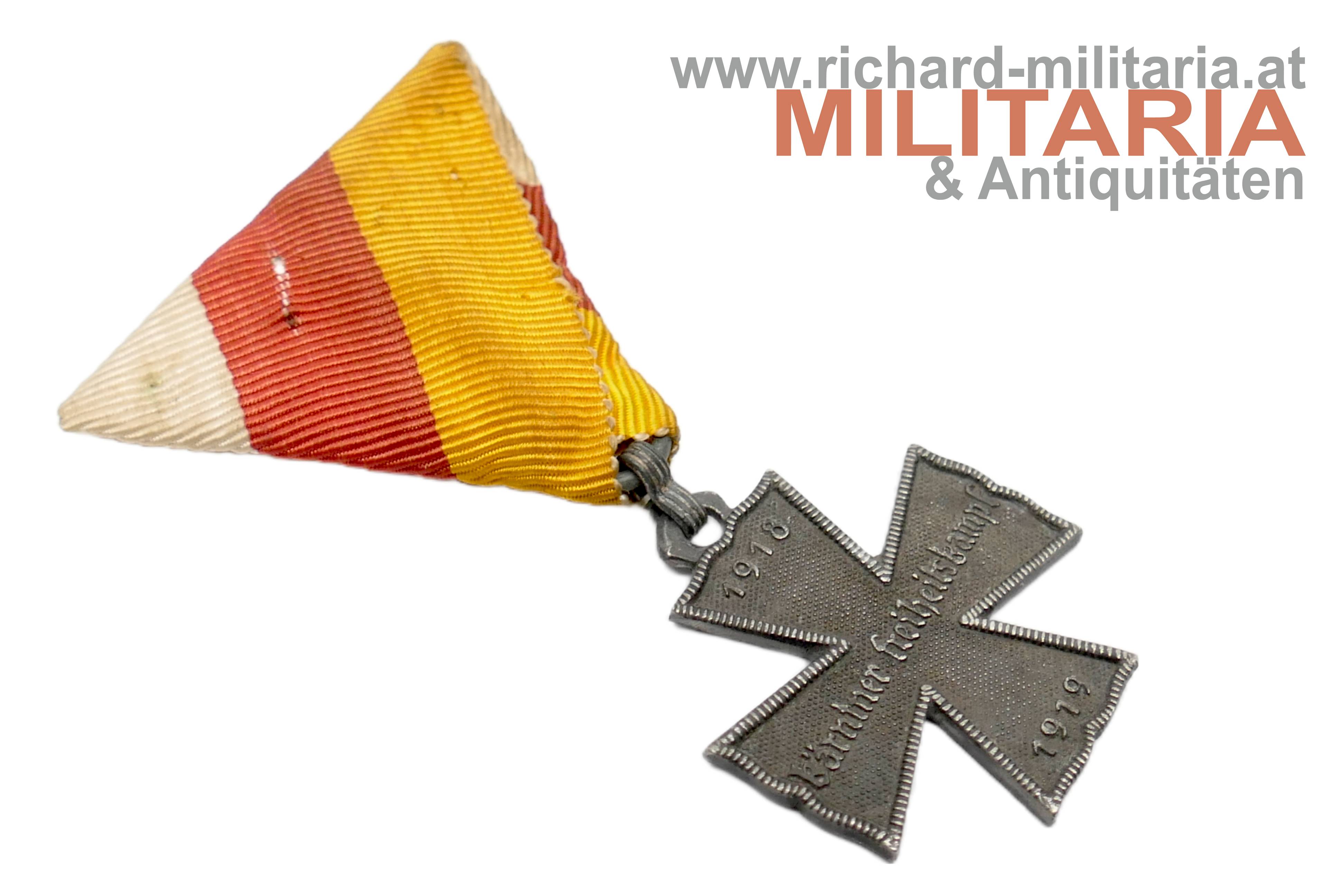 Allgemeines Kärntner Kreuz für Verdienst; Zink; am zeitgenössischen passenden Dreiecksband;