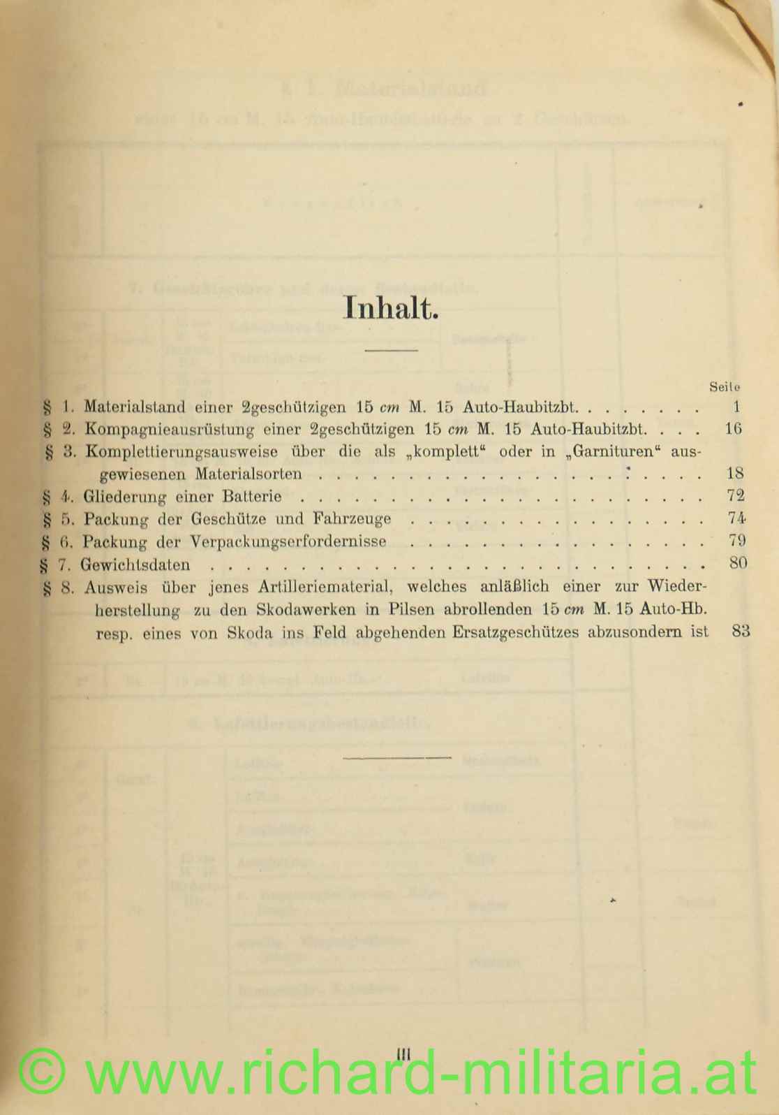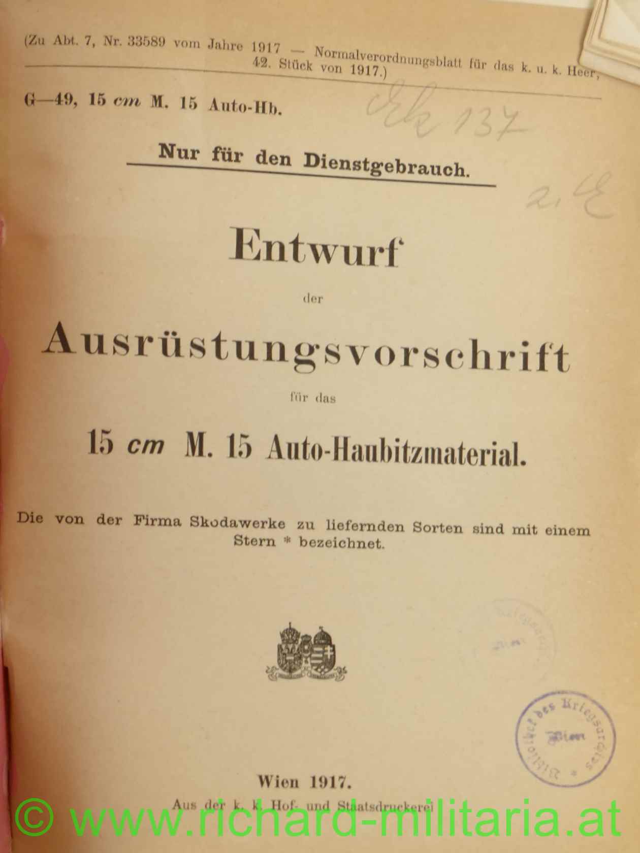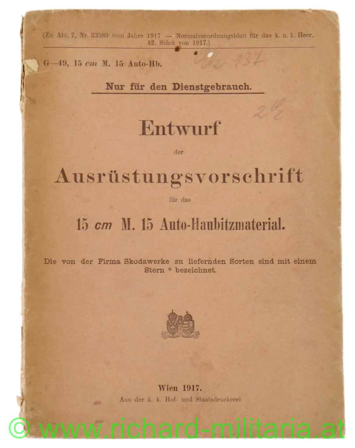 Ausrüstungsvorschrift für das 15 cm M. 15 Auto-Haubitzmaterial - Wien 1917
