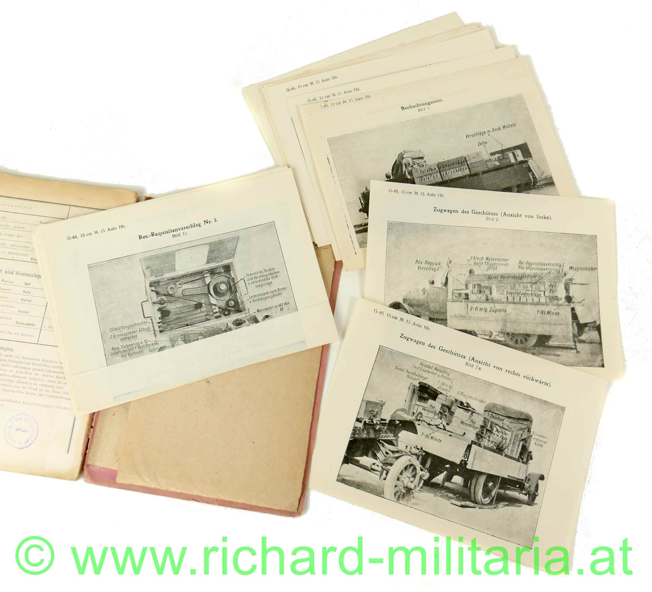 Ausrüstungsvorschrift für das 15 cm M. 15 Auto-Haubitzmaterial - Wien 1917, vollständig, Rücken bestoßen; mit herausnehmbaren Bildtafeln auf der letzten Seite;