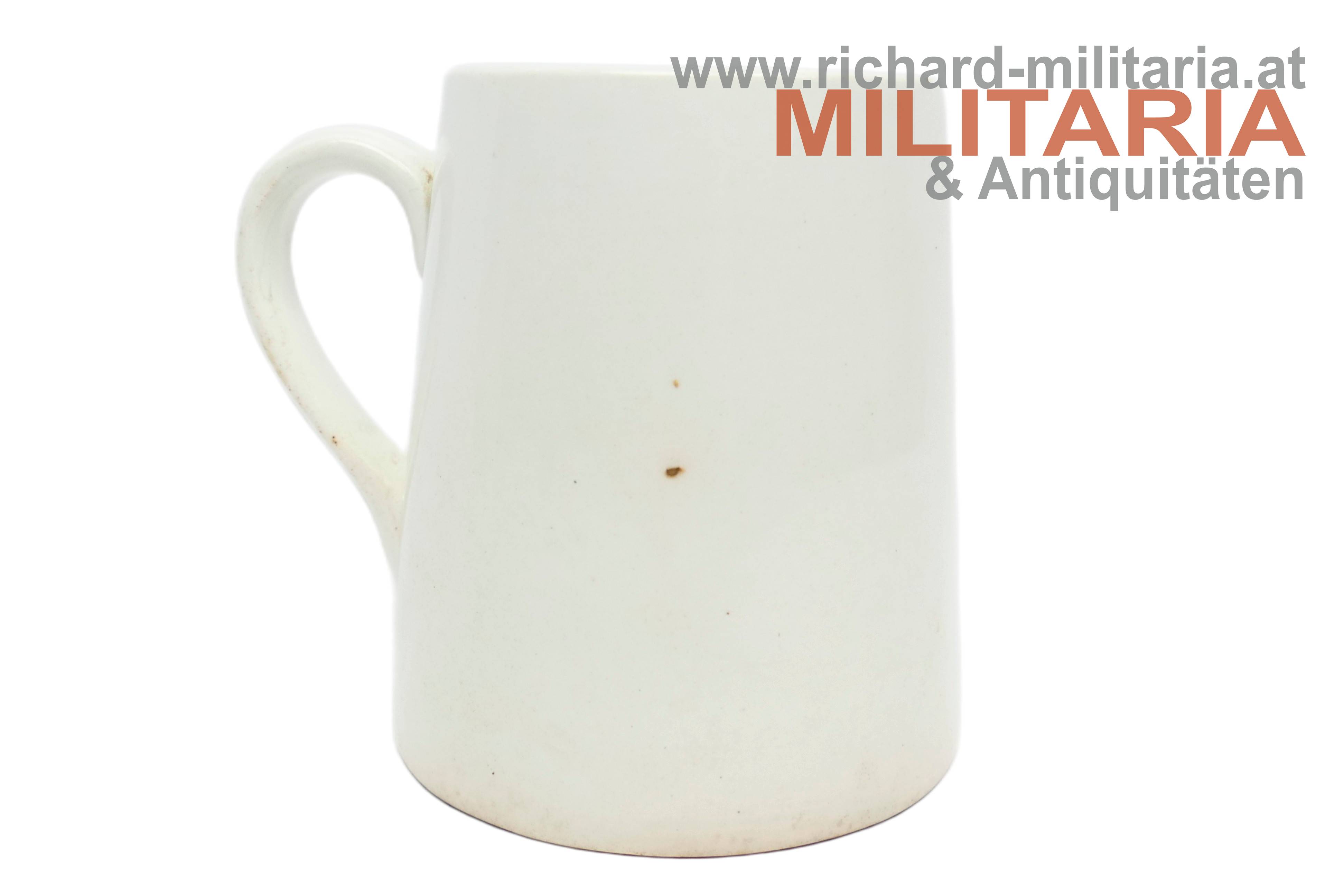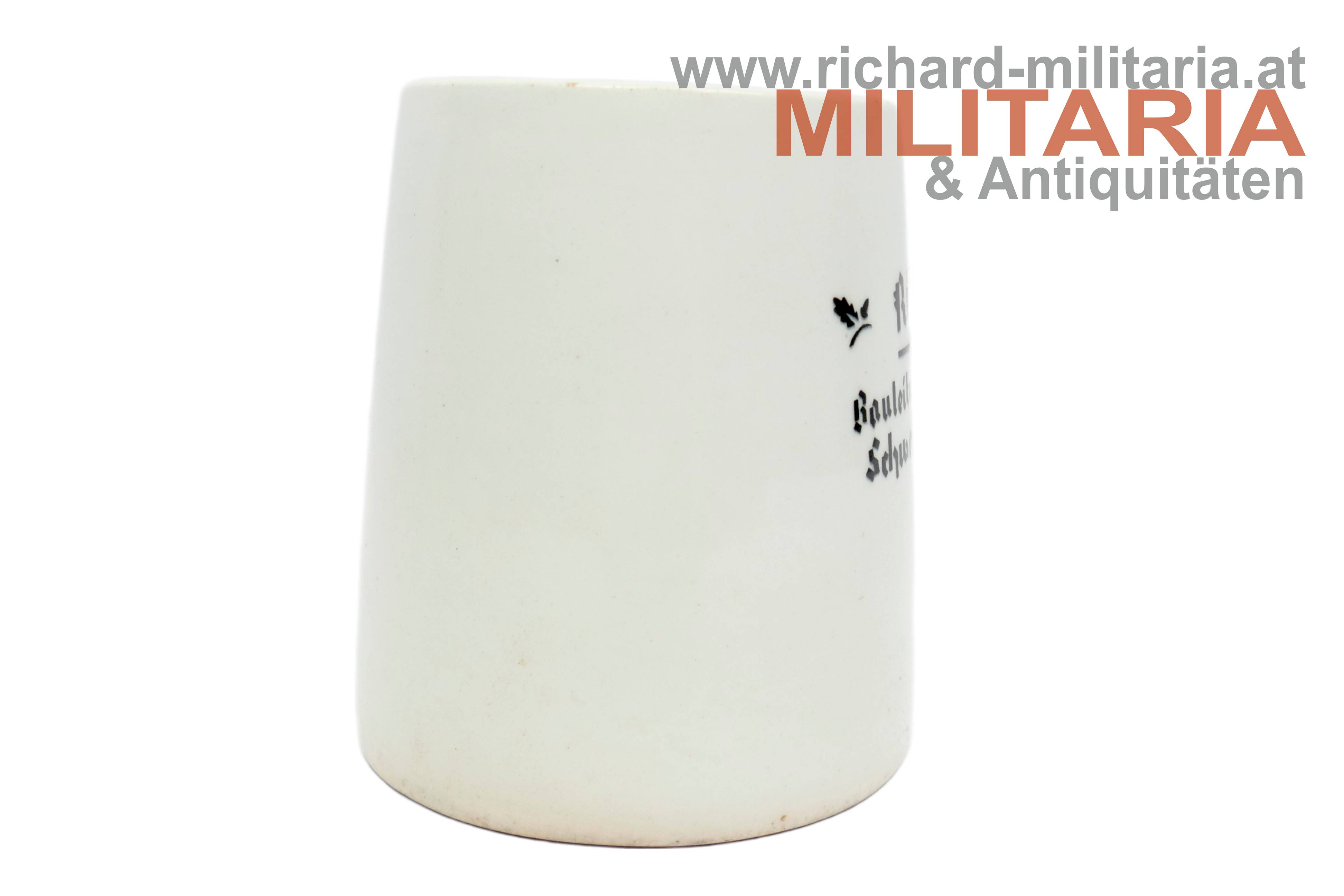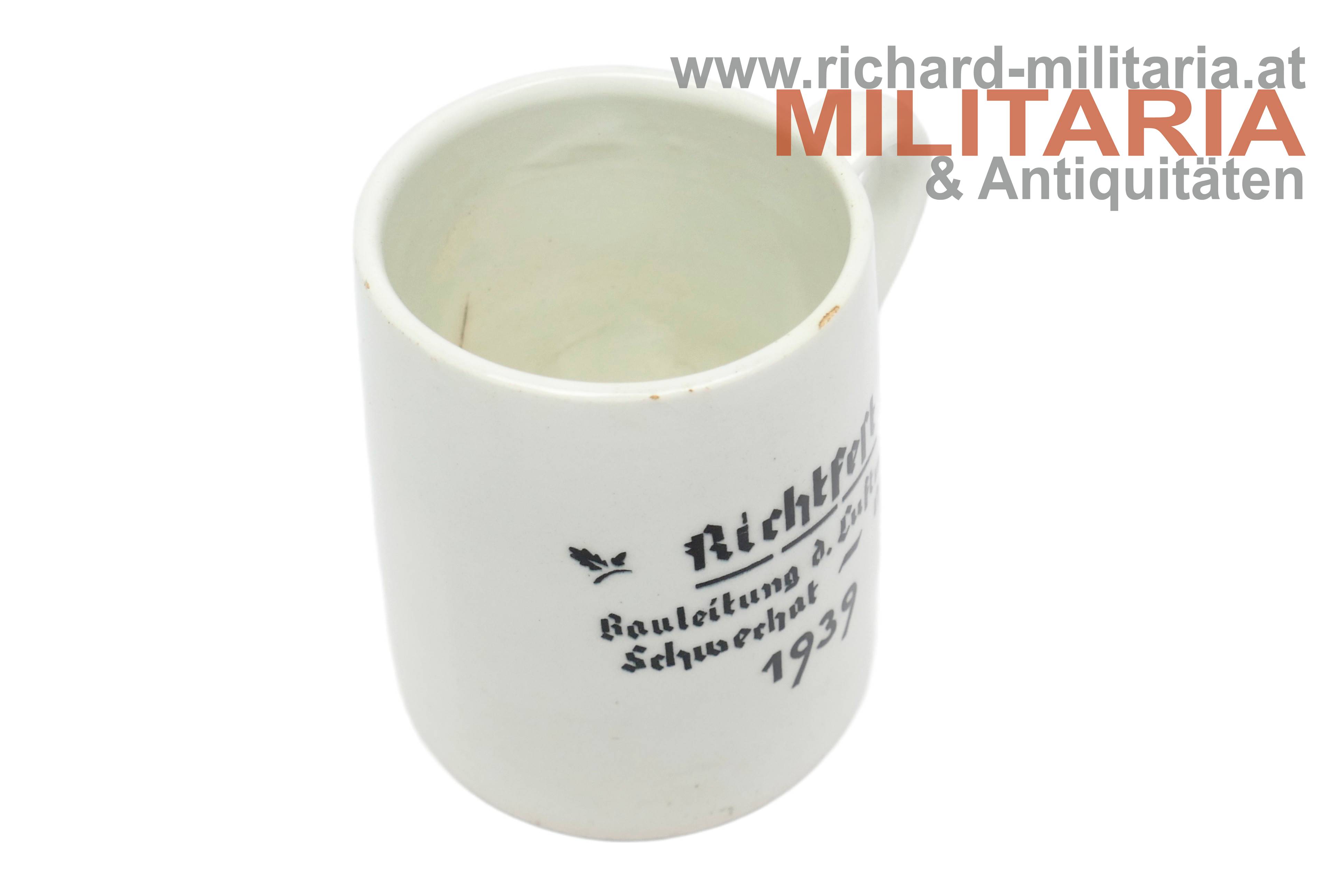 Bierkrug - "Richtfest - Bauleitung d. Luftwaffe Schwechat-Ost 1939"; Keramik glasiert; am Boden Herstellermarkierung "Ditmar Urbach"; minimale Absplitterungen am Becherrand;