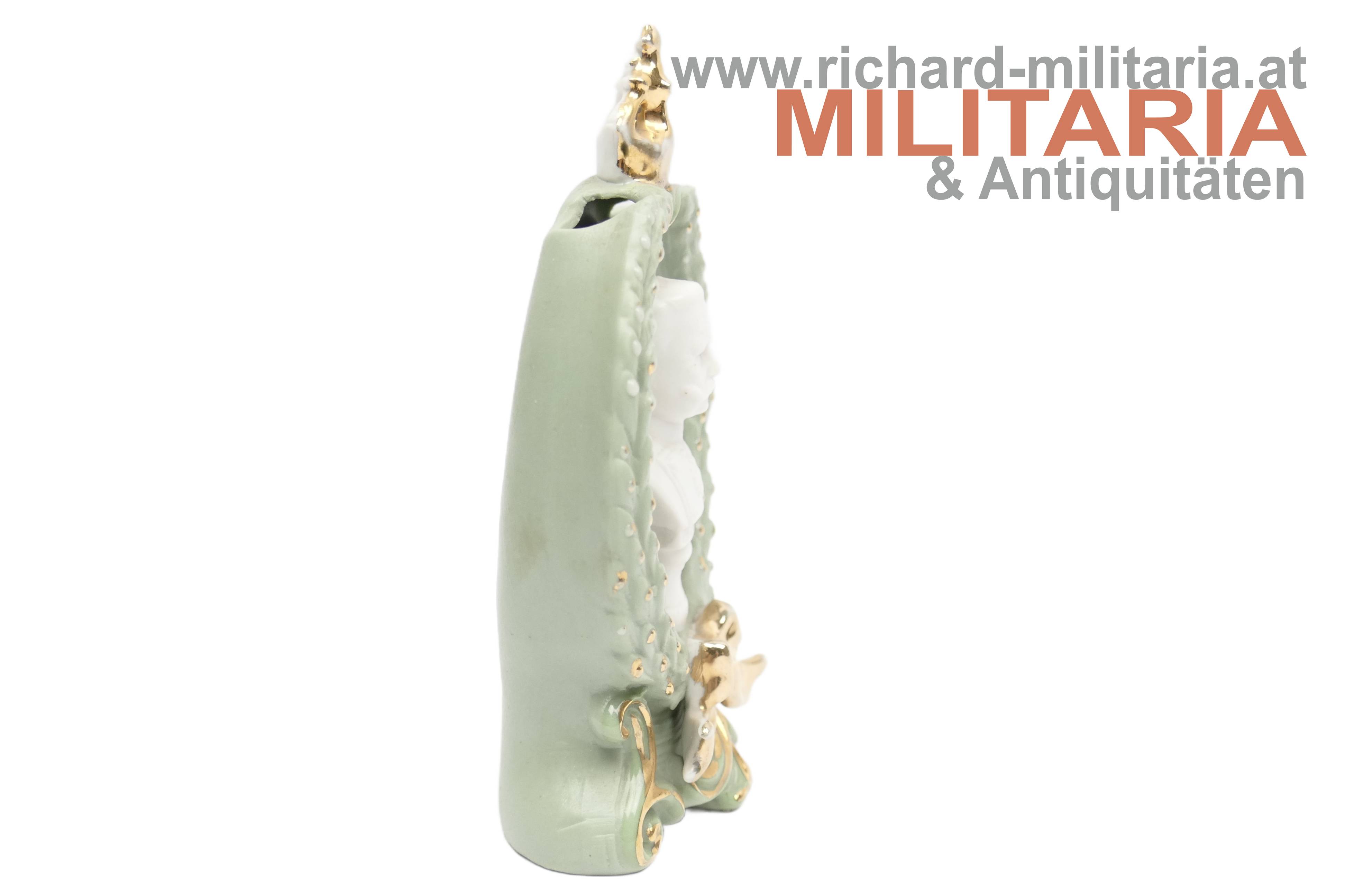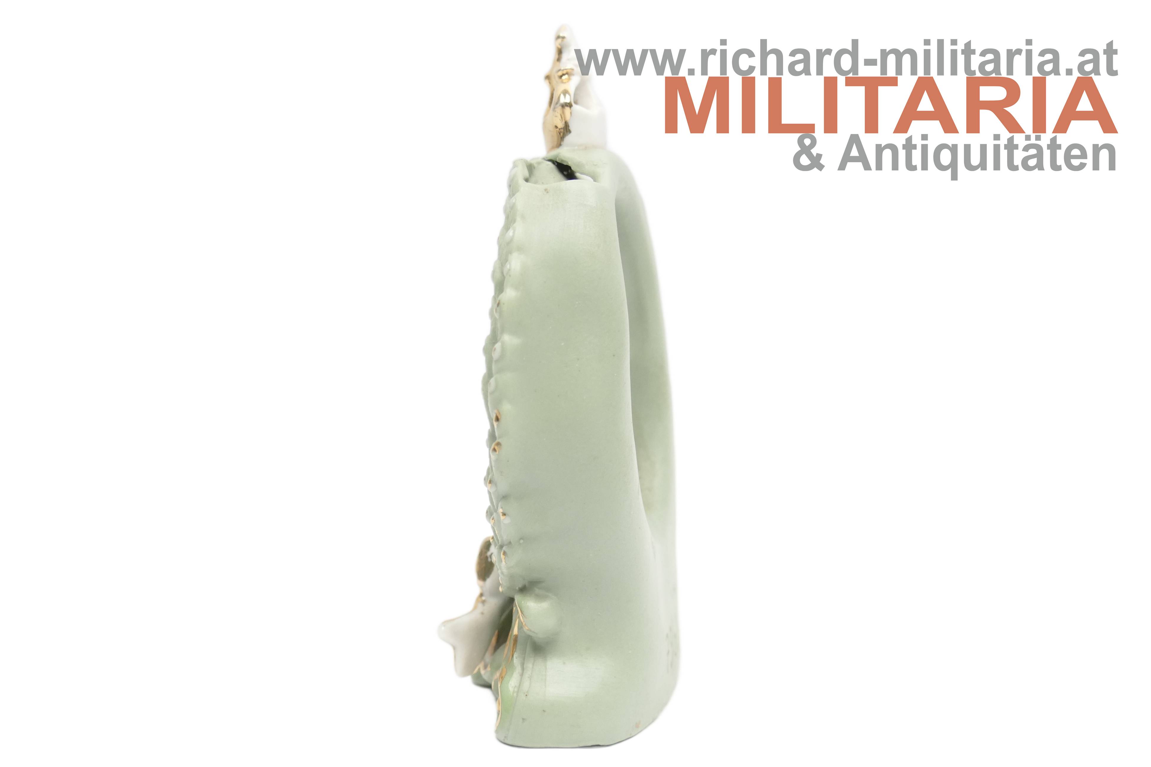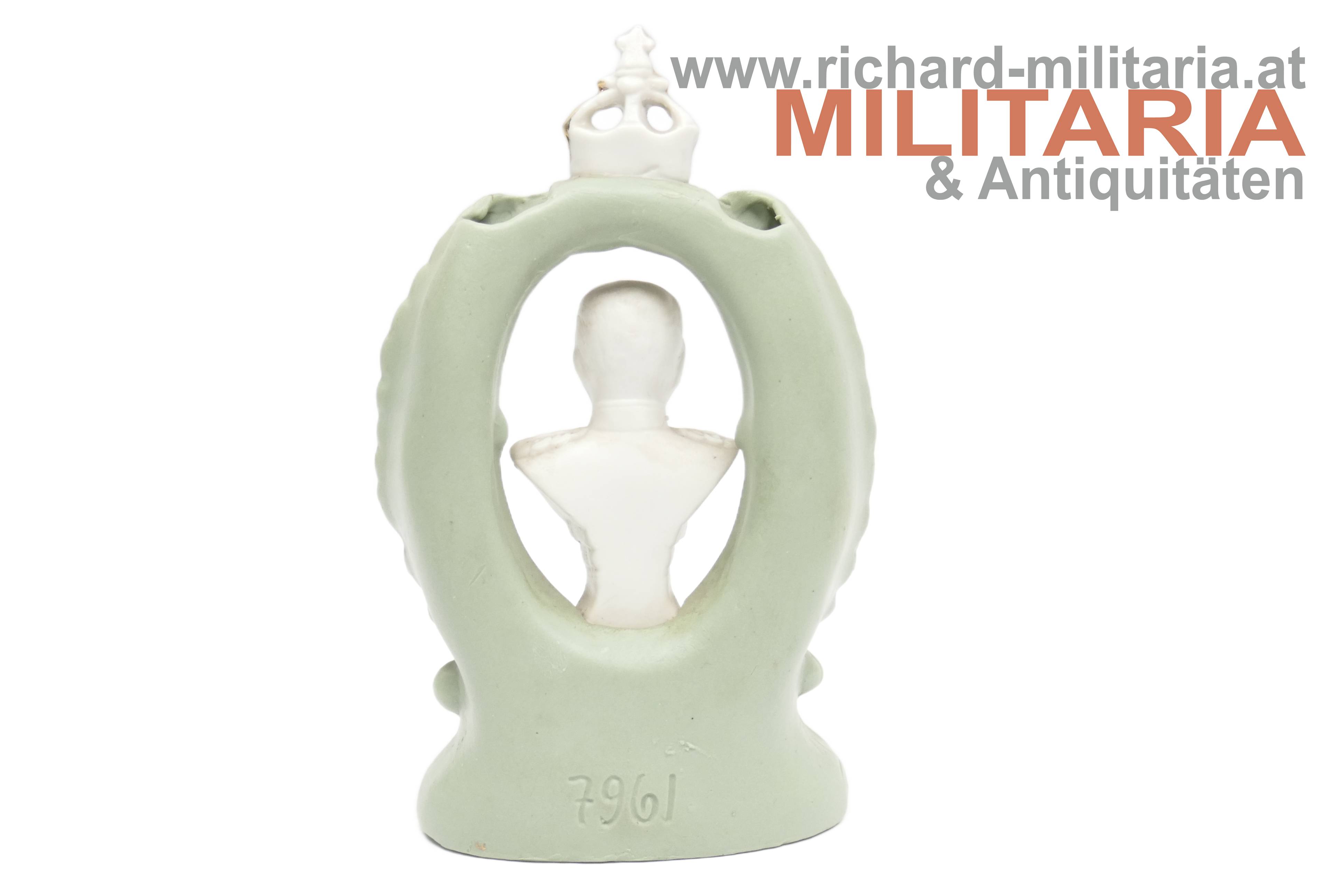 Biskuitporzellan - General v. Hindenburg; weiße Biskuitbüste umrandet von einem Kranz; darunter eine Schleife und überhöht von einer Krone; Krone frontseitig goldig glasiert; revers die Nummer "7961";