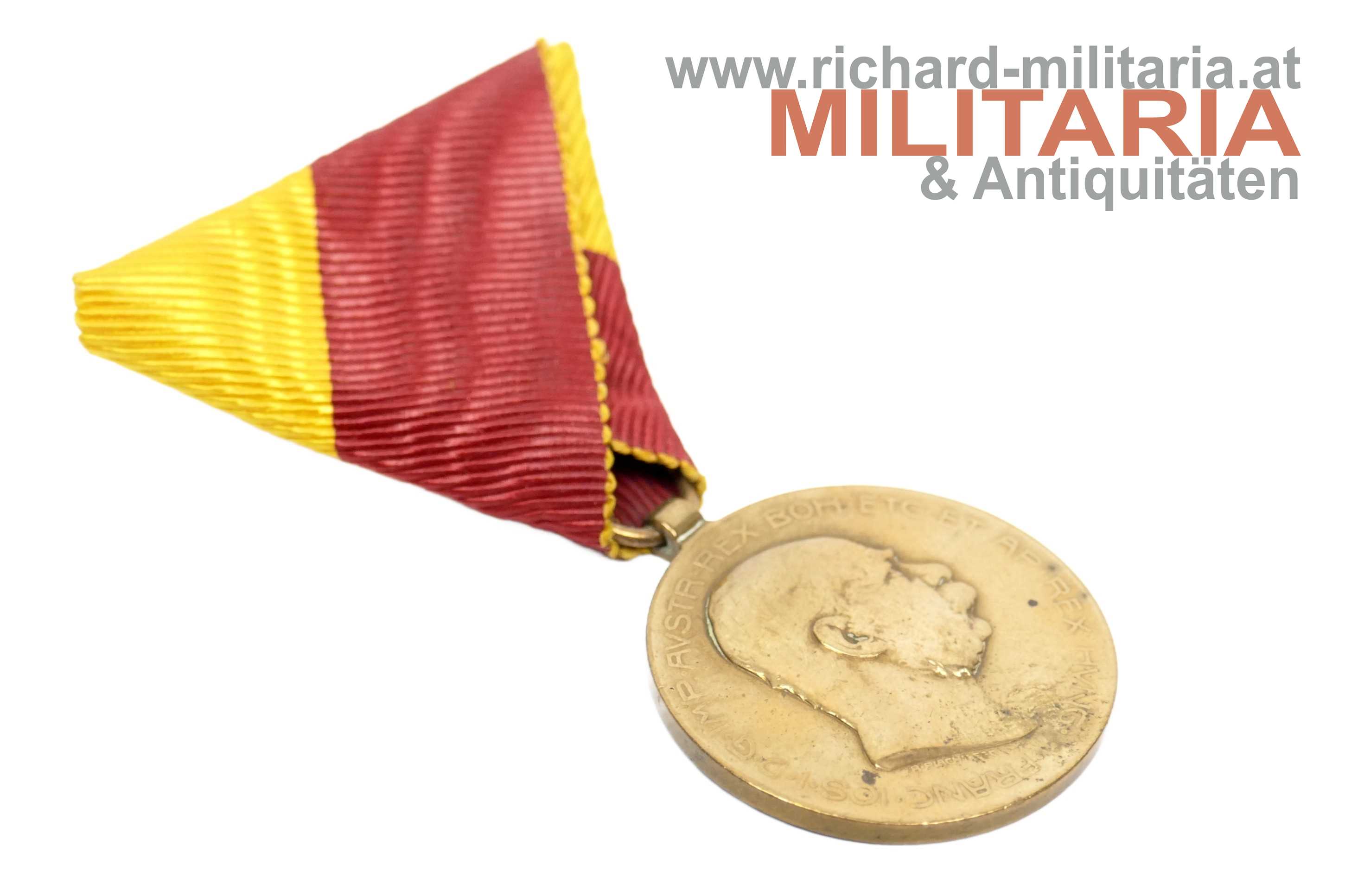 Bosnisch-Herzegowinische Erinnerungsmedaille 1909 - Bosnien-Medaille; Bronze; am originalen sehr gut erhaltenen Dreiecksband;