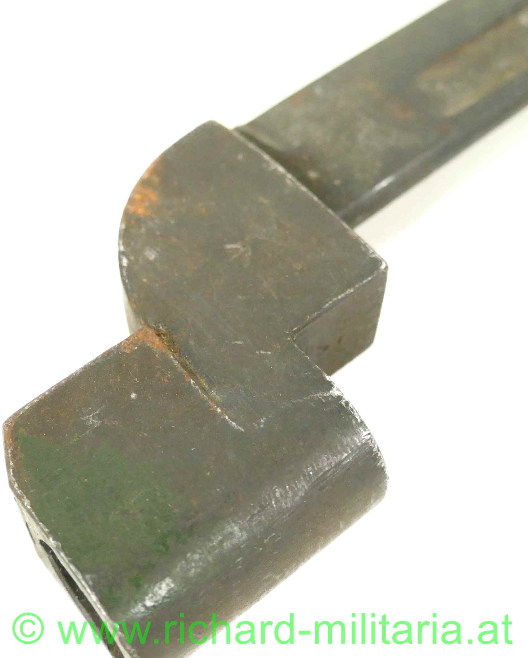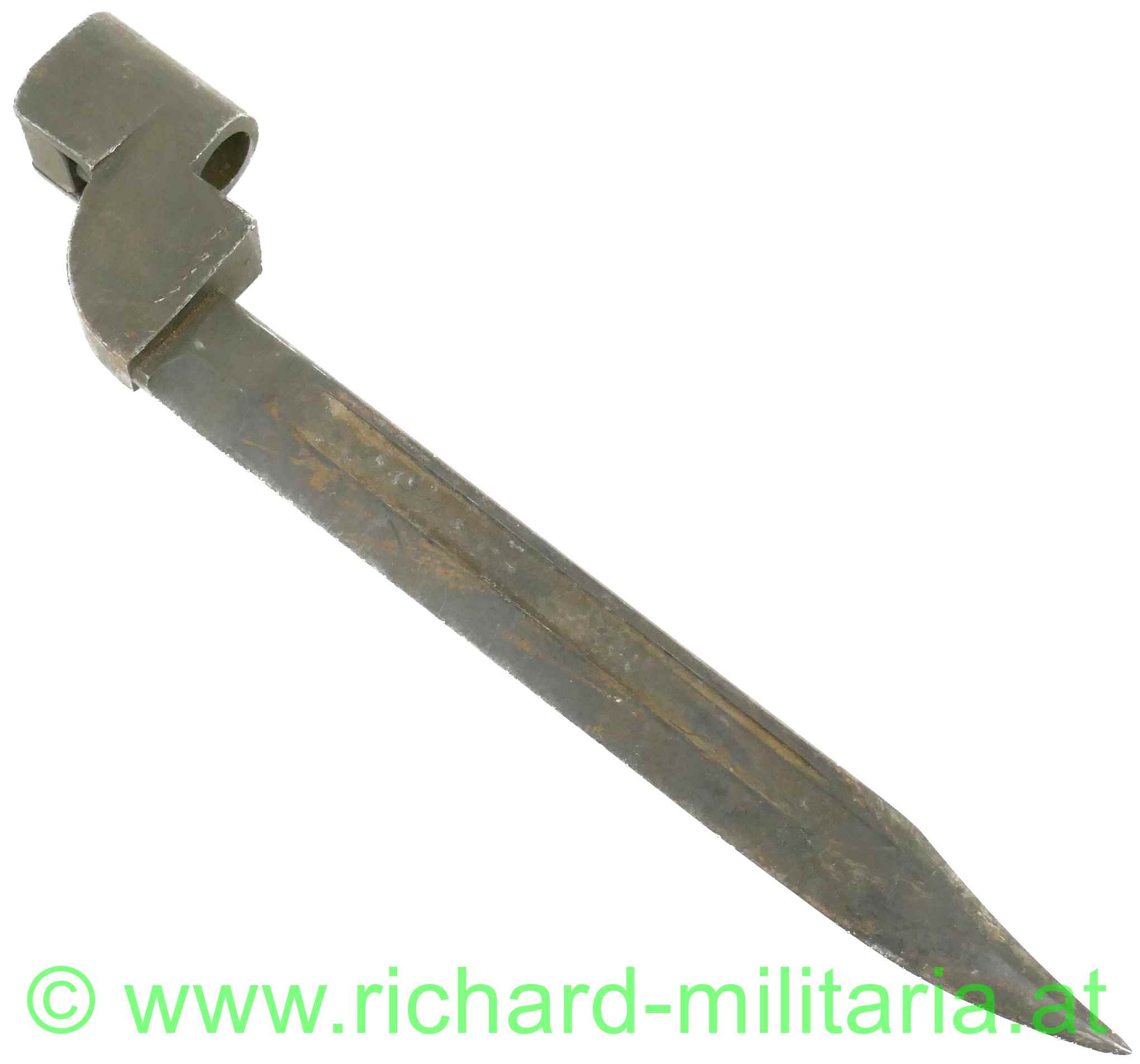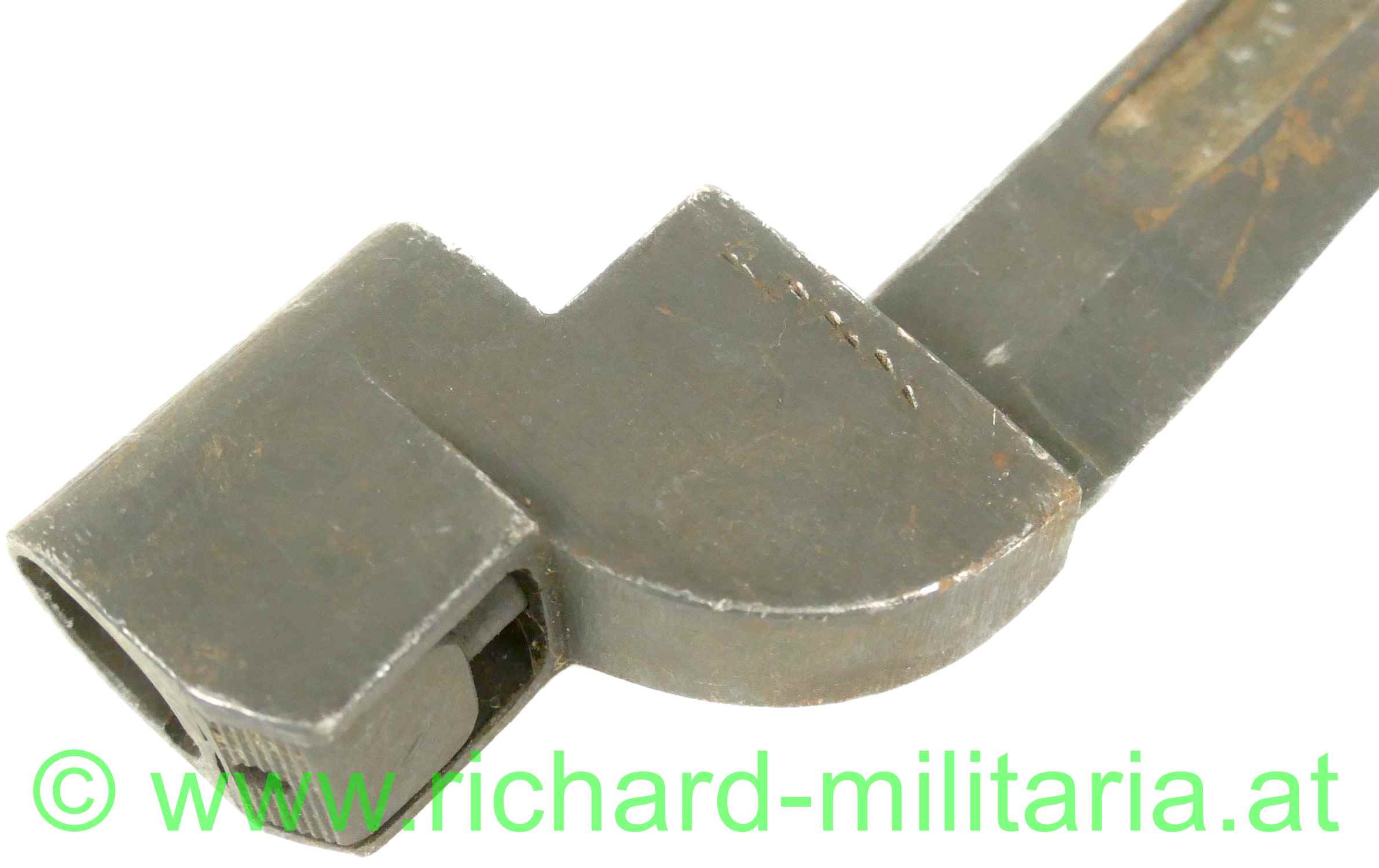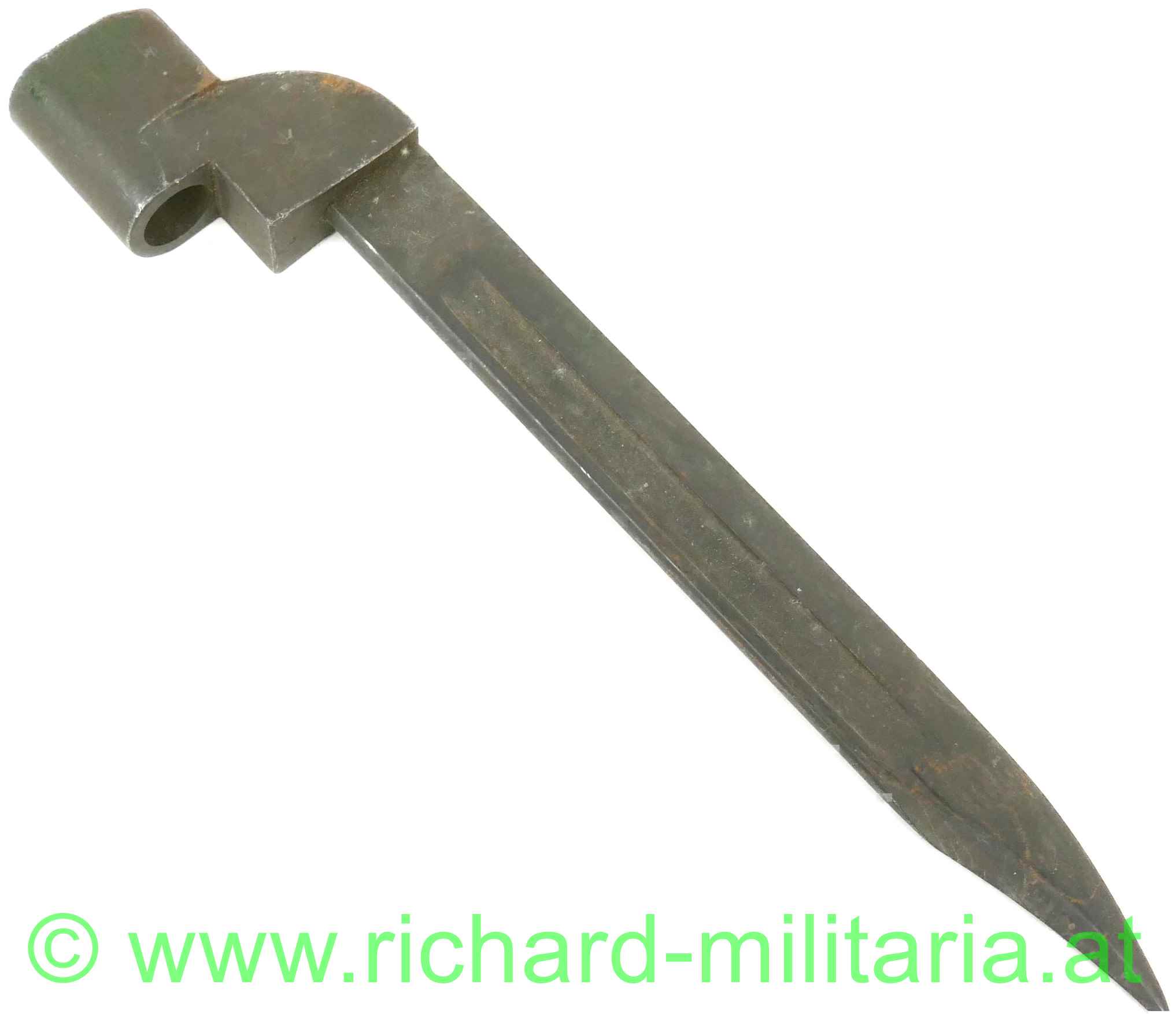 Britisches Bajonett N 09 Mk1, Bajonett komplett brüniert, typische britische "Pfeilabnahme" - mehrmals gestempelt; Arretierung komplett funktionstüchtig; Nummerierung durchgestrichen; Scheide fehlt;