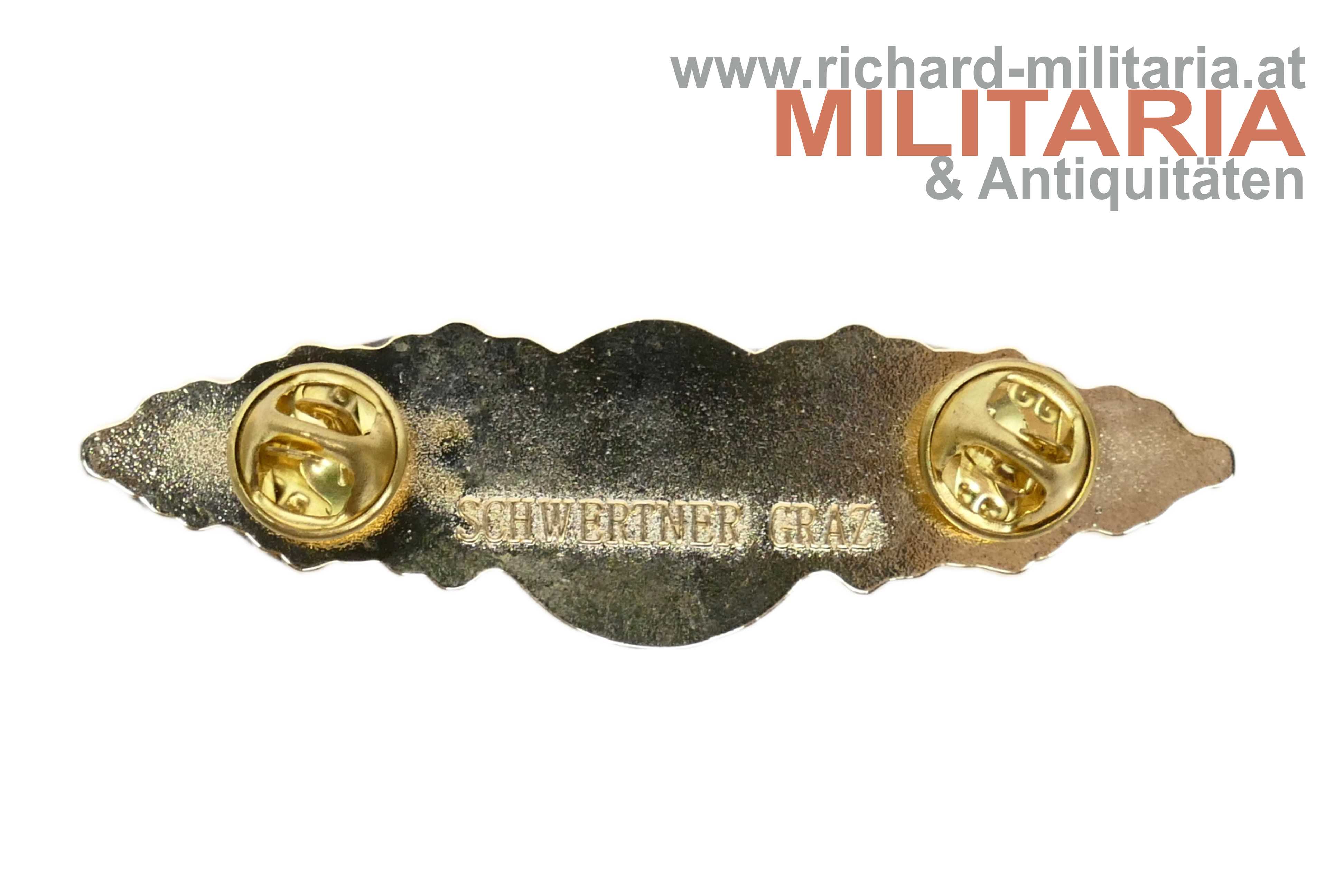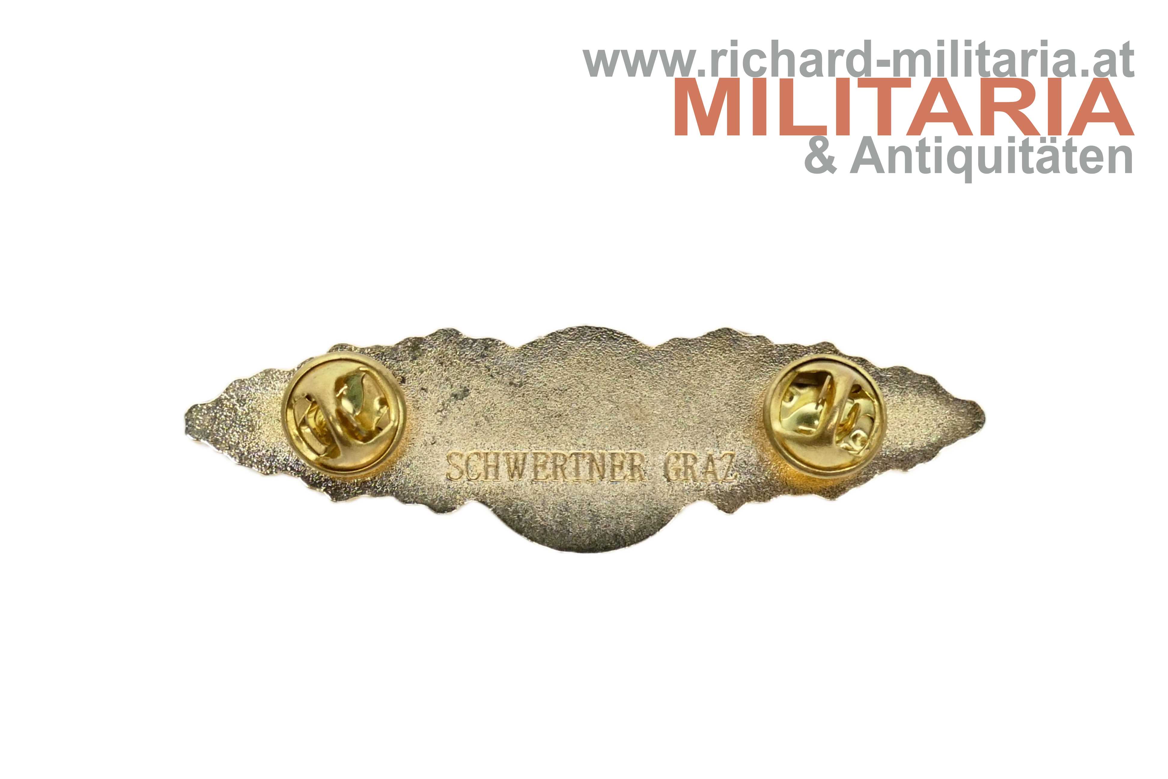 Bundesheer Leistungsabzeichen Pioniertruppe in Gold; beide Dornen inklusive Verschluss vorhanden; revers "Schwertner Graz";