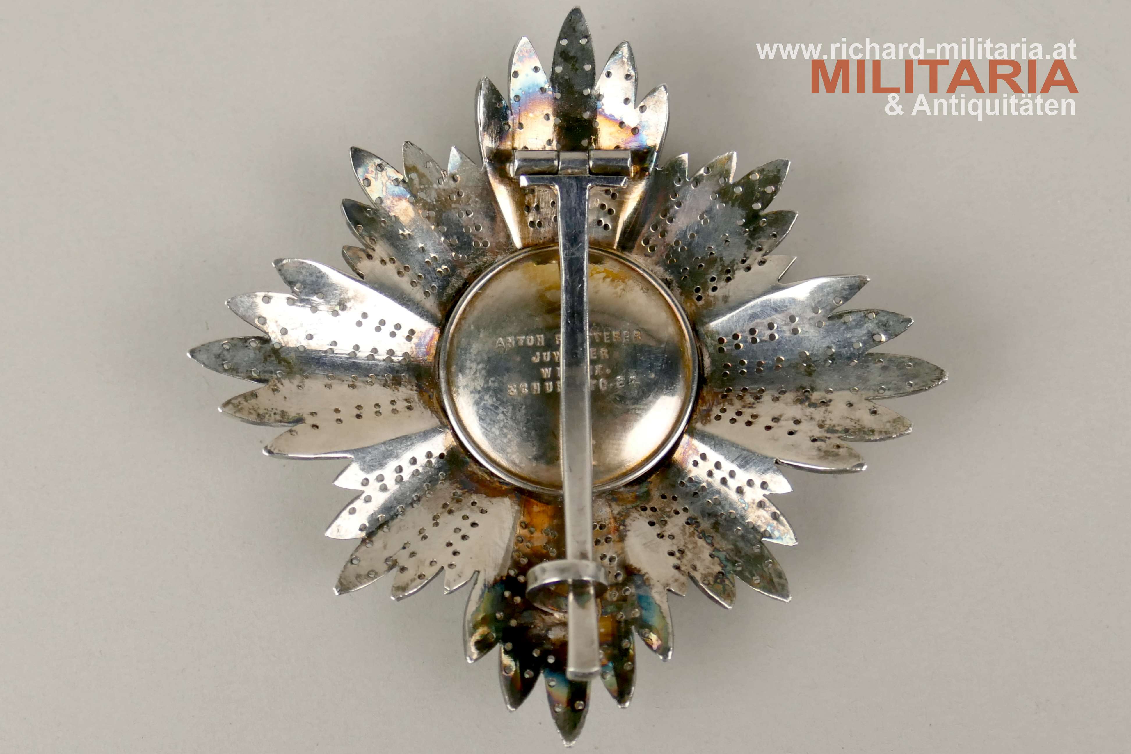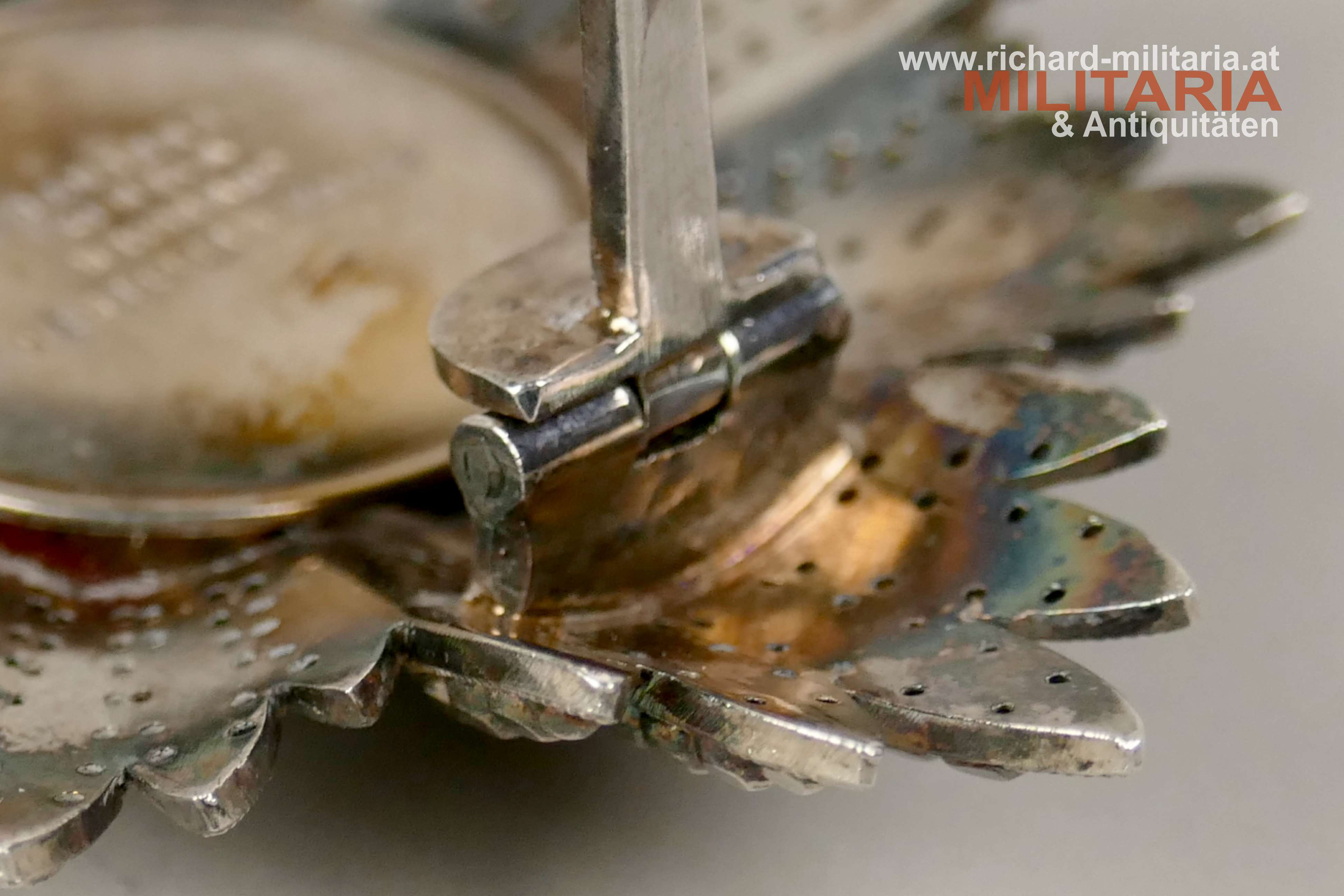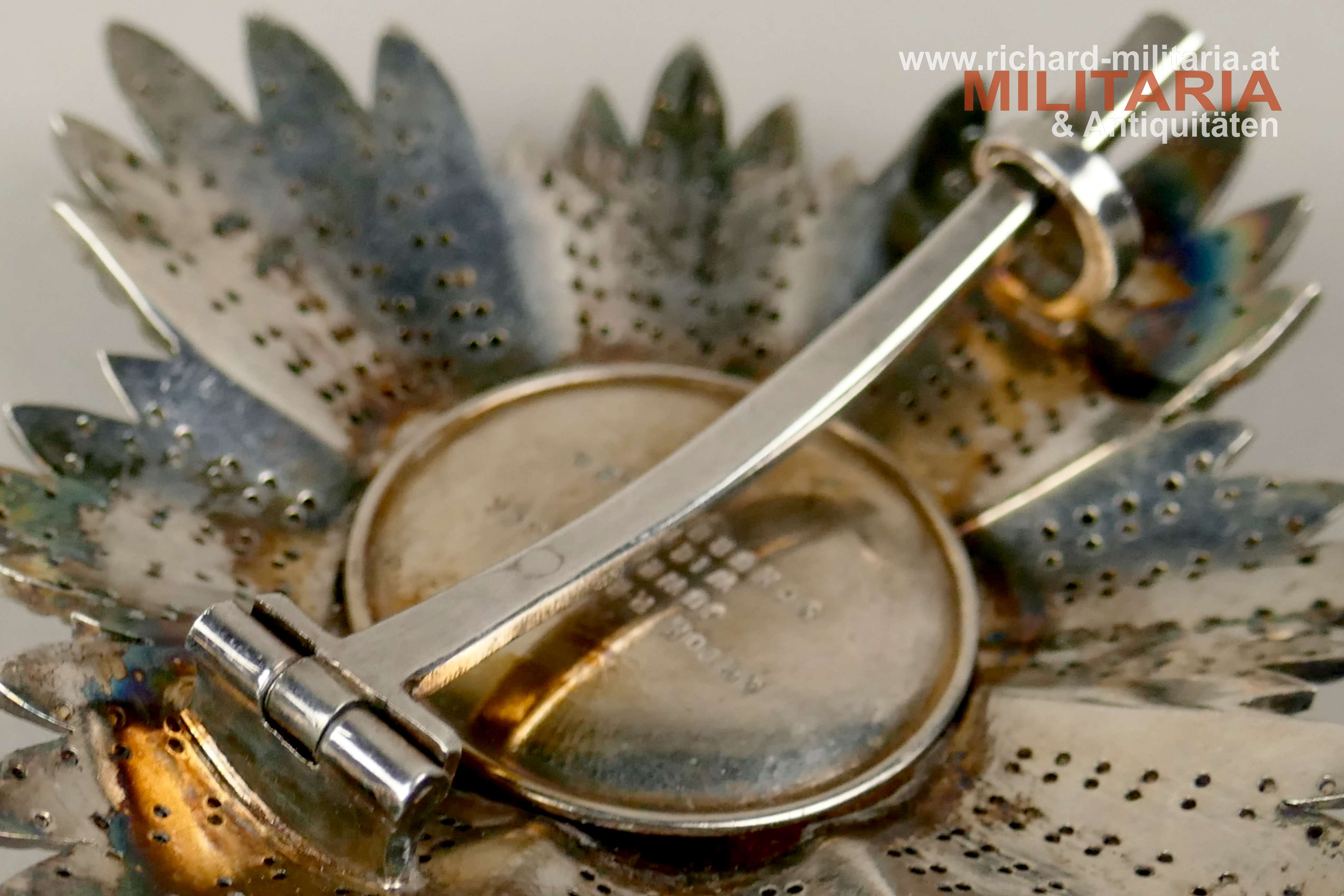 Bundesstaat - Bruststern zum großen Ehrenzeichen / Komturkreuz; Korpus aus Silber; weiße Emaillierung der Auflage einwandfrei; Medaillon revers mit dem Hersteller "Anton Reitterer"; gebogenes, originales Nadelsystem;