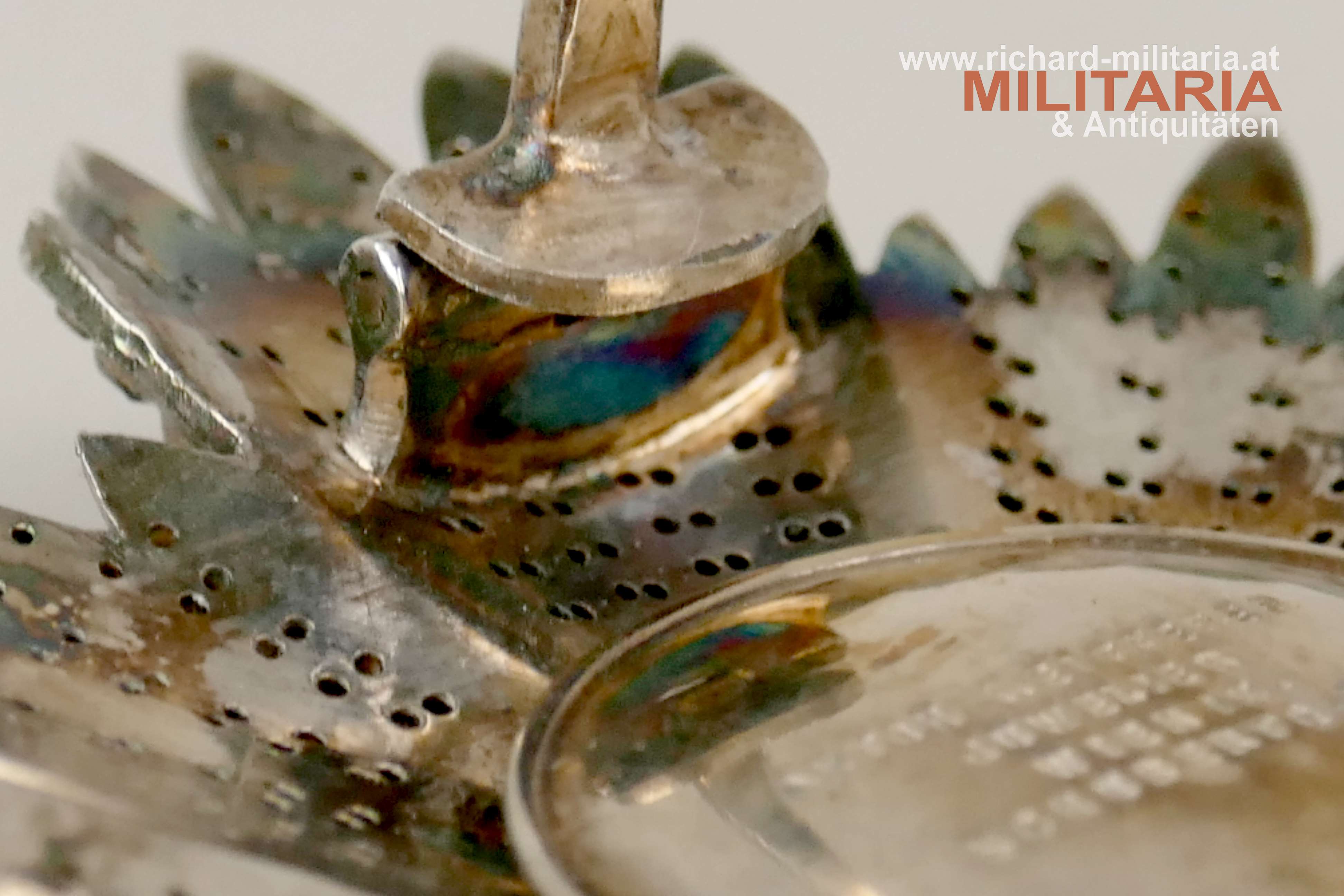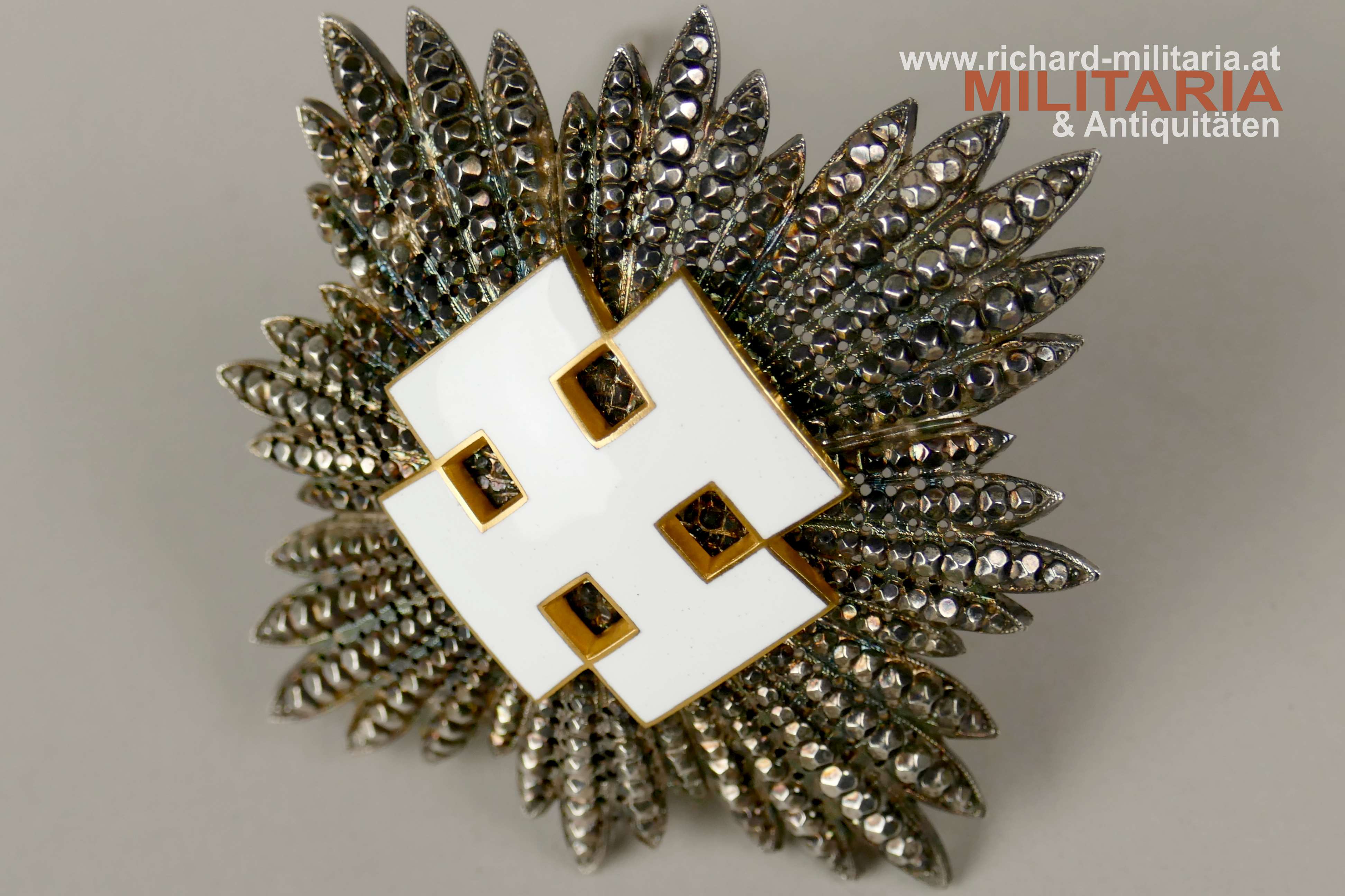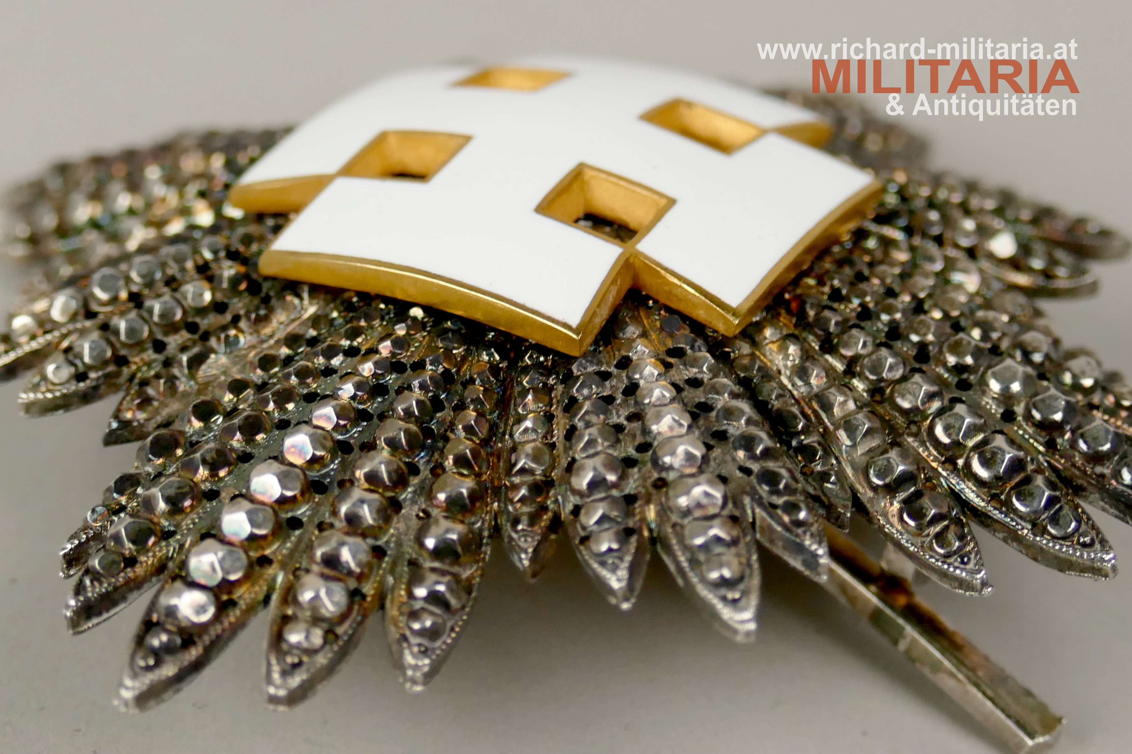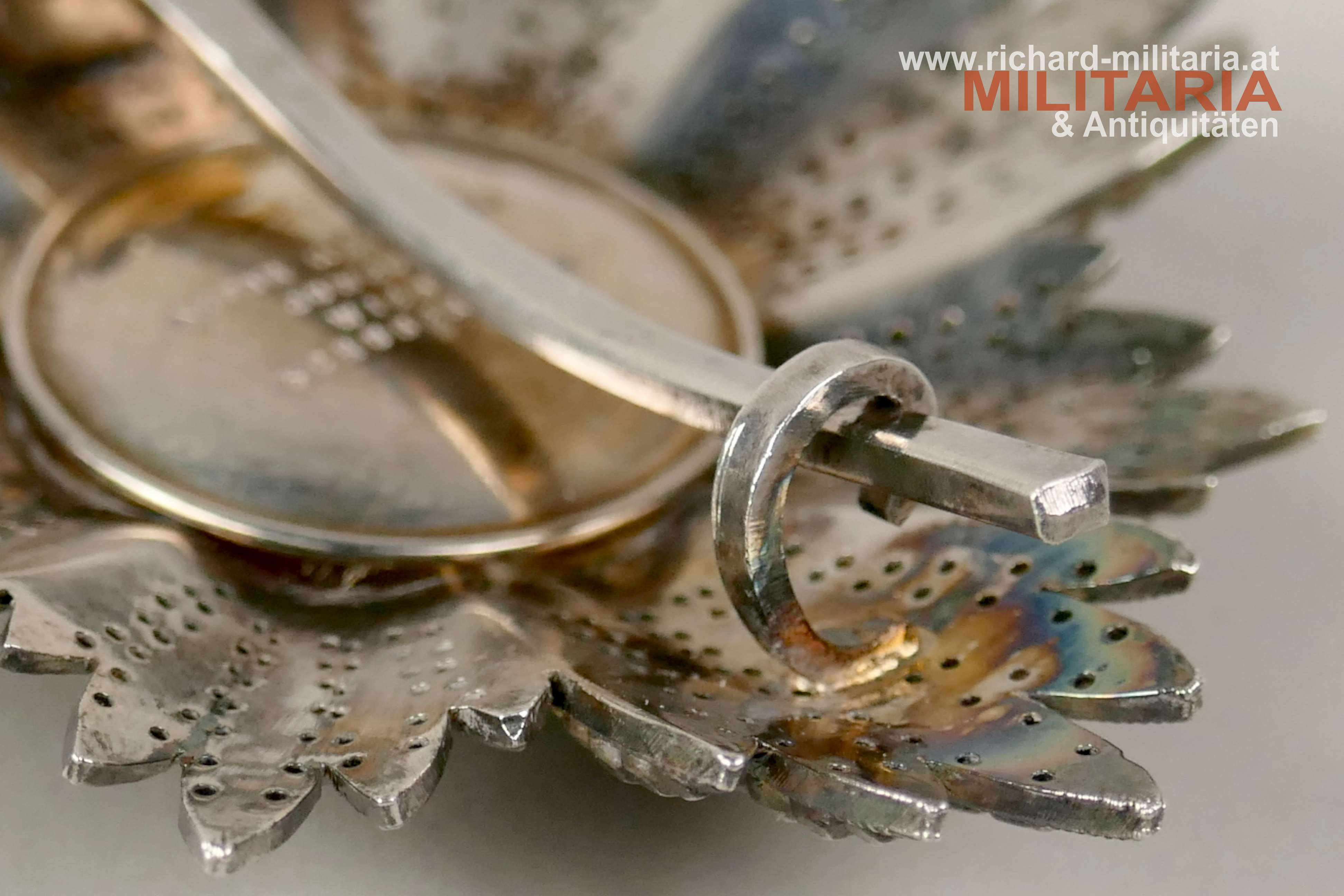 Bundesstaat - Bruststern zum großen Ehrenzeichen / Komturkreuz; Korpus aus Silber; weiße Emaillierung der Auflage einwandfrei; Medaillon revers mit dem Hersteller "Anton Reitterer"; gebogenes, originales Nadelsystem;