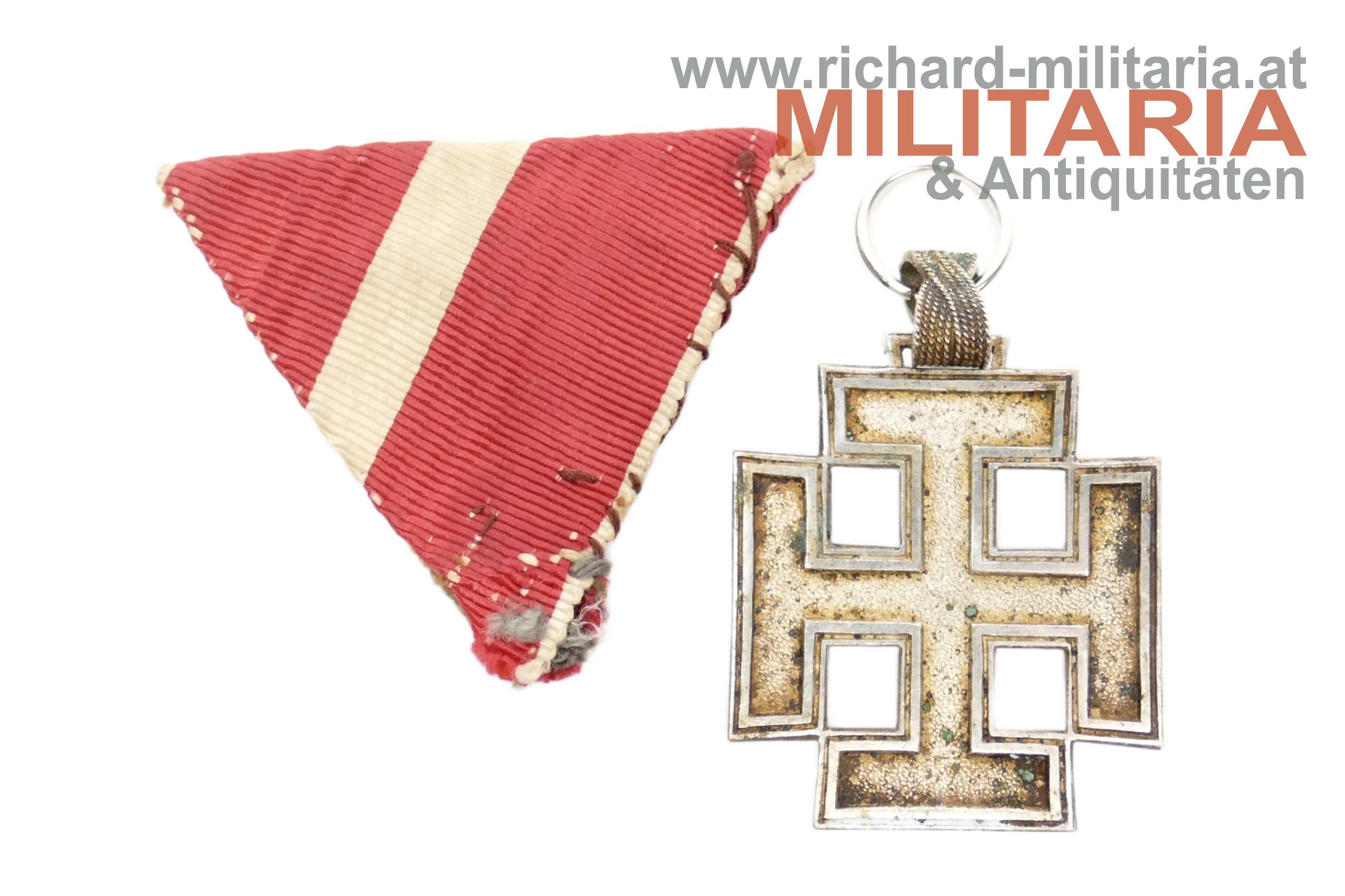 Bundesstaat - Silbernes Verdienstzeichen; Buntmetall versilbert mit stärkeren Alterungsspuren; passendes unfachmännisch umgenähtes Band beiliegend;
