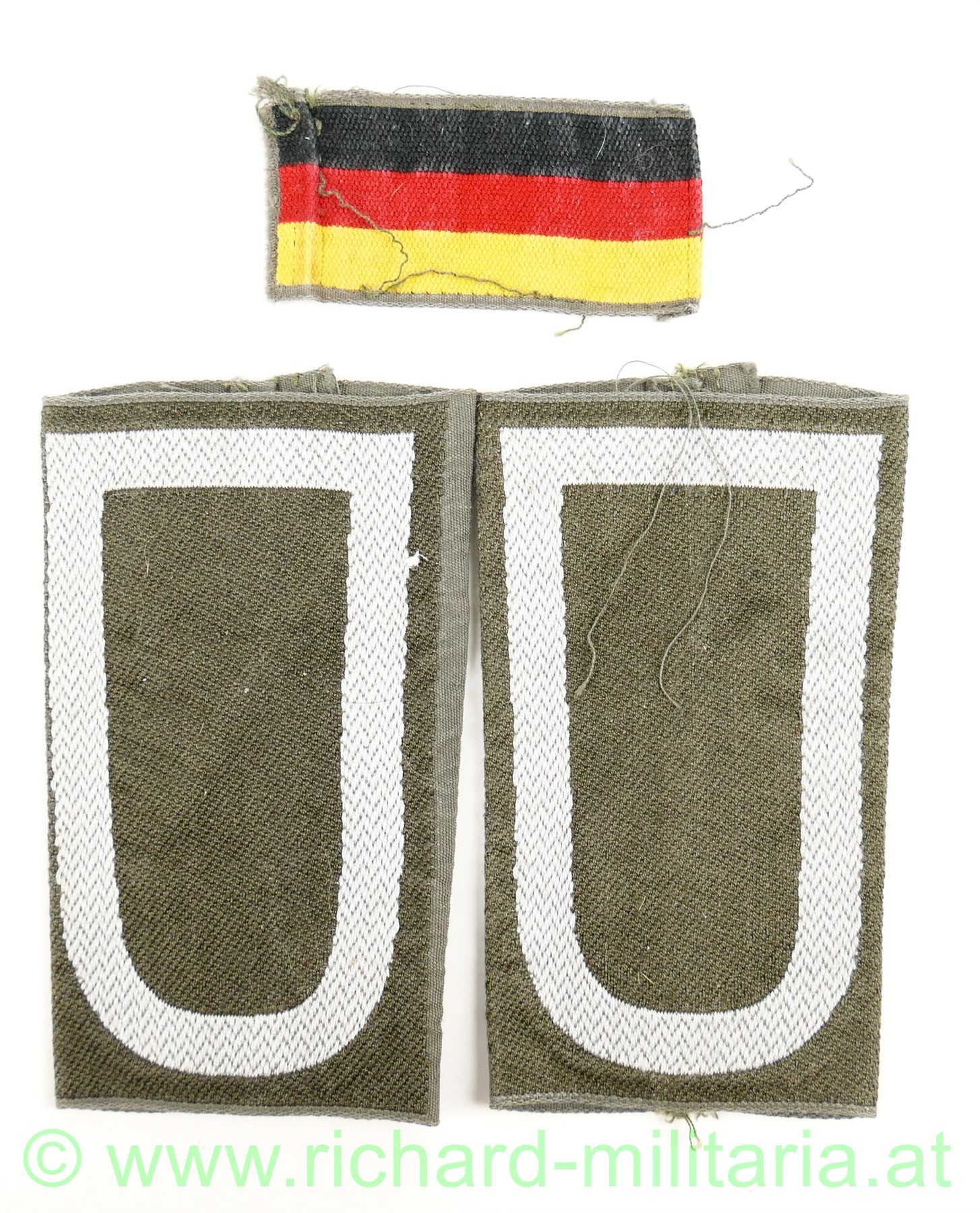 Paar zusammengehörige Schulterschlaufen für einen Stabsunteroffizier inkl. einem Aufnäher "schwarz/rot/gold", zum Aufschieben, getragen