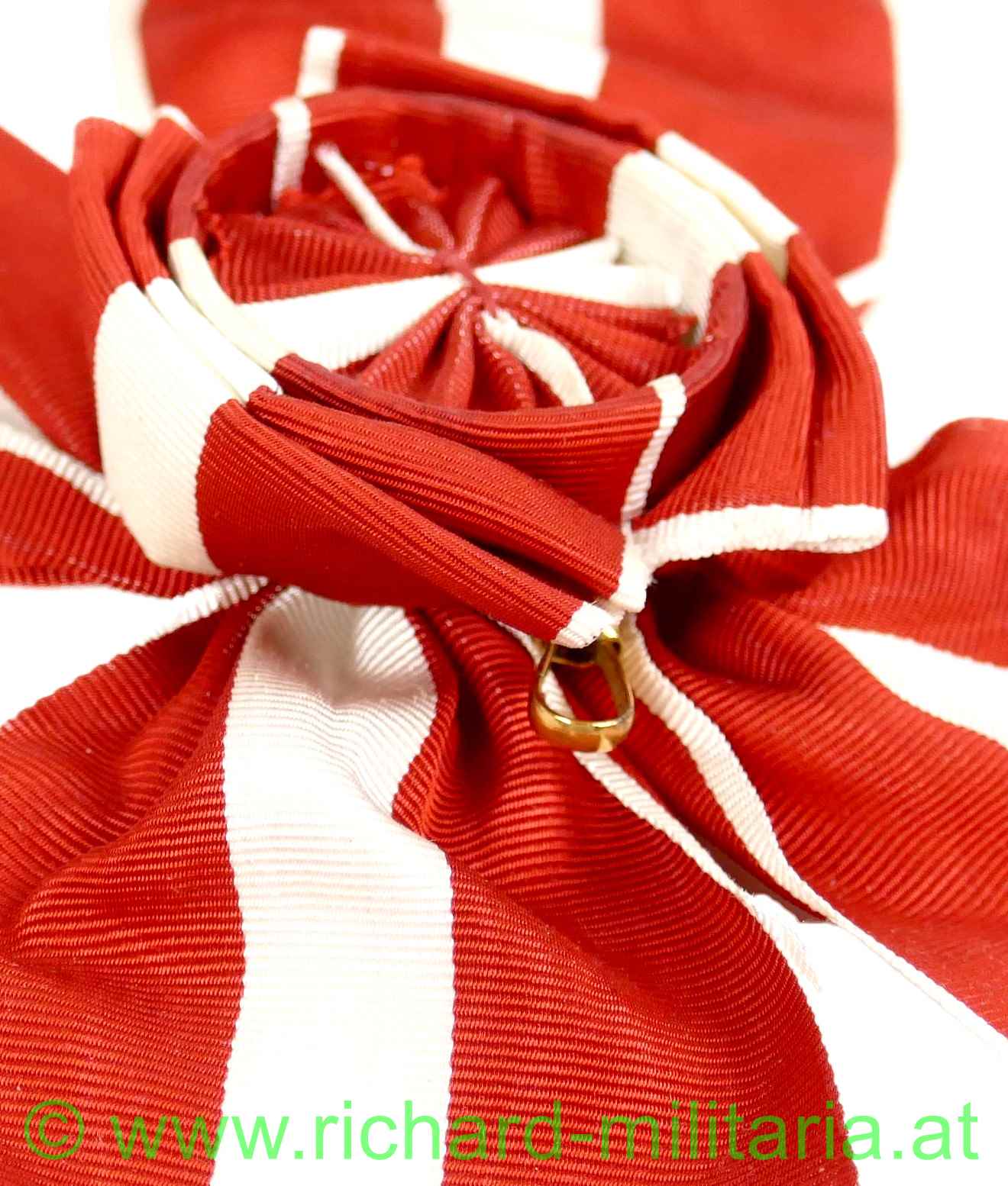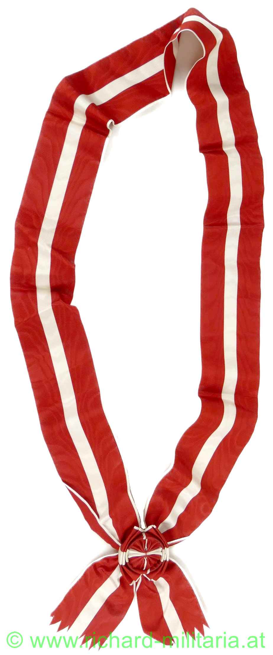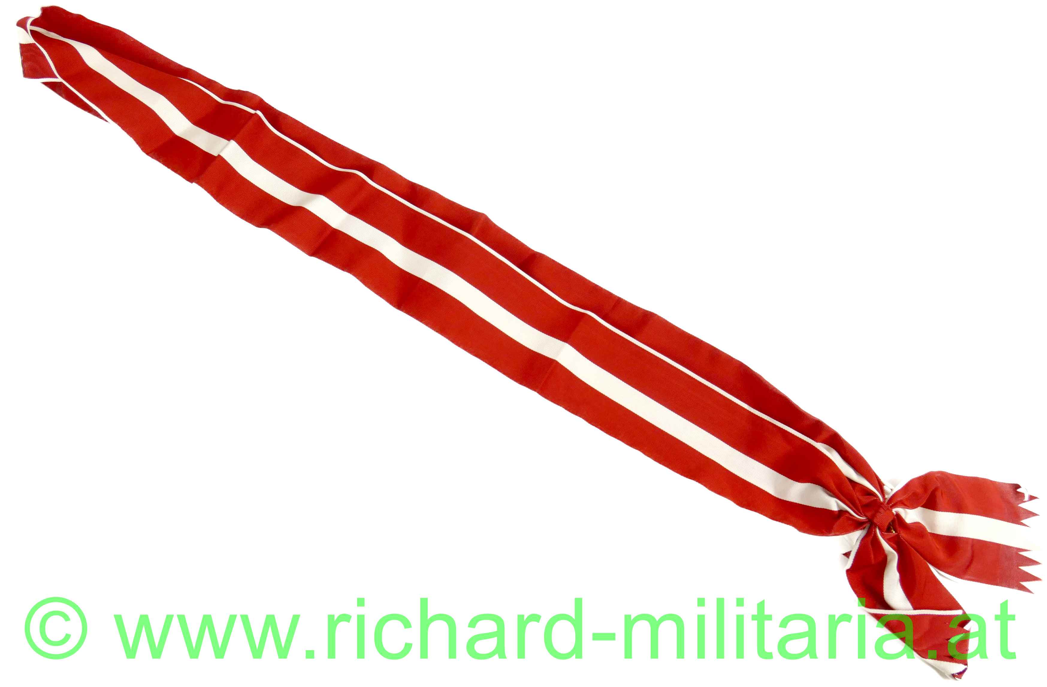 Großes Goldenes Ehrenzeichen am Band für Verdienste um die Republik Österreich - Damenschärpe ohne Auszeichnungen, rot-weiß-rotes Seidenrippband mit großer Rosette und goldenem Karabinerhaken, Breite ca.: 75 mm