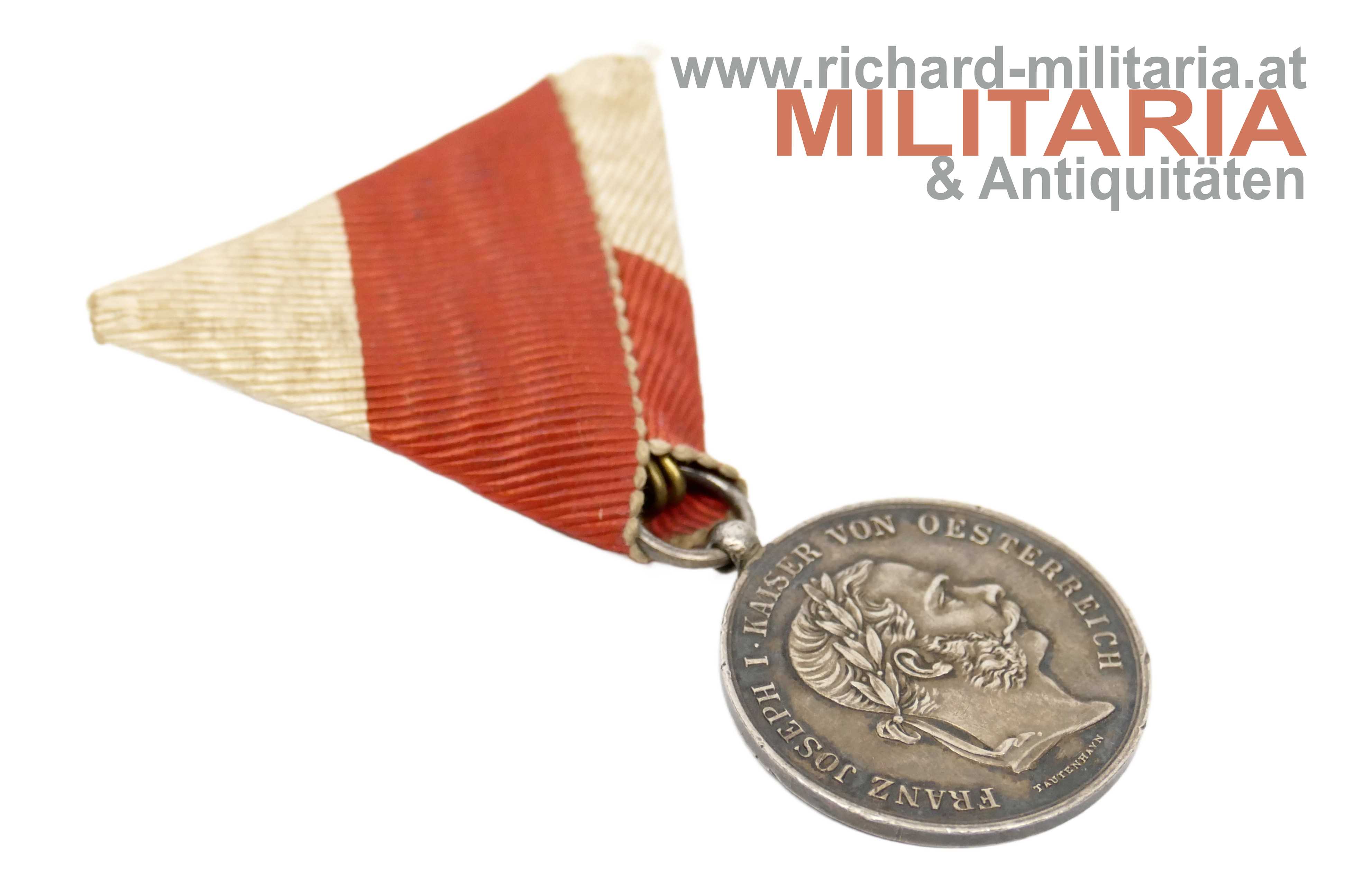 Denkmünze Tiroler Landesverteidigung 1866; Silber; originales jedoch später ergänztes Band; die "frühen" Bänder waren in einem helleren rot ausgeführt;