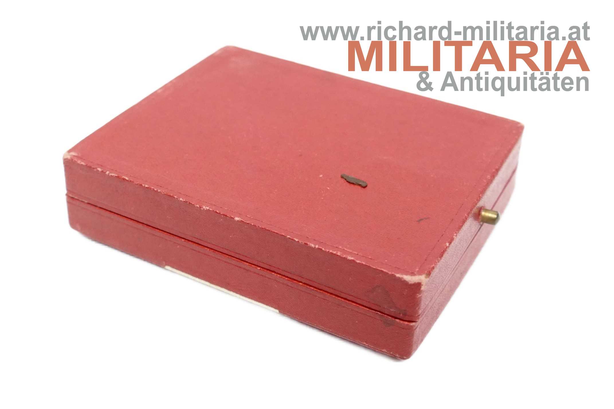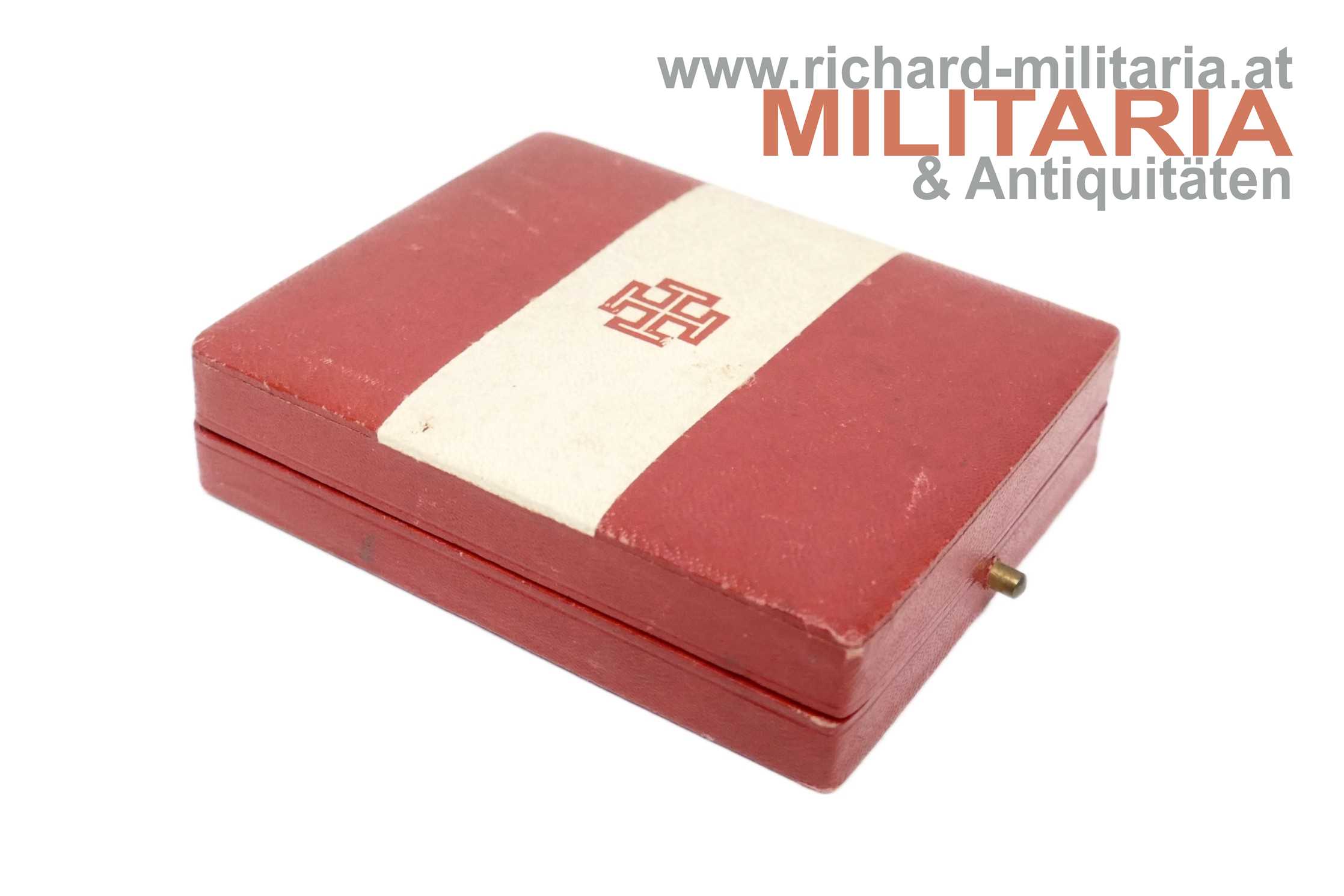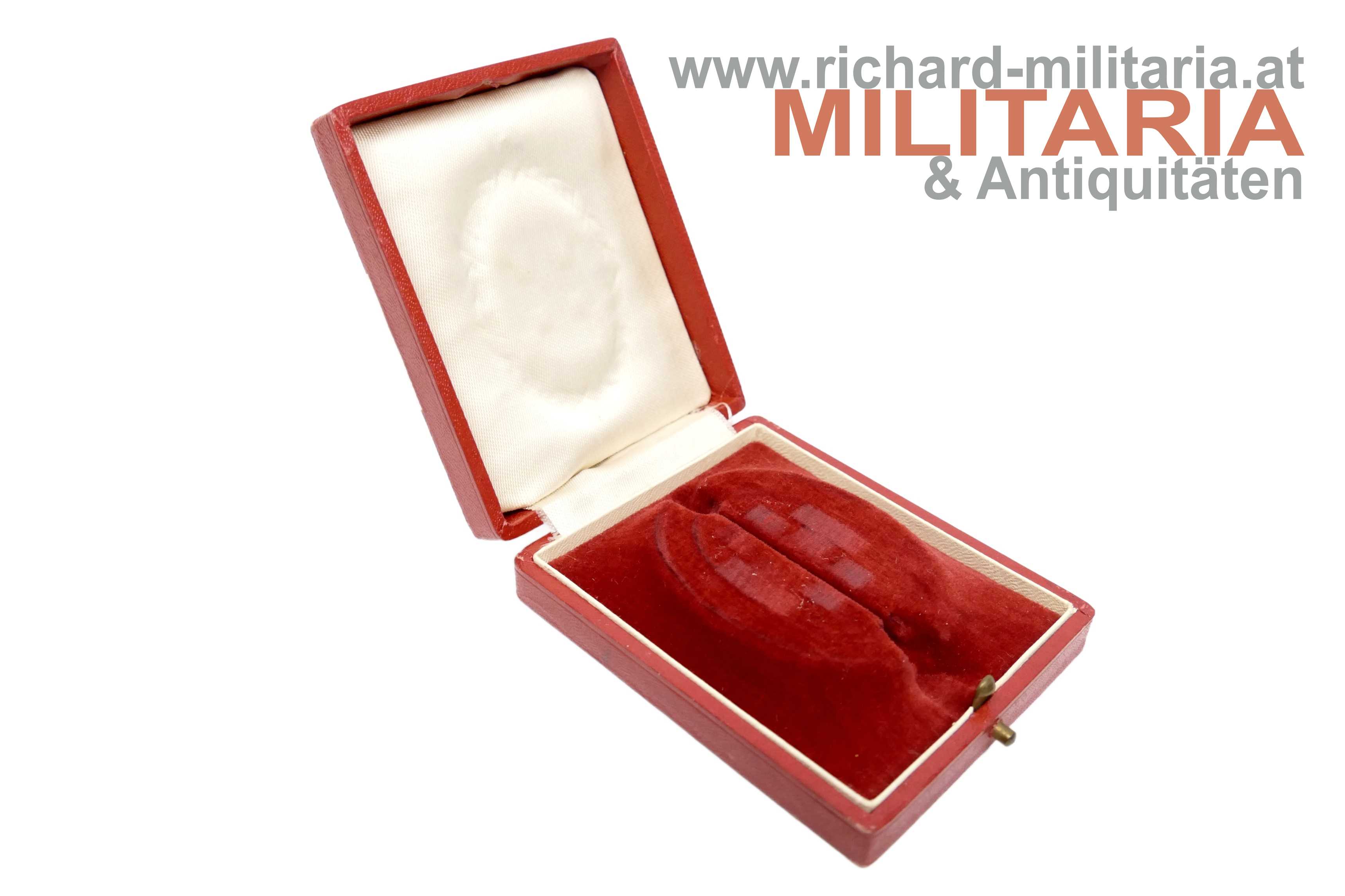 1. Republik/Bundesstaat - Bronzenes Ehrenzeichen der Vaterländischen Front 2. Klasse im Etui; Bronze und teilweise emailliert; Rückseite mit dünner Nadel; im originalen rot/weißem Etui mit Aufdruck des Krukenkreuzes;
