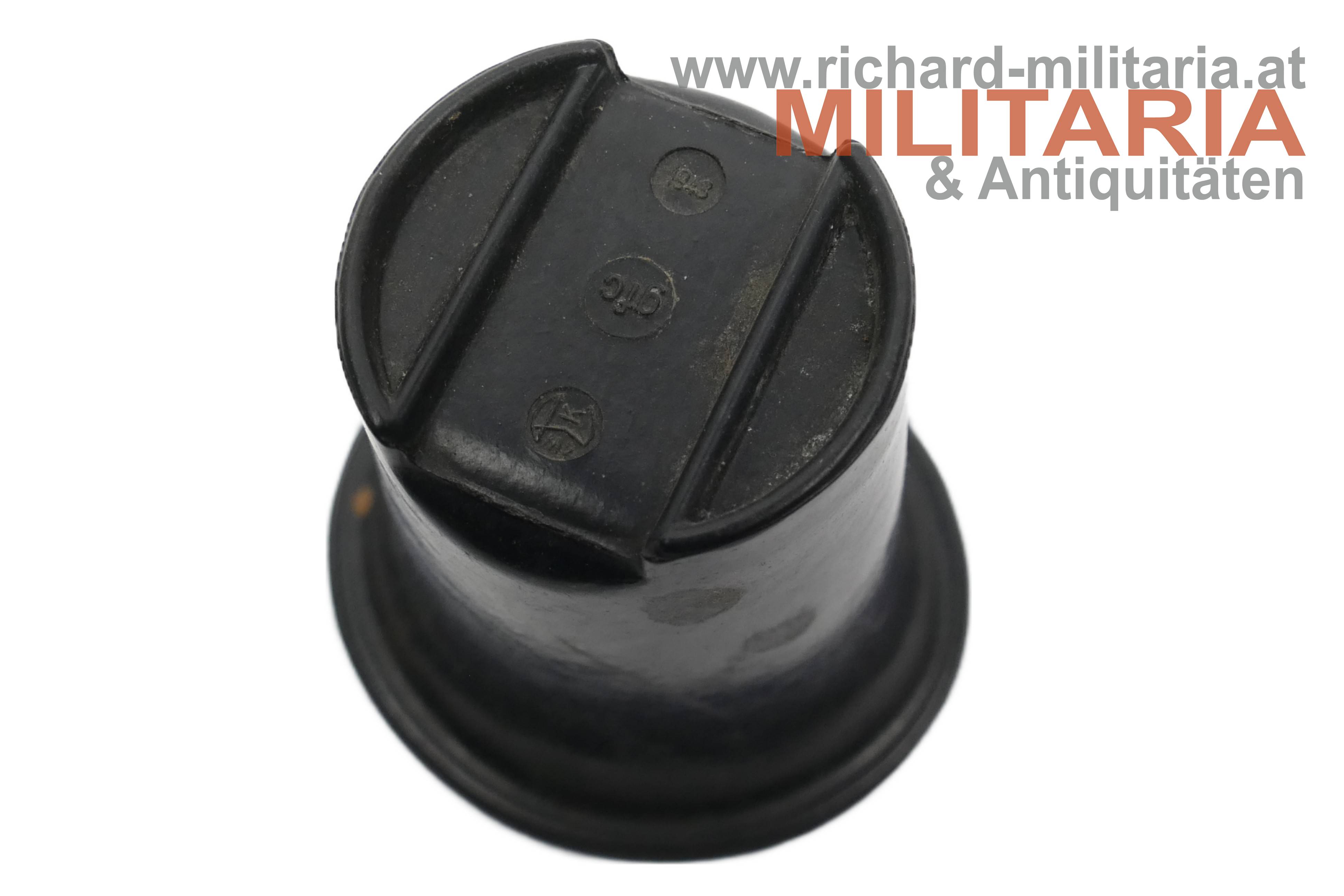 Wehrmacht/Luftwaffe - Trinkbecher zur Feldflasche; schwarzer Kunststoff; mit Herstellerkennung; guter benutzter Zustand ohne Beschädigungen