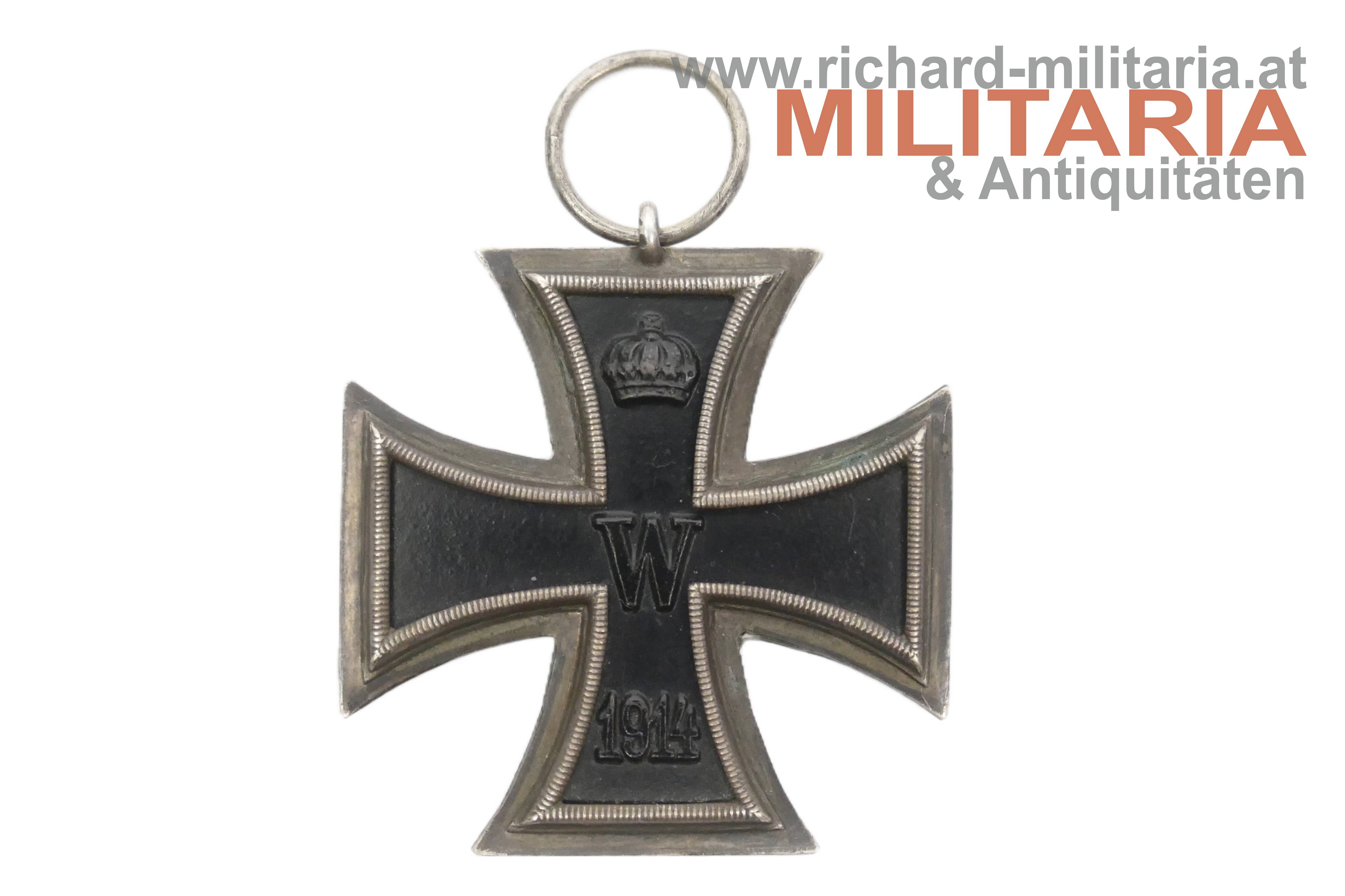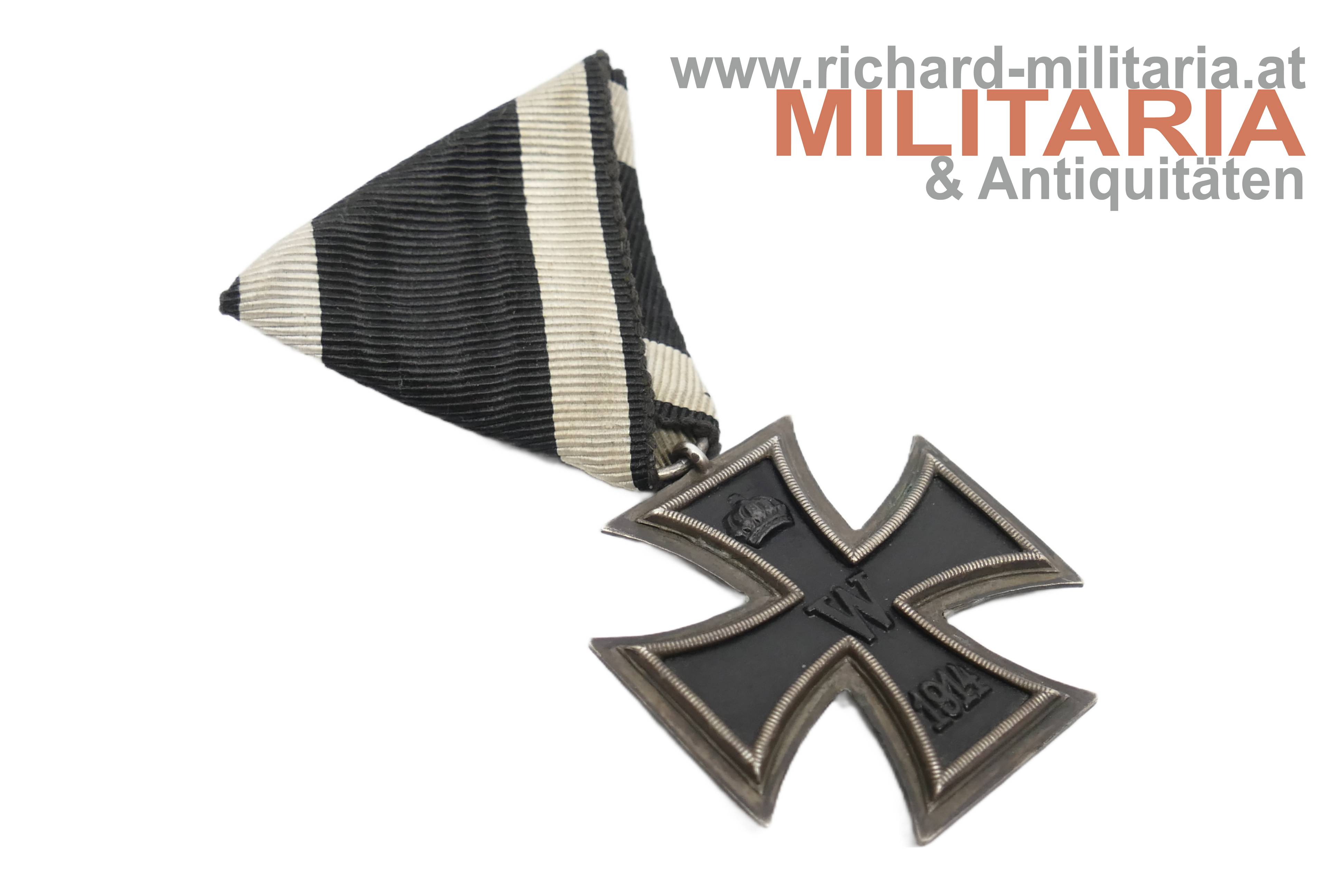 Eisernes Kreuz 2. Klasse 1914 - österreichische Trageweise; feine Prägung des Kernes - dieser ist magnetisch; undeutlicher Hersteller im Ring; am originalen Band in österreichischer Trageweise.