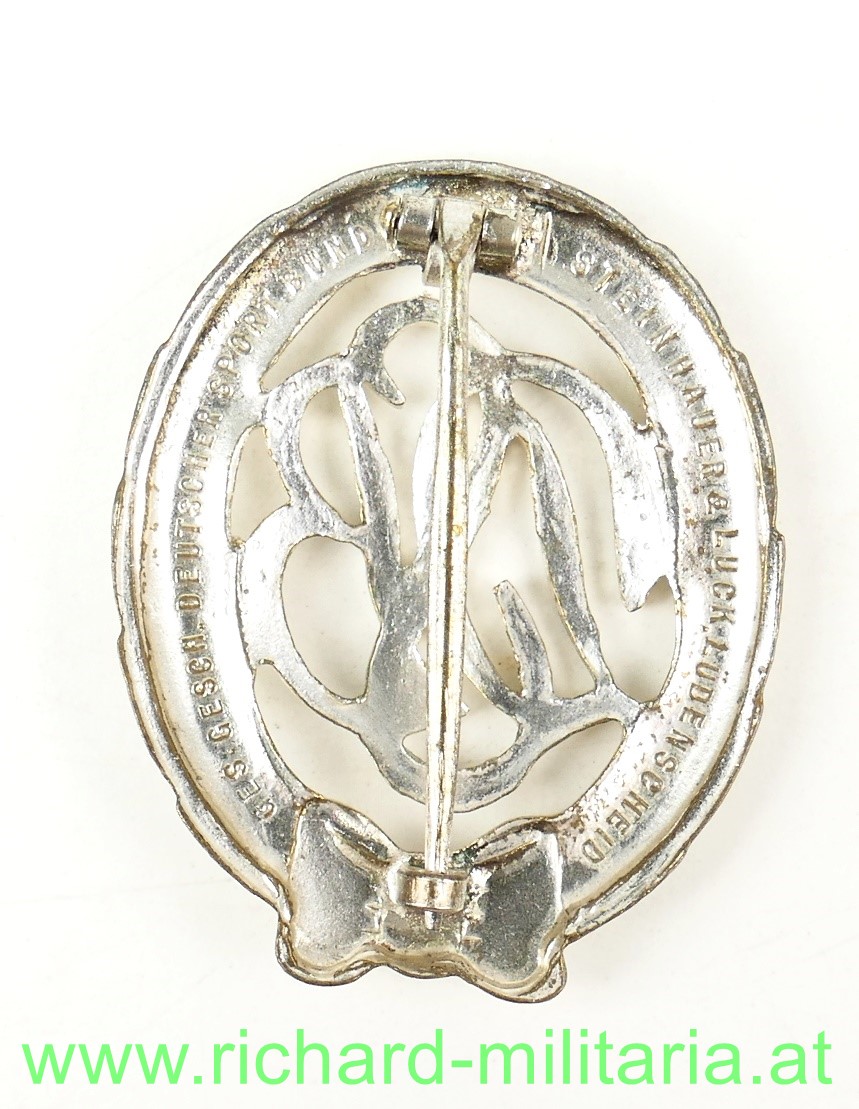 Deutscher Sportbund - DSB-Abzeichen + Stoffausführung - Silberstufe, Hersteller: "Steinhauer u. Lück, Ges. Gesch. Deutscher Sportbund";
