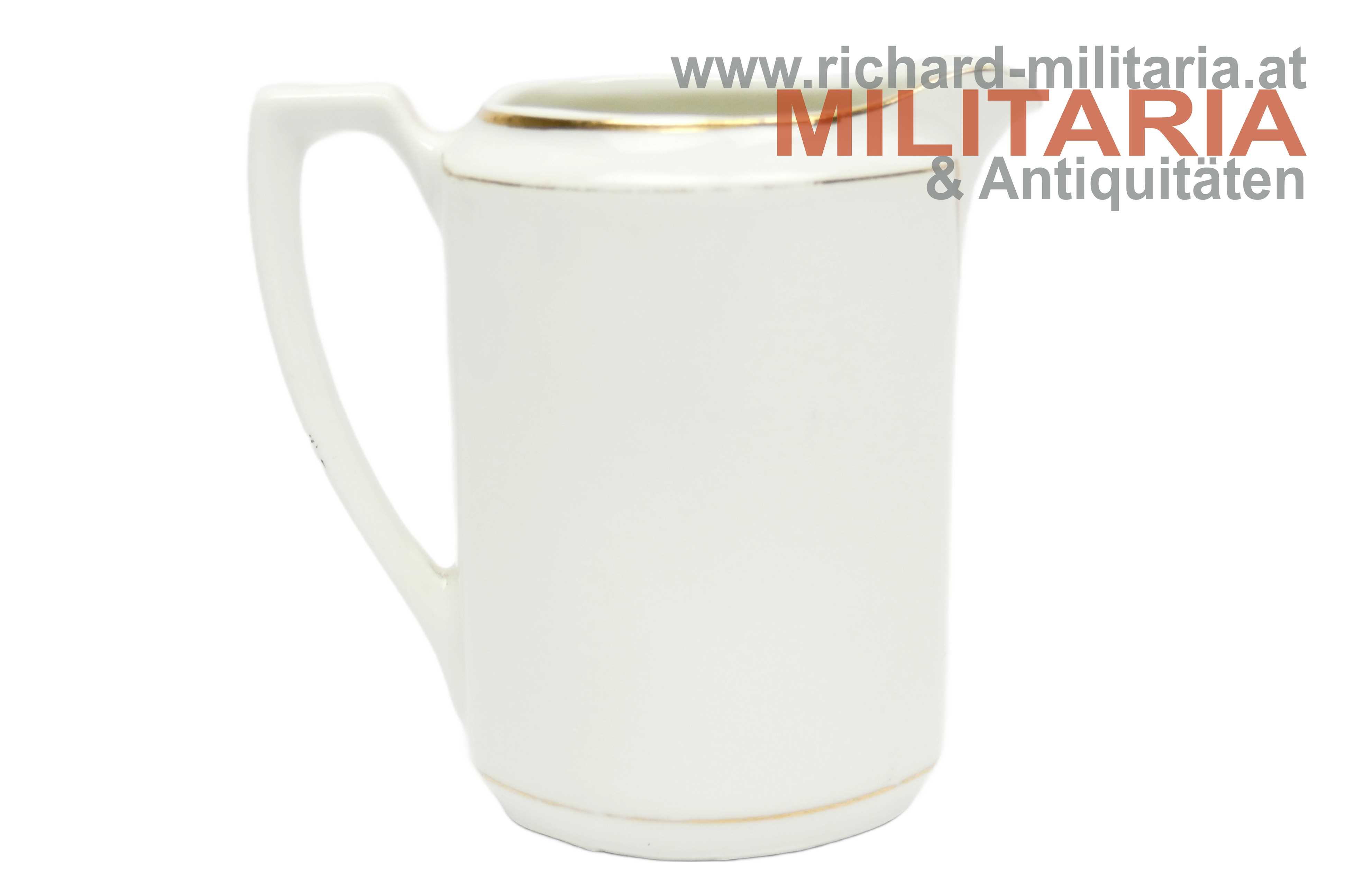 Deutsches Kaiserreich - Porzellankännchen - "Durch Kampf zum Sieg"; Porzellan mit goldener Randverzierung; mittig der Text "Durch Kampf zum Sieg" mit floralen Verzierungen sowie der deutschen Flagge; am Boden minimale Absplitterungen; ansonsten einwandfreie Erhaltung;