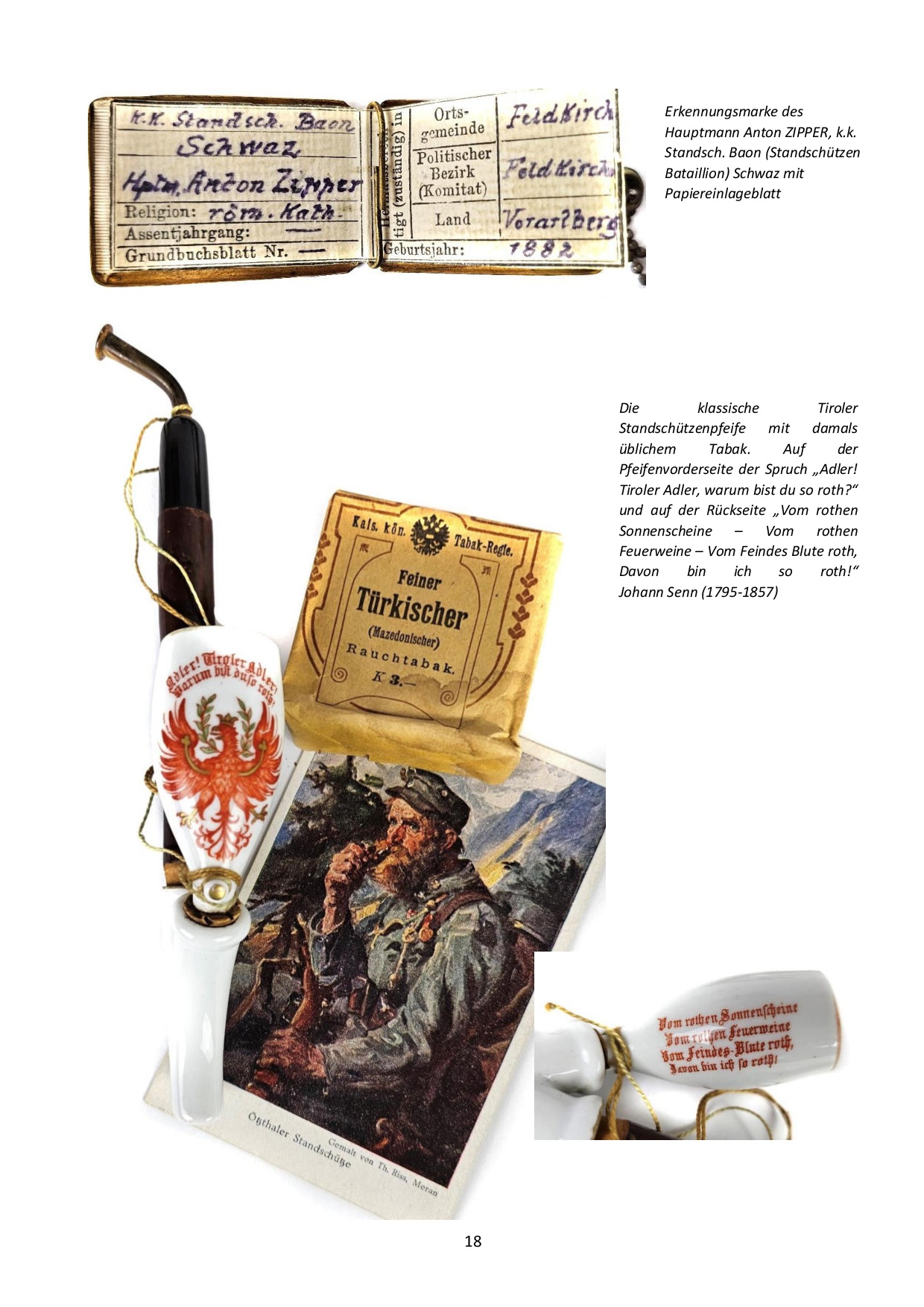 Vollfarbiges gebundenes Heft im Format A4; 88 Seiten zum Thema „Die Tiroler Standschützen“; hunderte Abbildungen von Objekten aus der Sammlung Markus Arnold zum Thema.