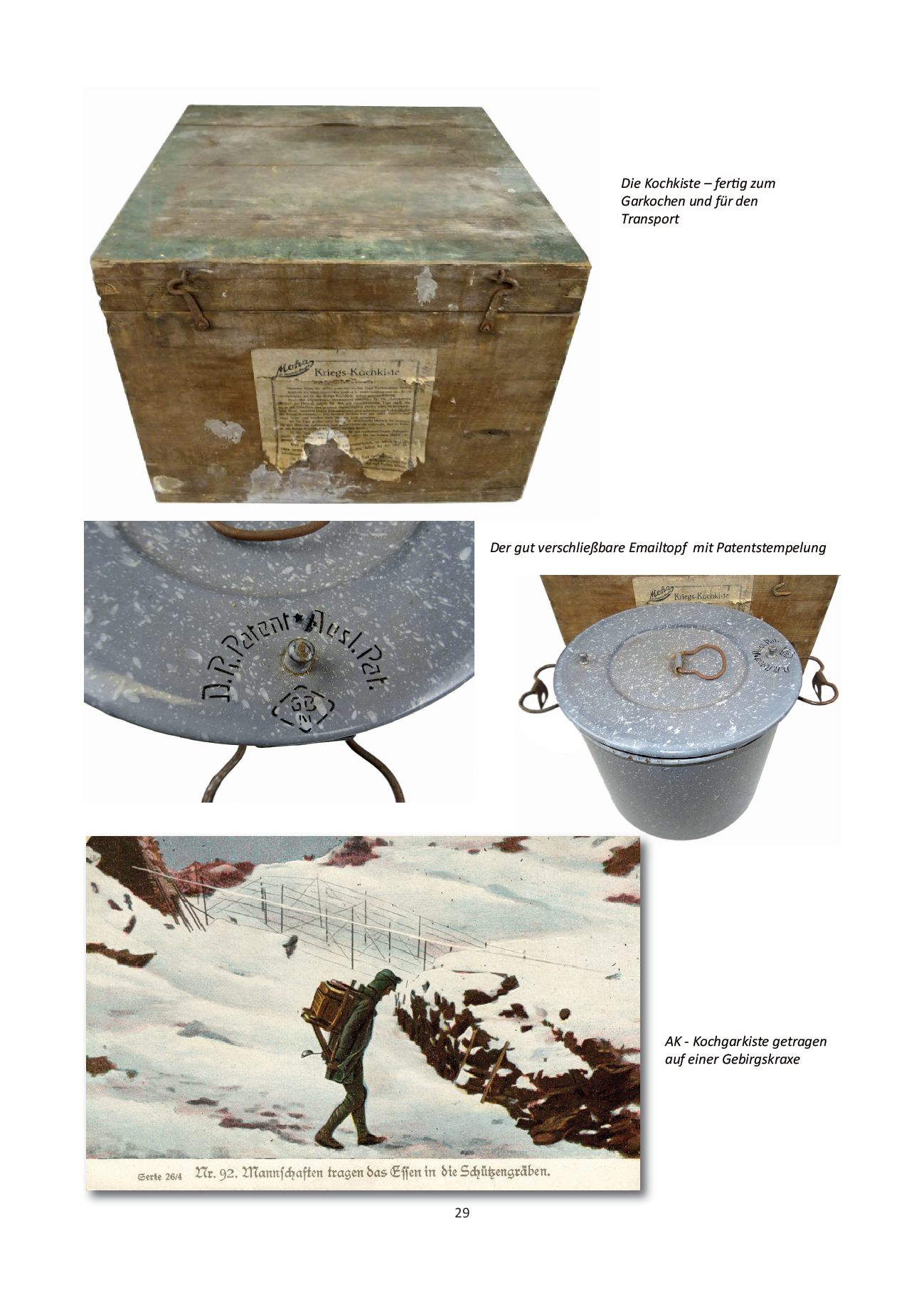 - Kochgeschirr, Transportkochkisten und Tragtierkorb
