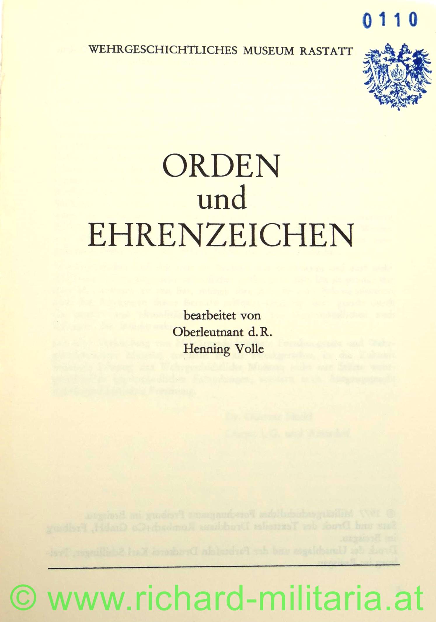 Die Sammlungen des Wehrgeschichtlichen Museums im Schloss Rastatt - Buch, 1 Orden und Ehrenzeichen, broschierte Ausgabe, vollständig, mit Inventarnummer;