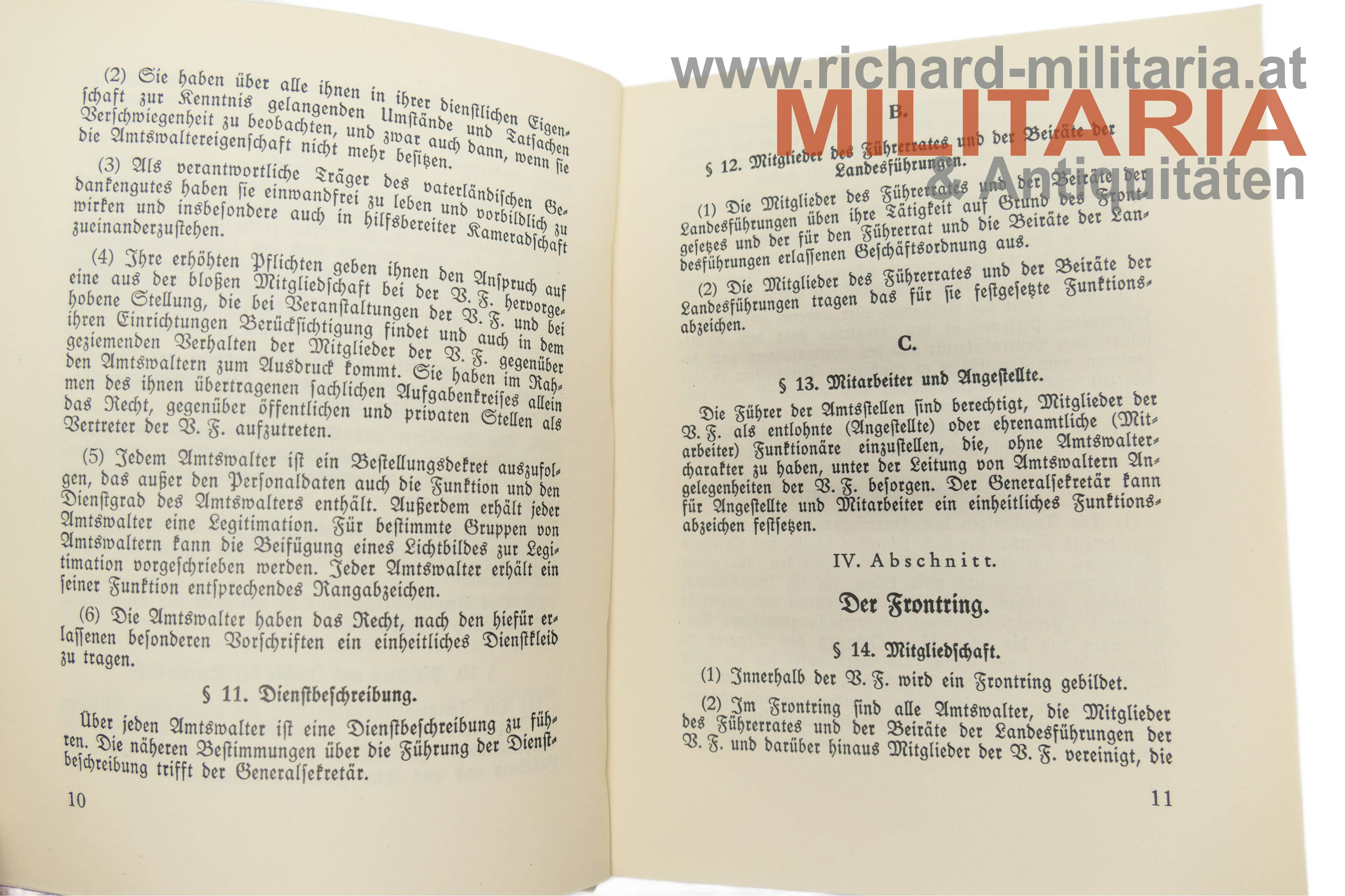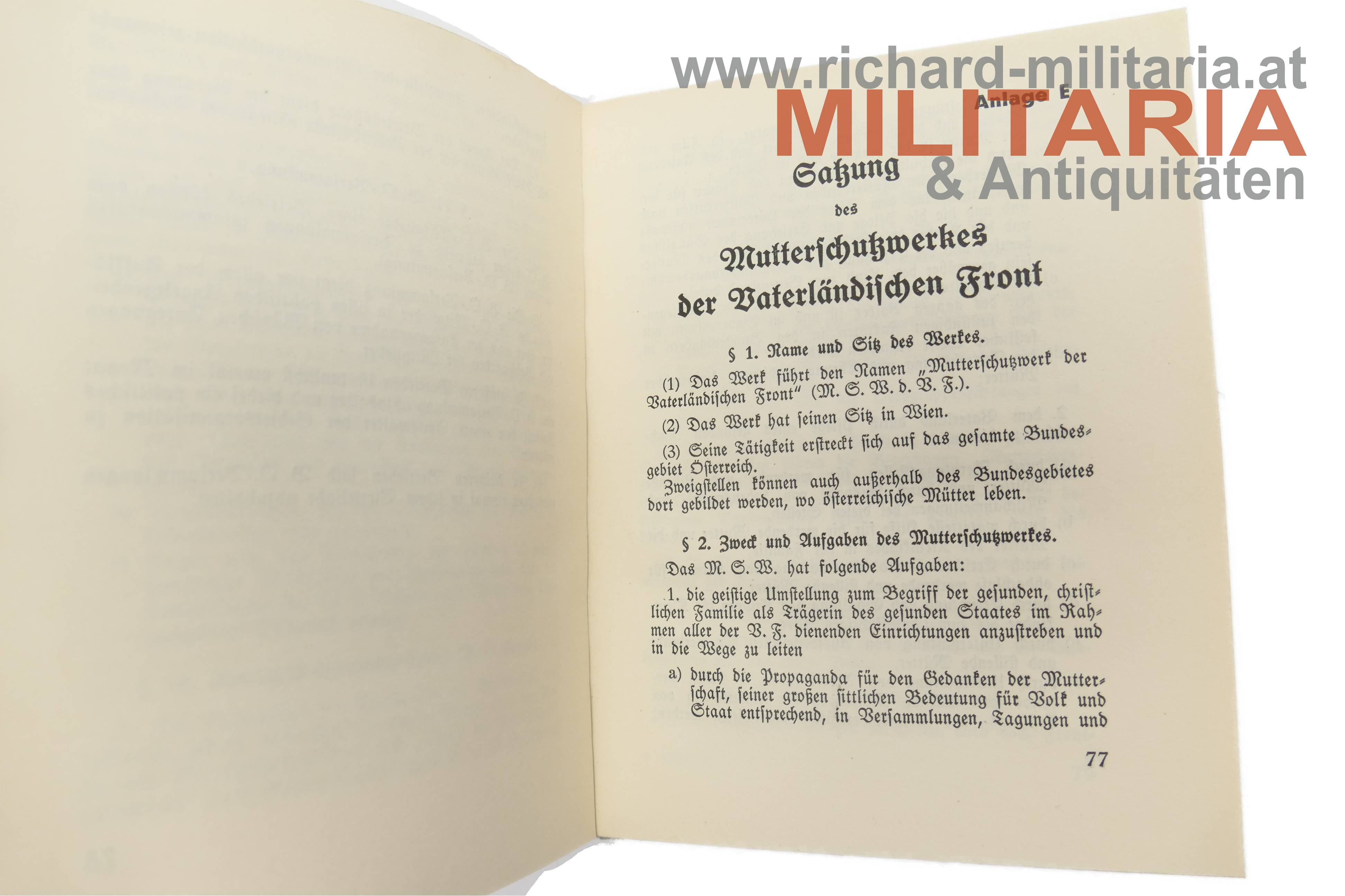 Dienstbuch der Vaterländischen Front; vollständig 150 Seiten; Einband oben links etwas bestoßen; ansonsten sehr gute Erhaltung;
