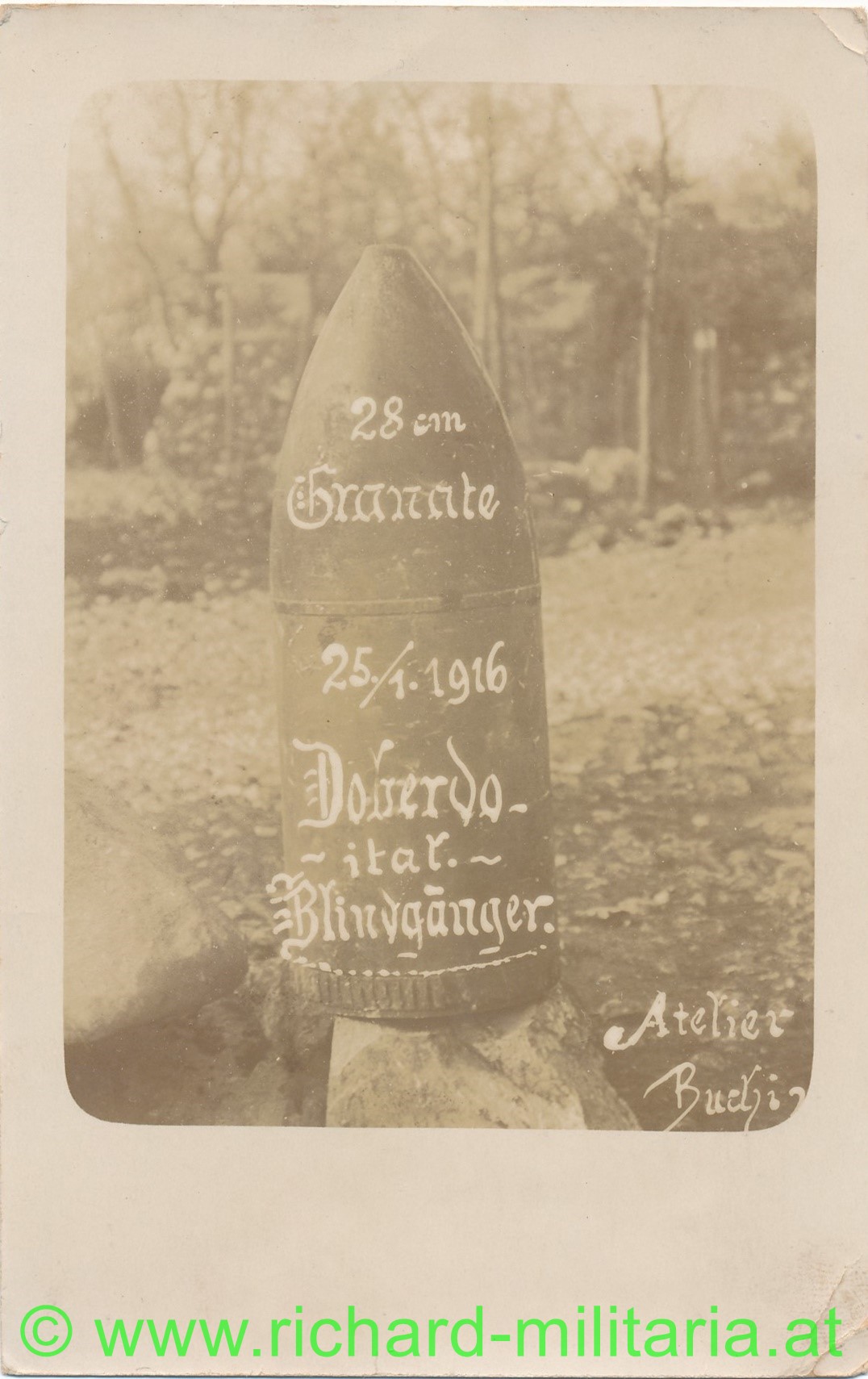 Foto - 28 cm Granate, 25.1.1916 , italienischer Blindgänger;