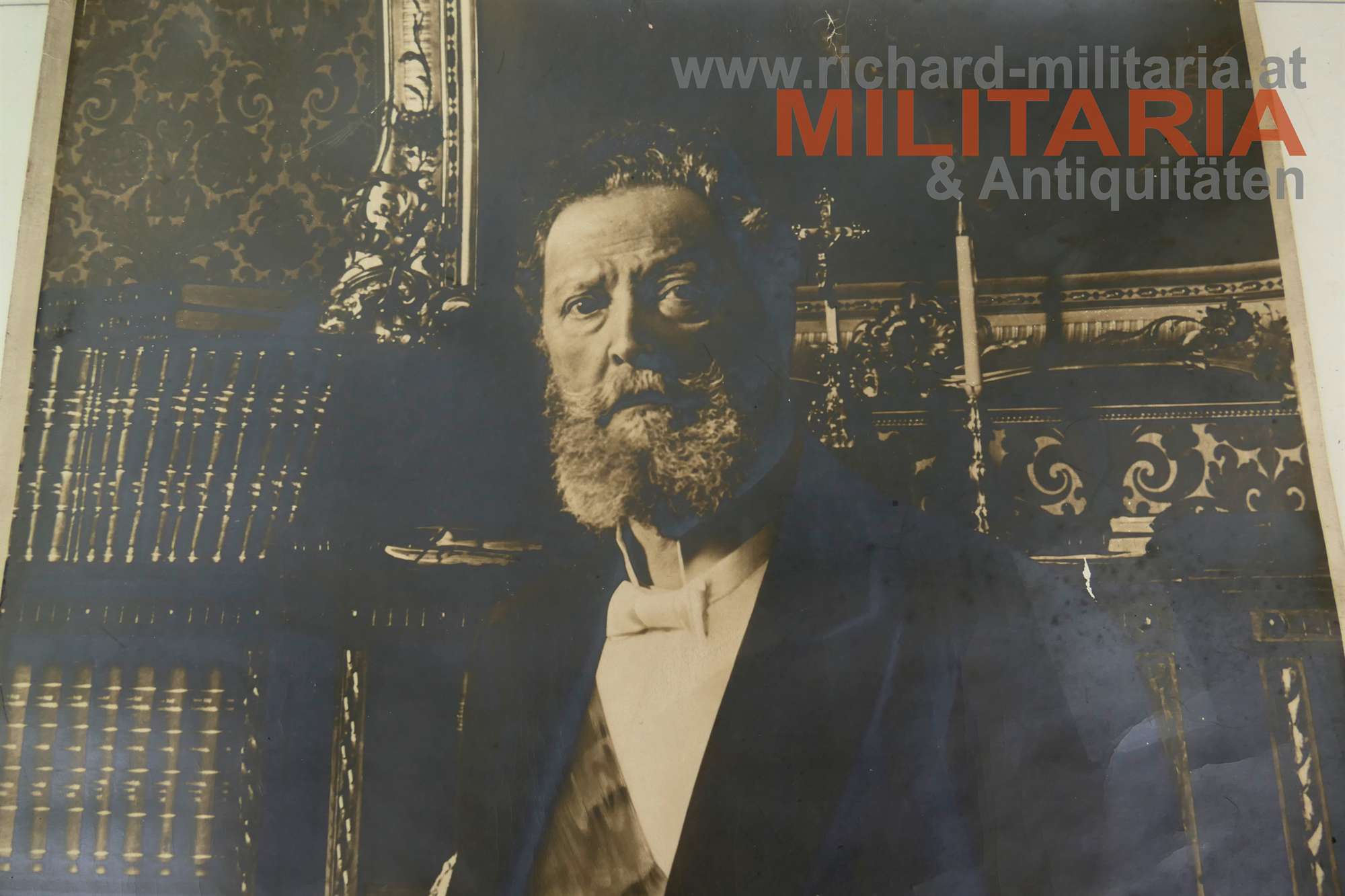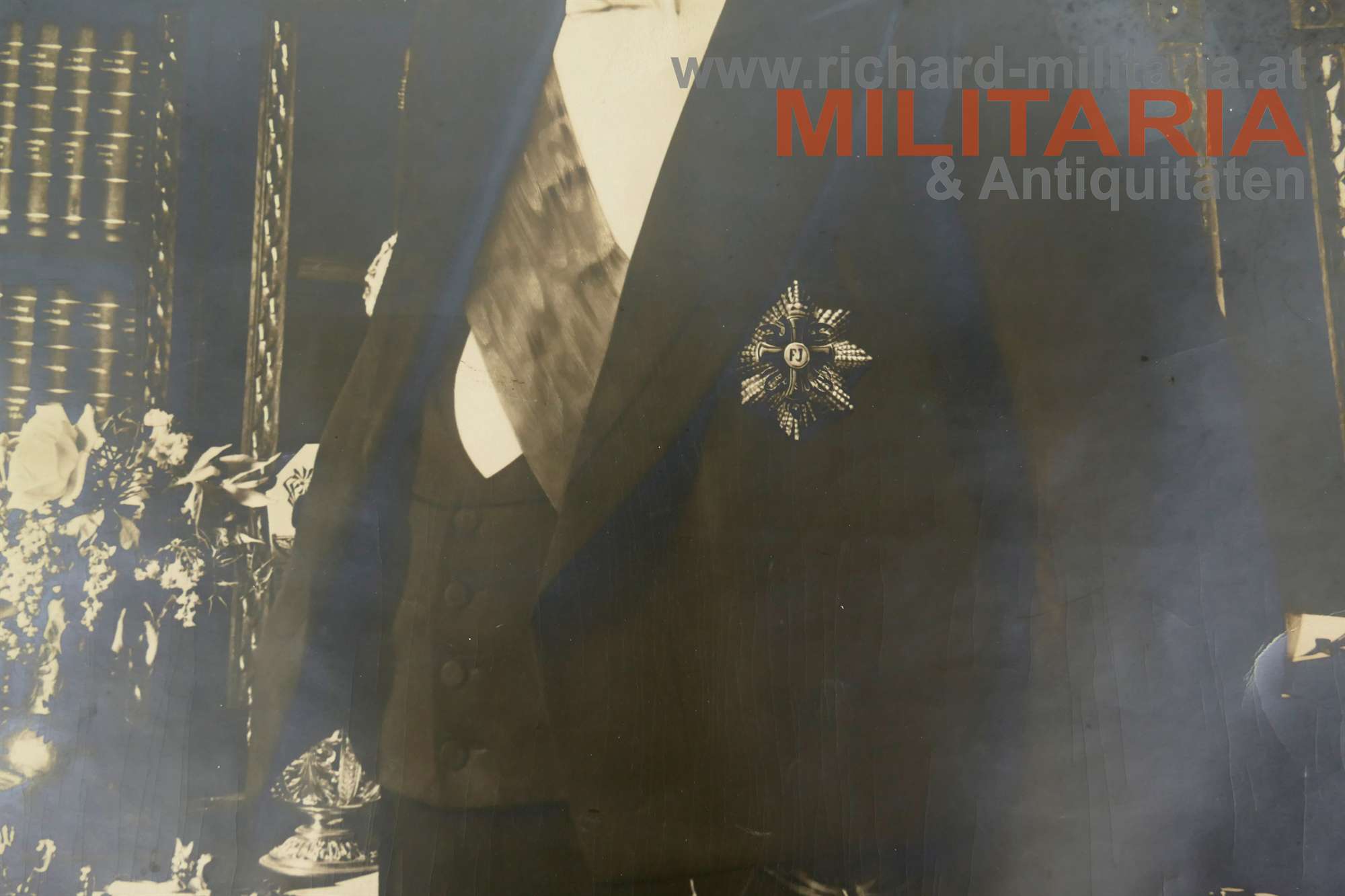 großformatiges originales Foto (!) von Dr. Karl Lueger; er trägt das Großkreuz des kaiserlichen Franz Joseph-Ordens; rechts unten "ges.gesch. 1907";