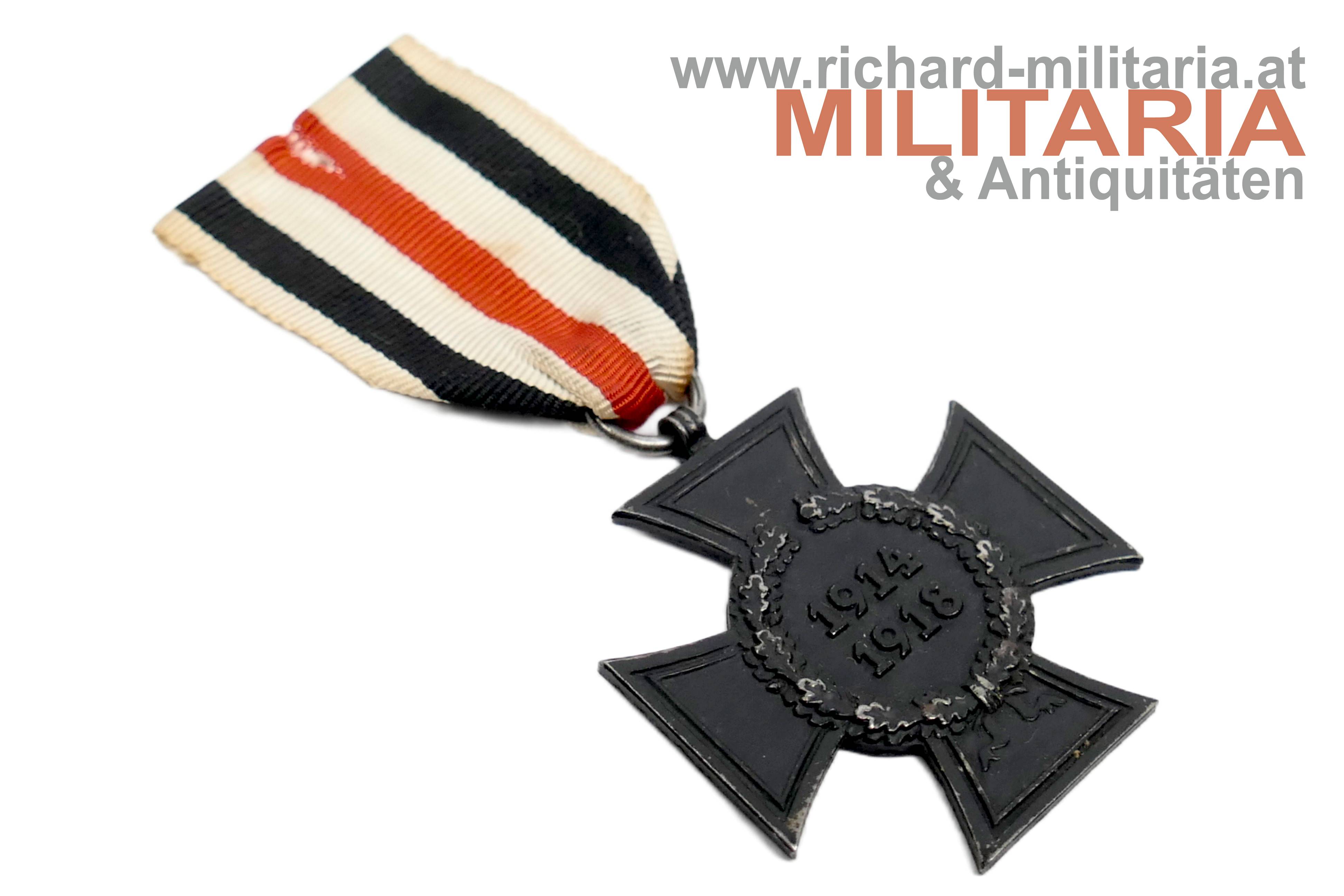 Ehrenkreuz für Hinterbliebene 1914-1918; geschwärzt; revers mit Herstellermarkierung "FHB"; am passenden Band;