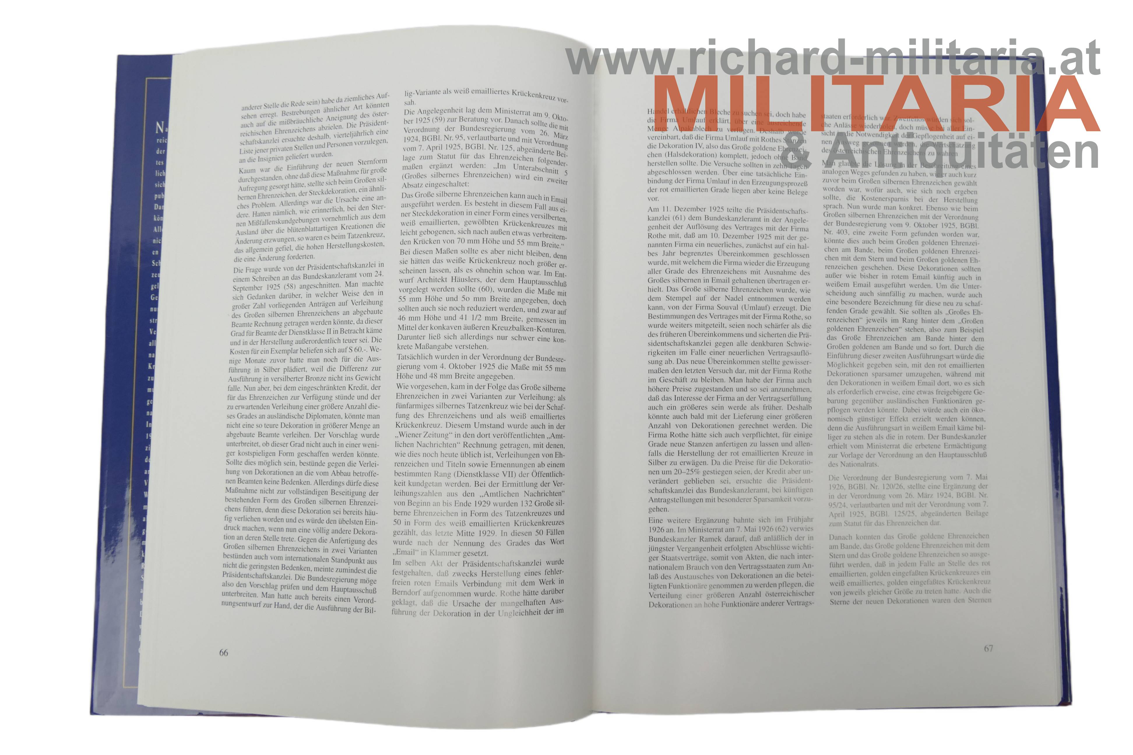 Ehrenzeichen und Orden im Österreich der Zwischenkriegszeit 1918-1938; Günter Erik Schmidt; Leykam Buchverlagsgesellschaft; Graz 1994; vollständig 189 Seiten;
