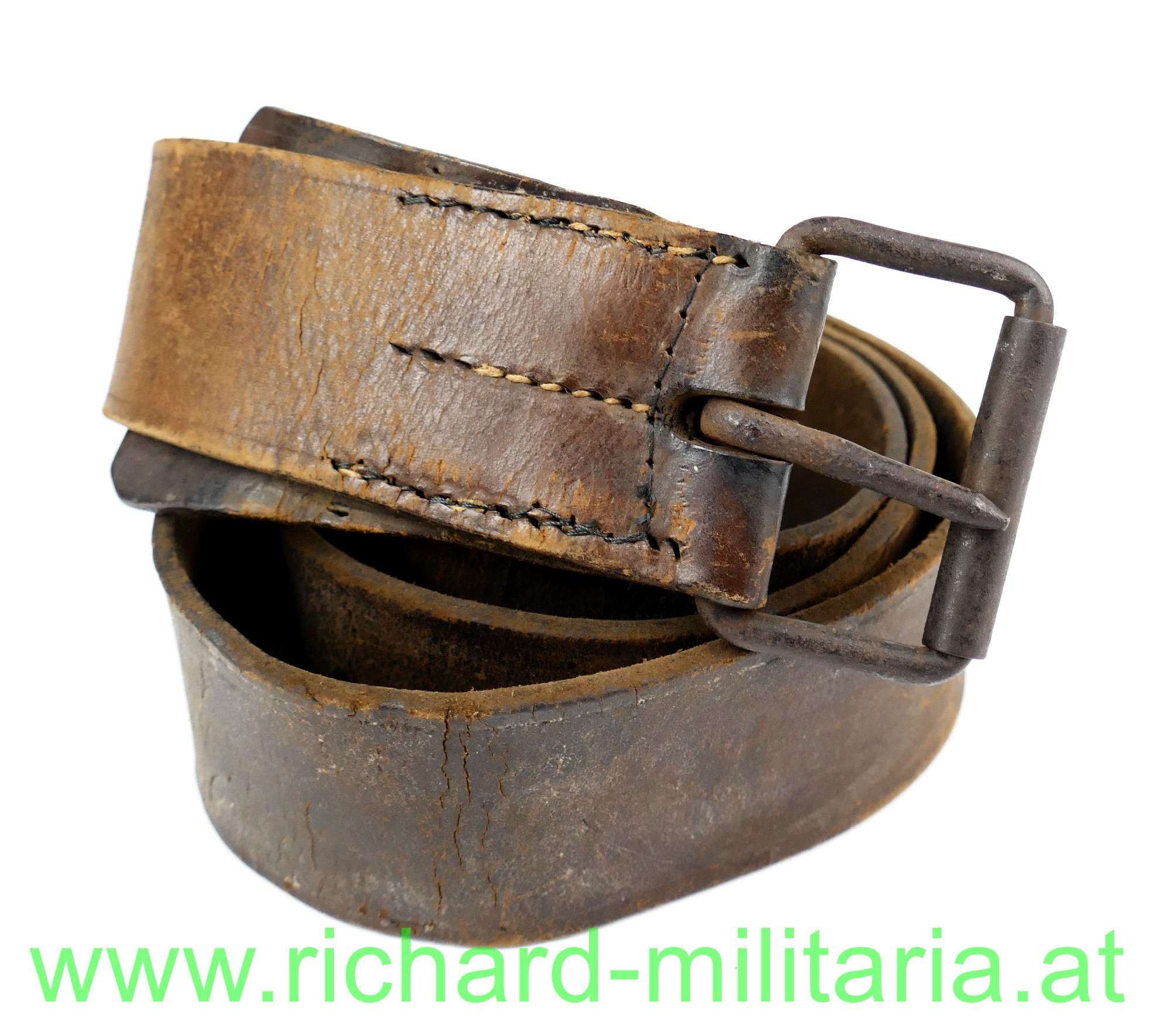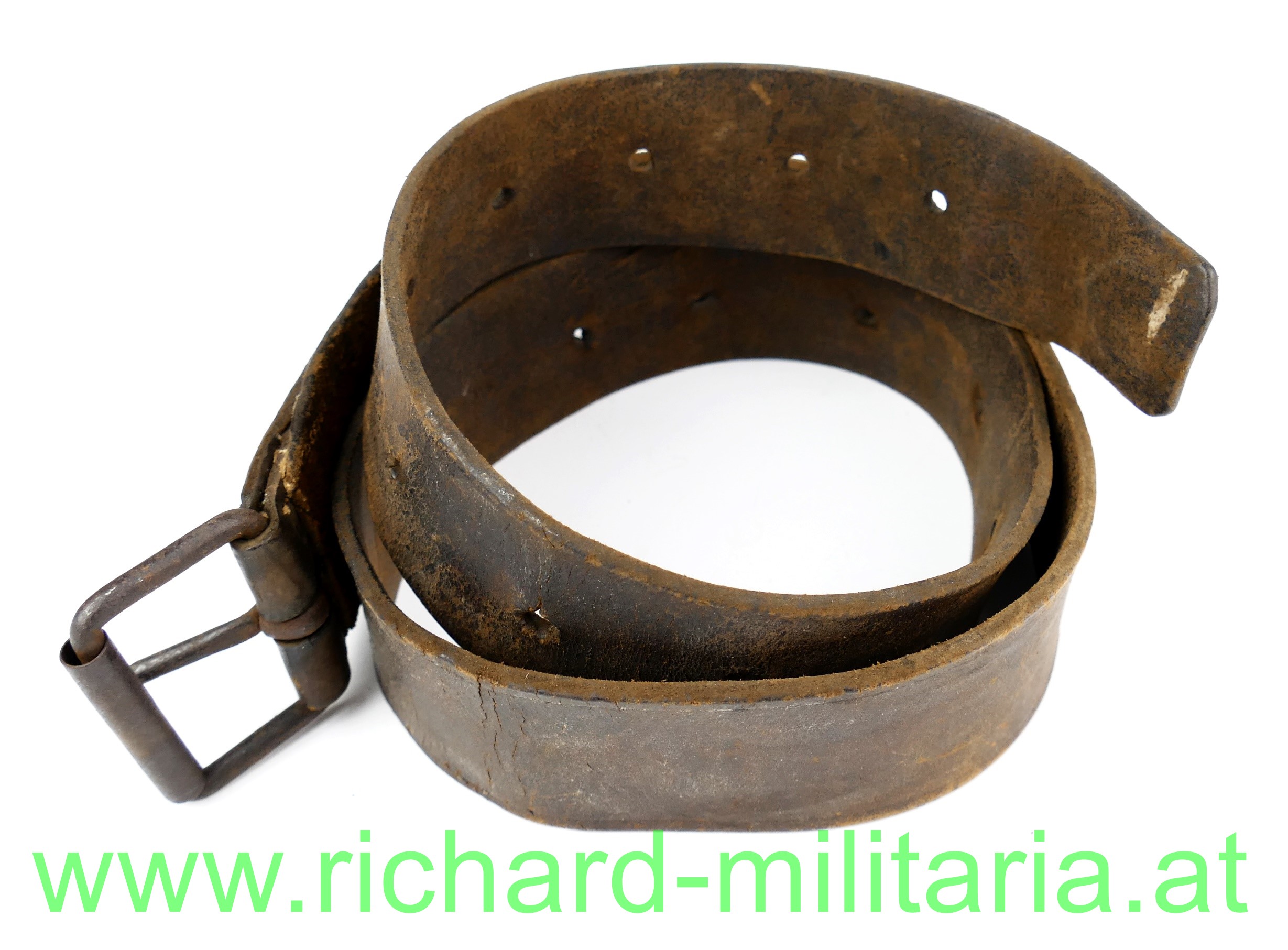 Eindorn - Leibriemen, braunes Leder, "Schnallenschutz" verkehrt angenäht, Riemen teilweise mit Zusatzlöchern versehen;